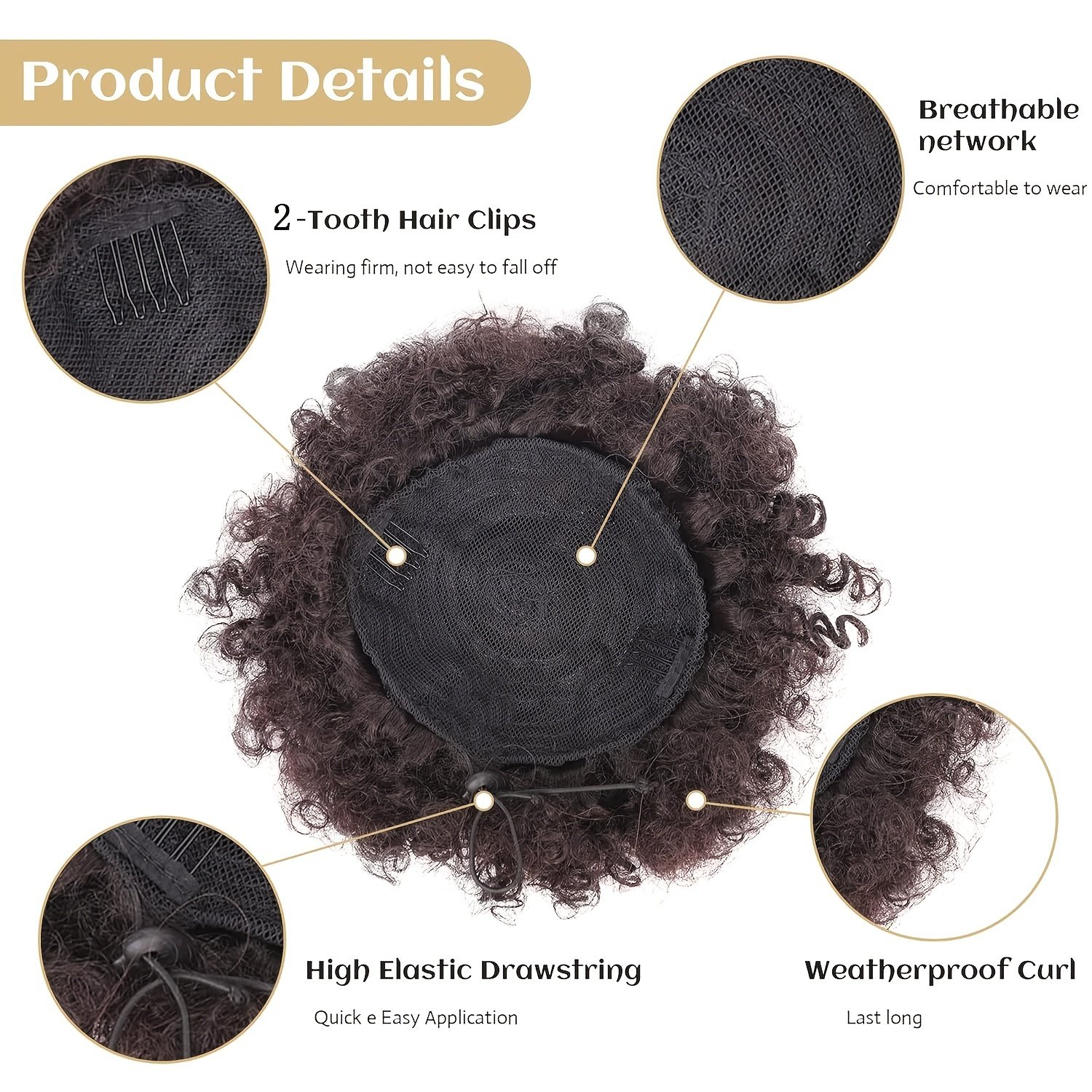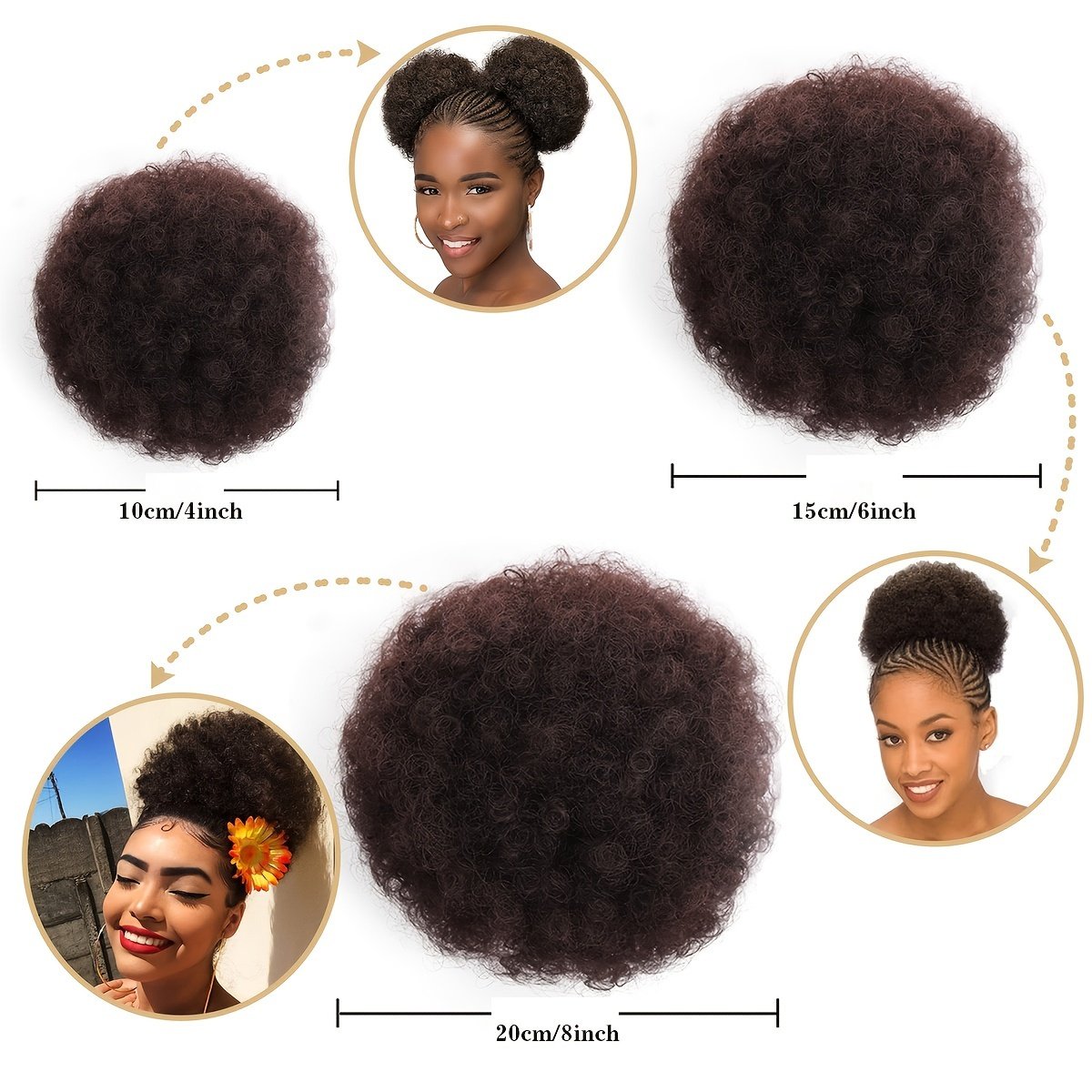 Queue de cheval extensible 10.16cm pour femmes – Cordon élastique synthétique doux pour coiffures variées, chignon ou queue de cheval
