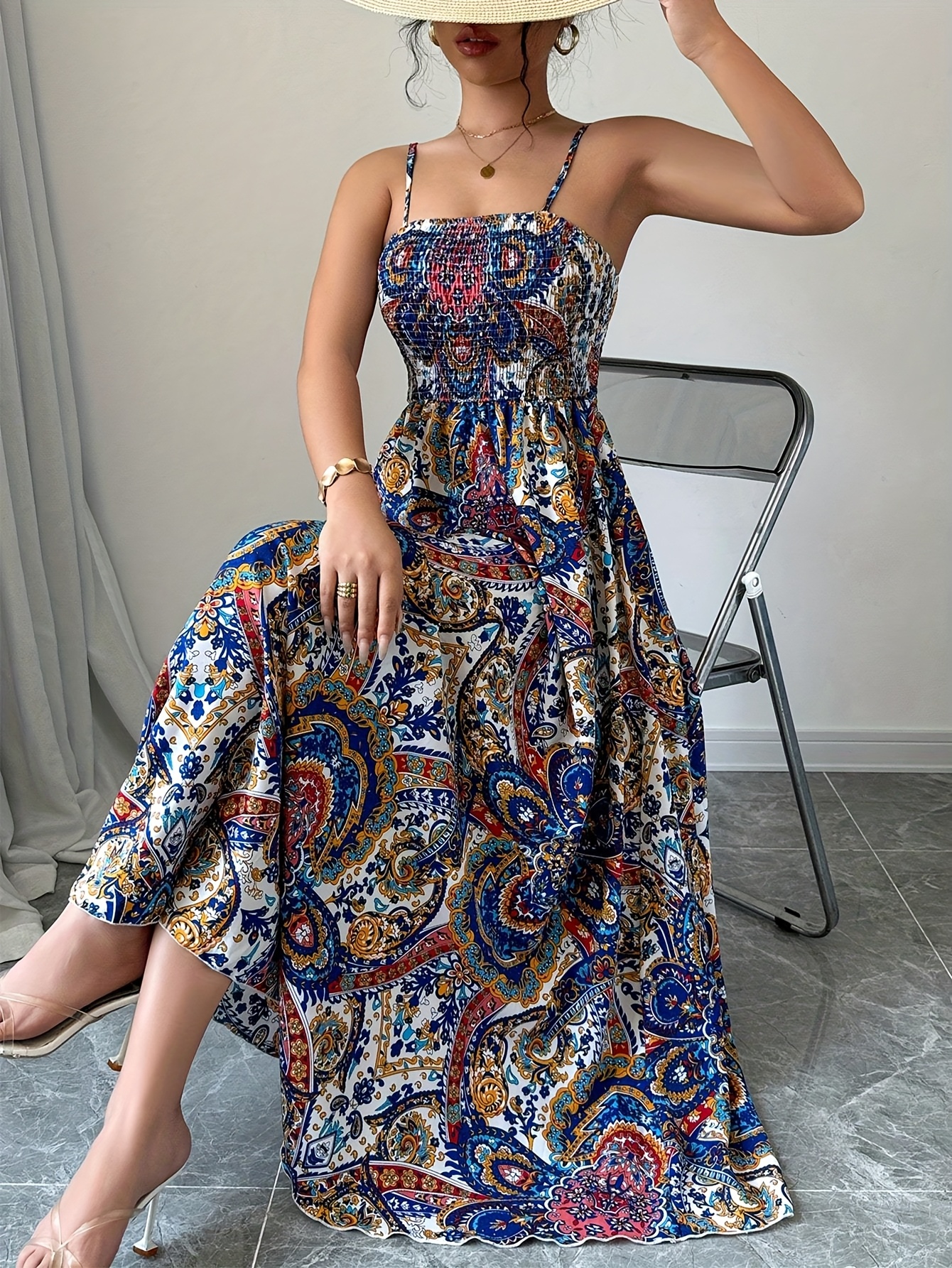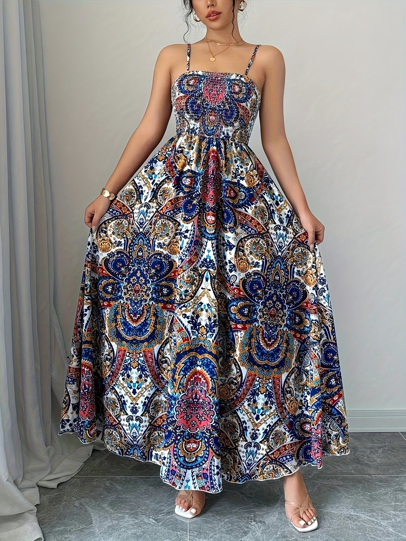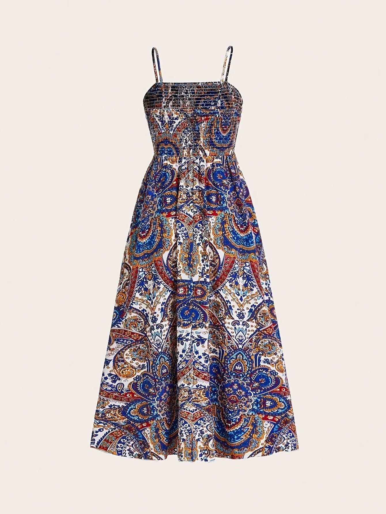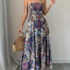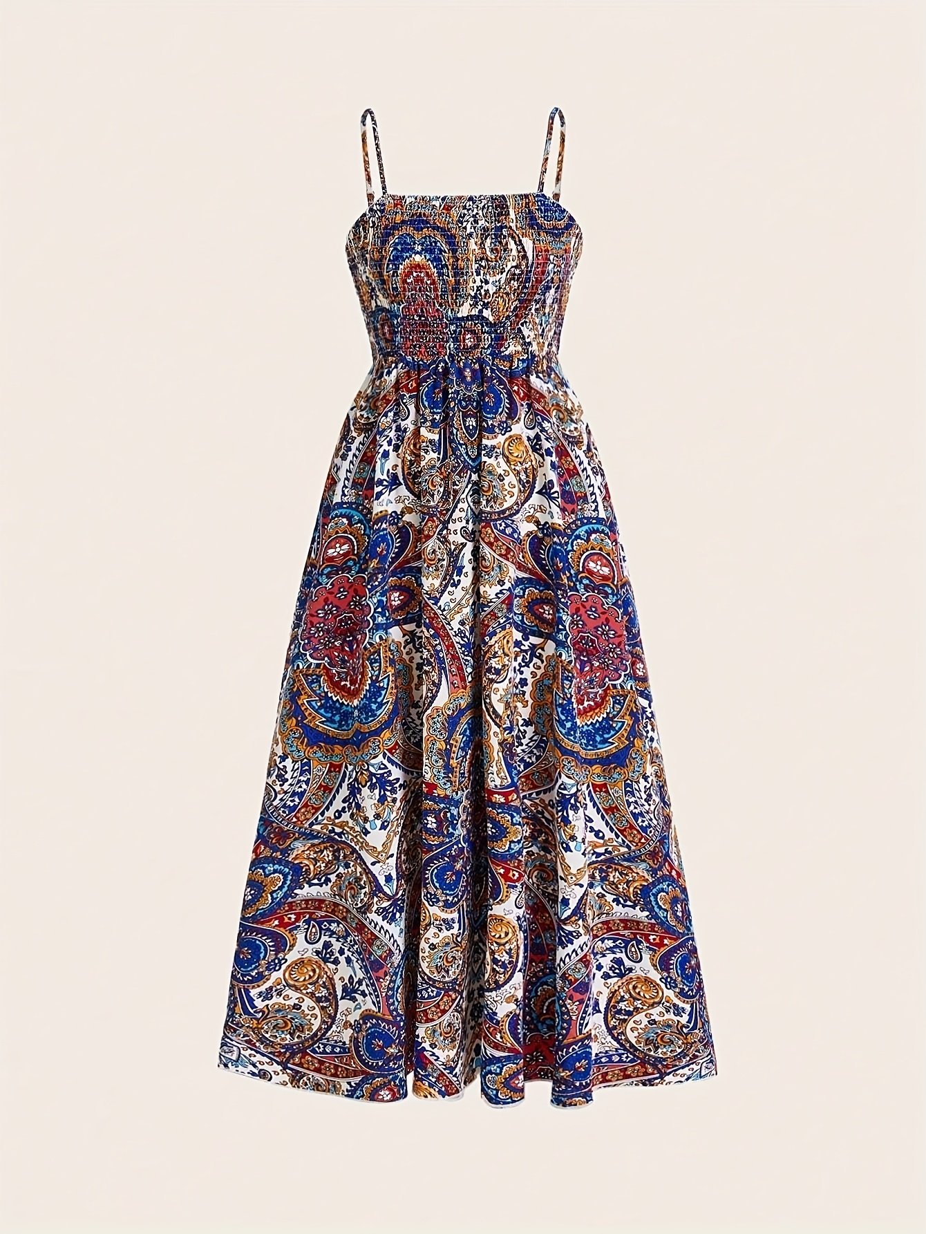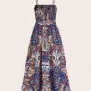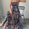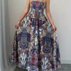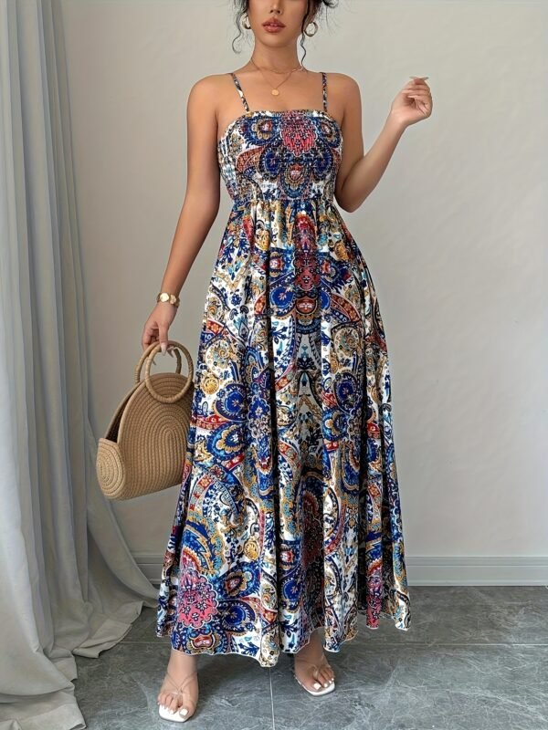 Robe à Bretelles Spaghetti Imprimé Paisley, Tenue de Plage Décontractée Longue pour Femmes