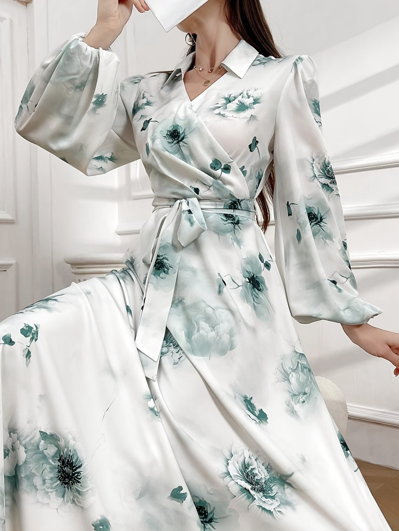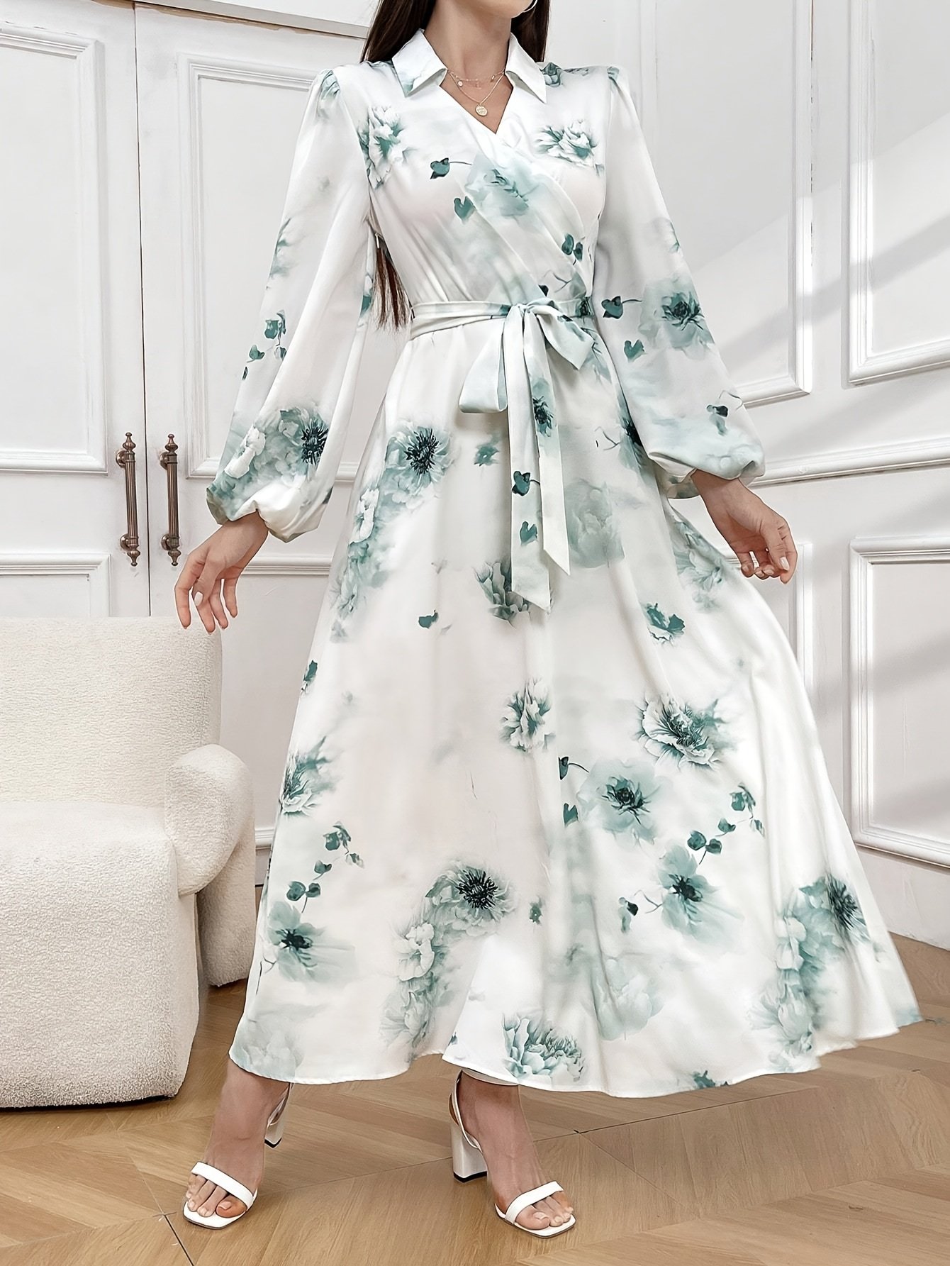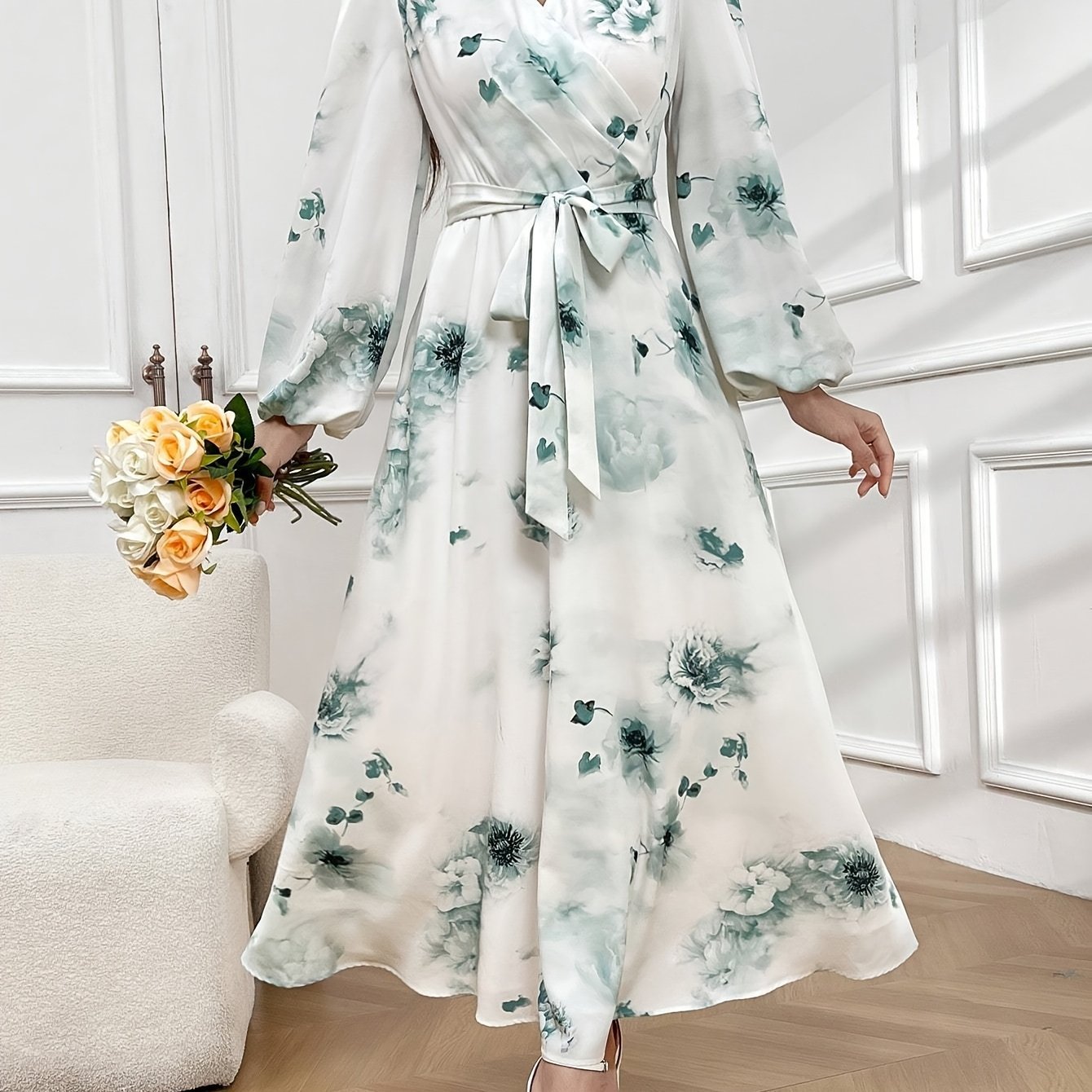 Robe à col noué arabe et bustier croisé à imprimé floral pour femmes