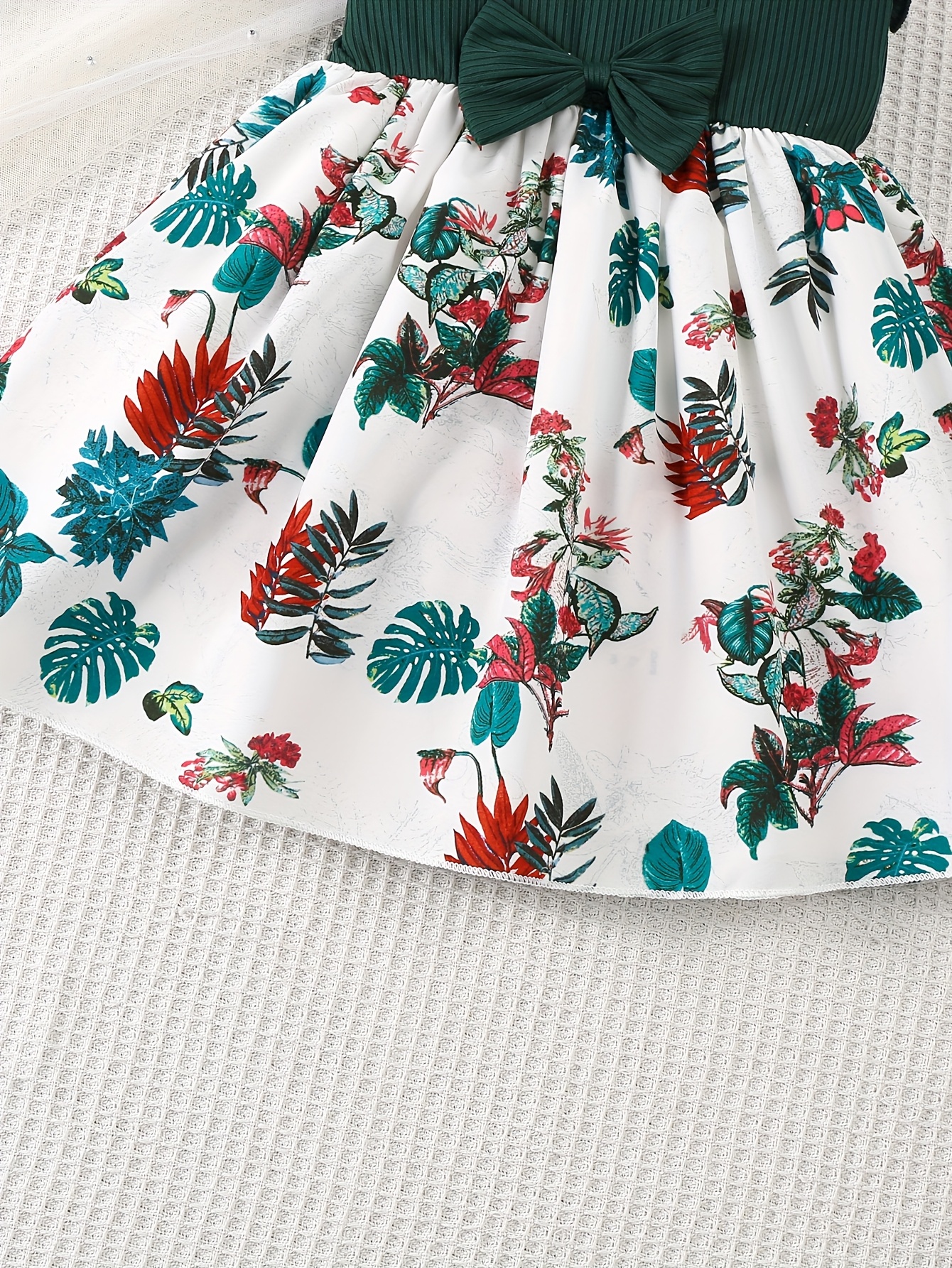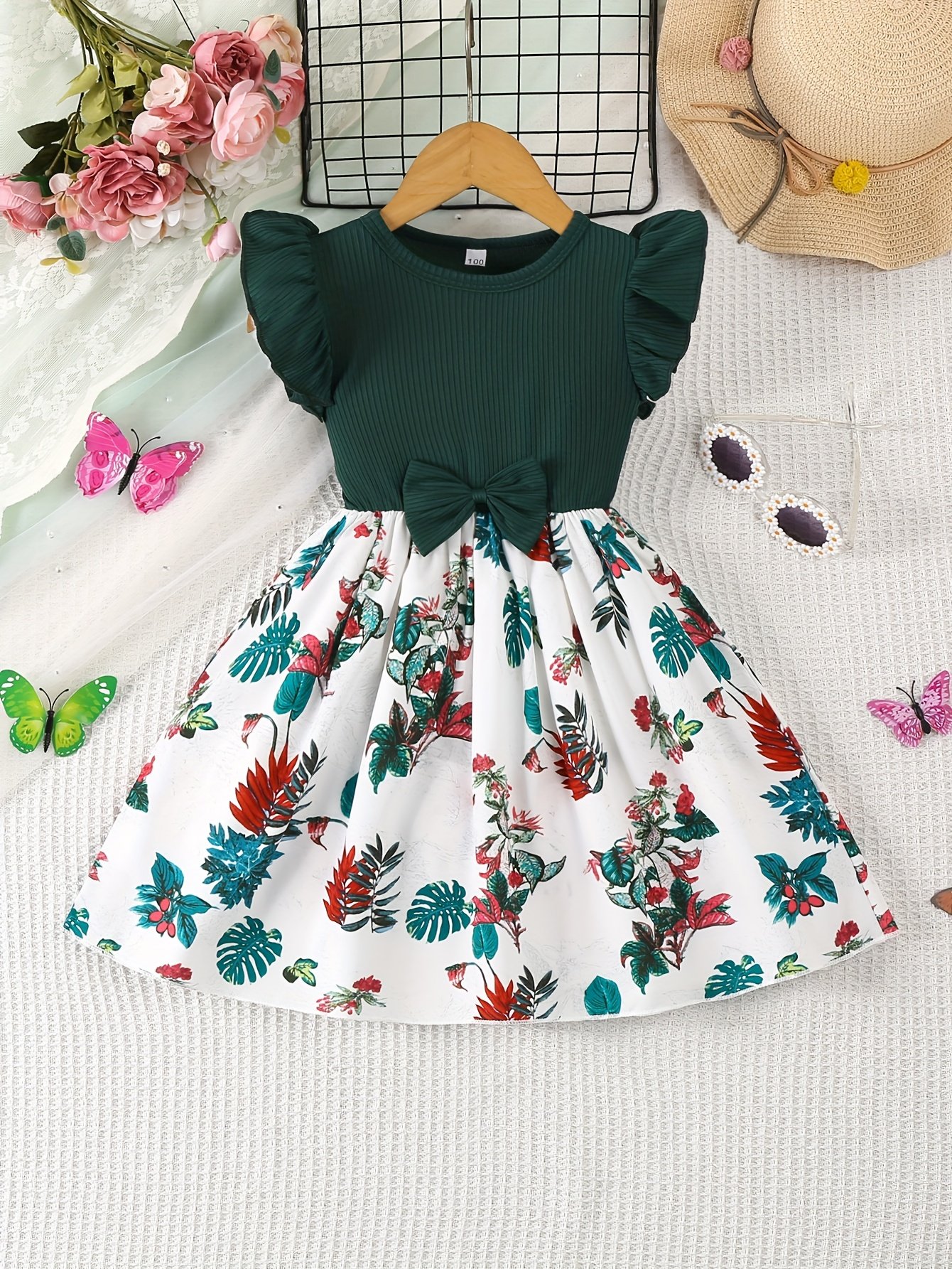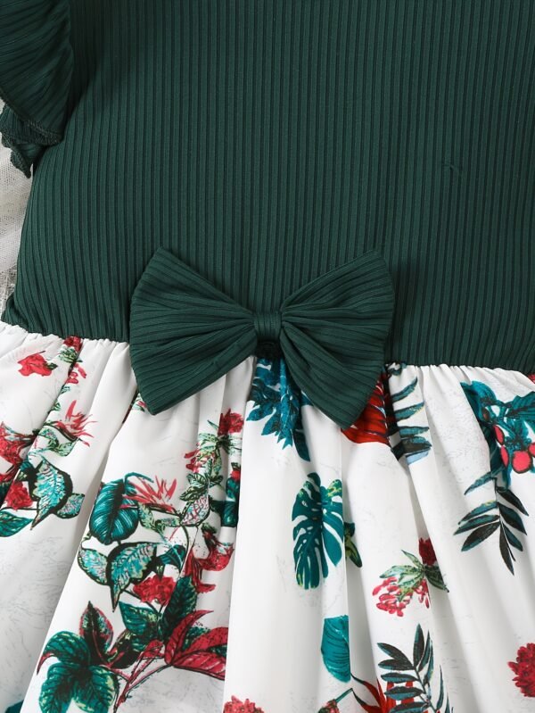 Robe à Manches Volantées Fleuri et Nœud pour Filles – 100 % Polyester
