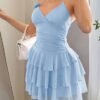 Robe à Volants avec Décoration Florale Unie