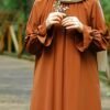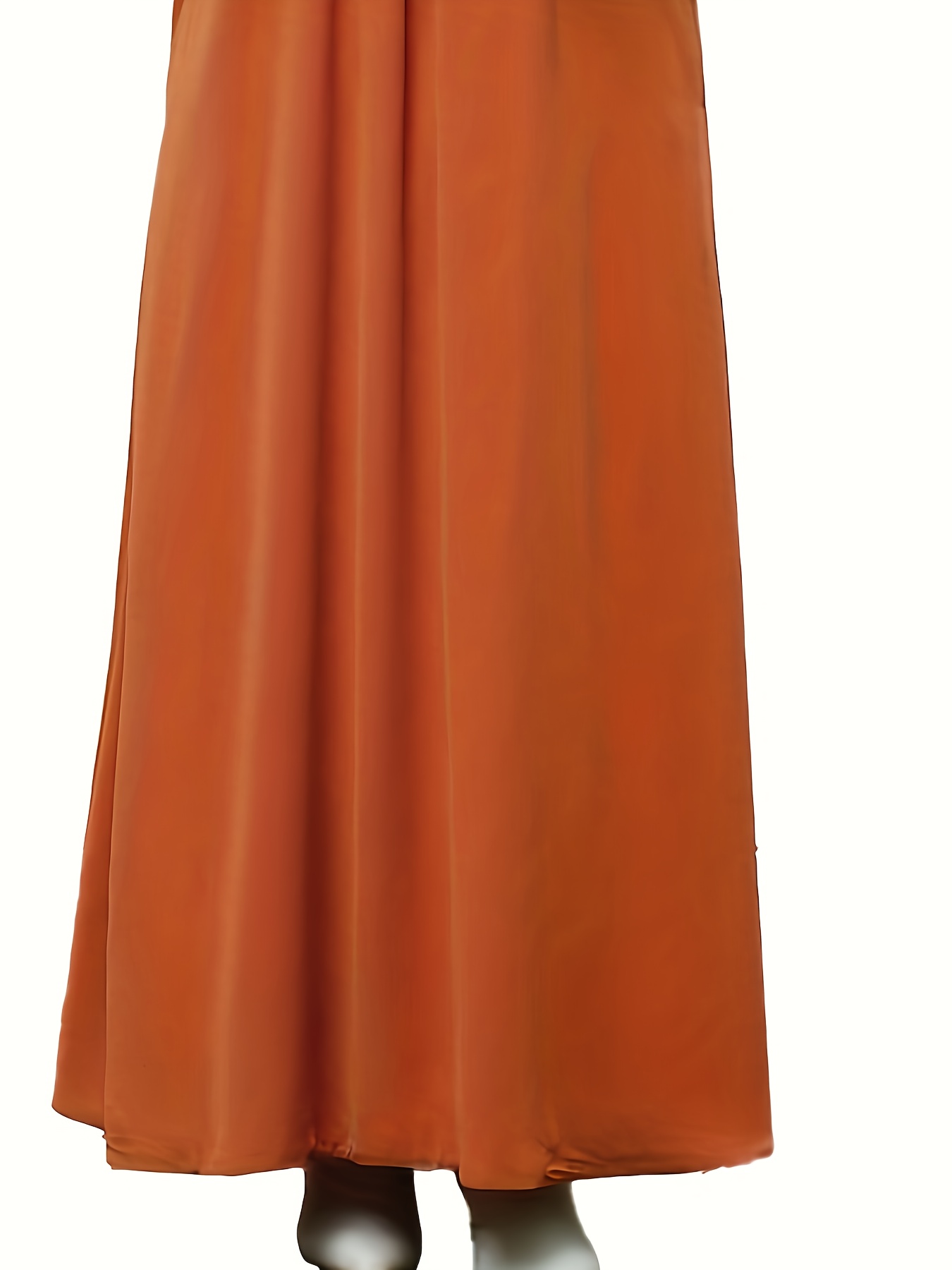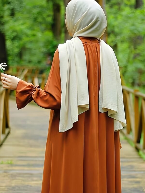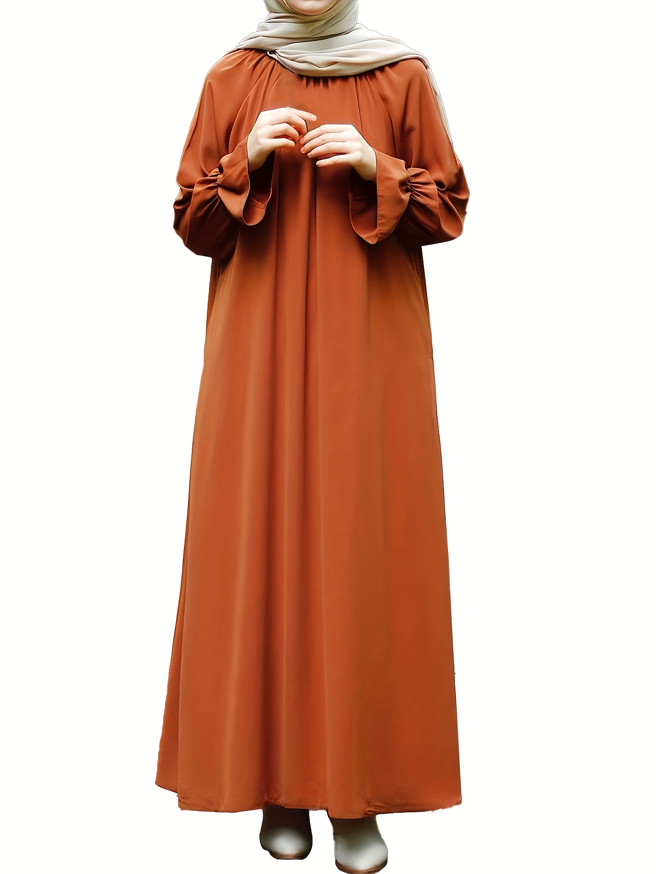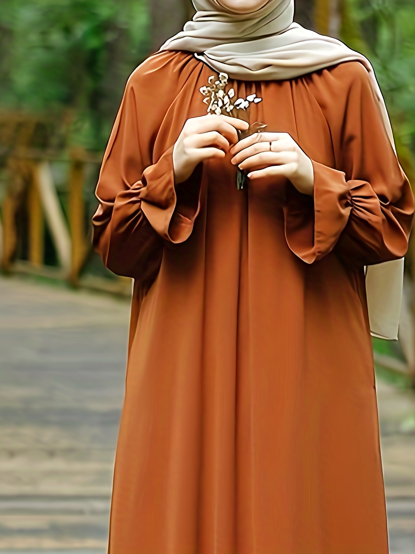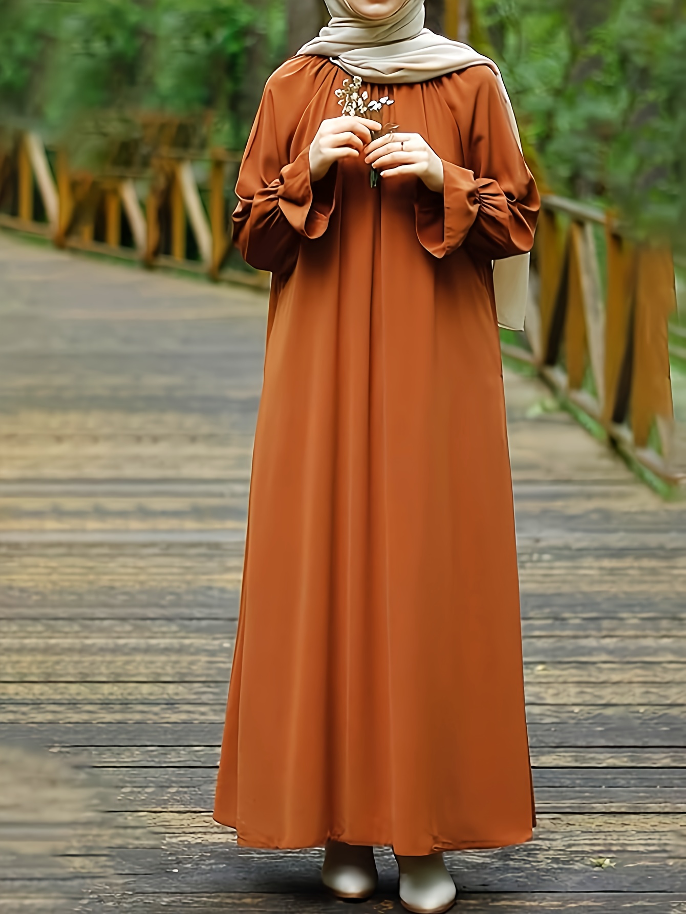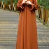 Robe abaya maxi marron élégante pour femme – Couleur unie avec manches cloche à volants