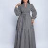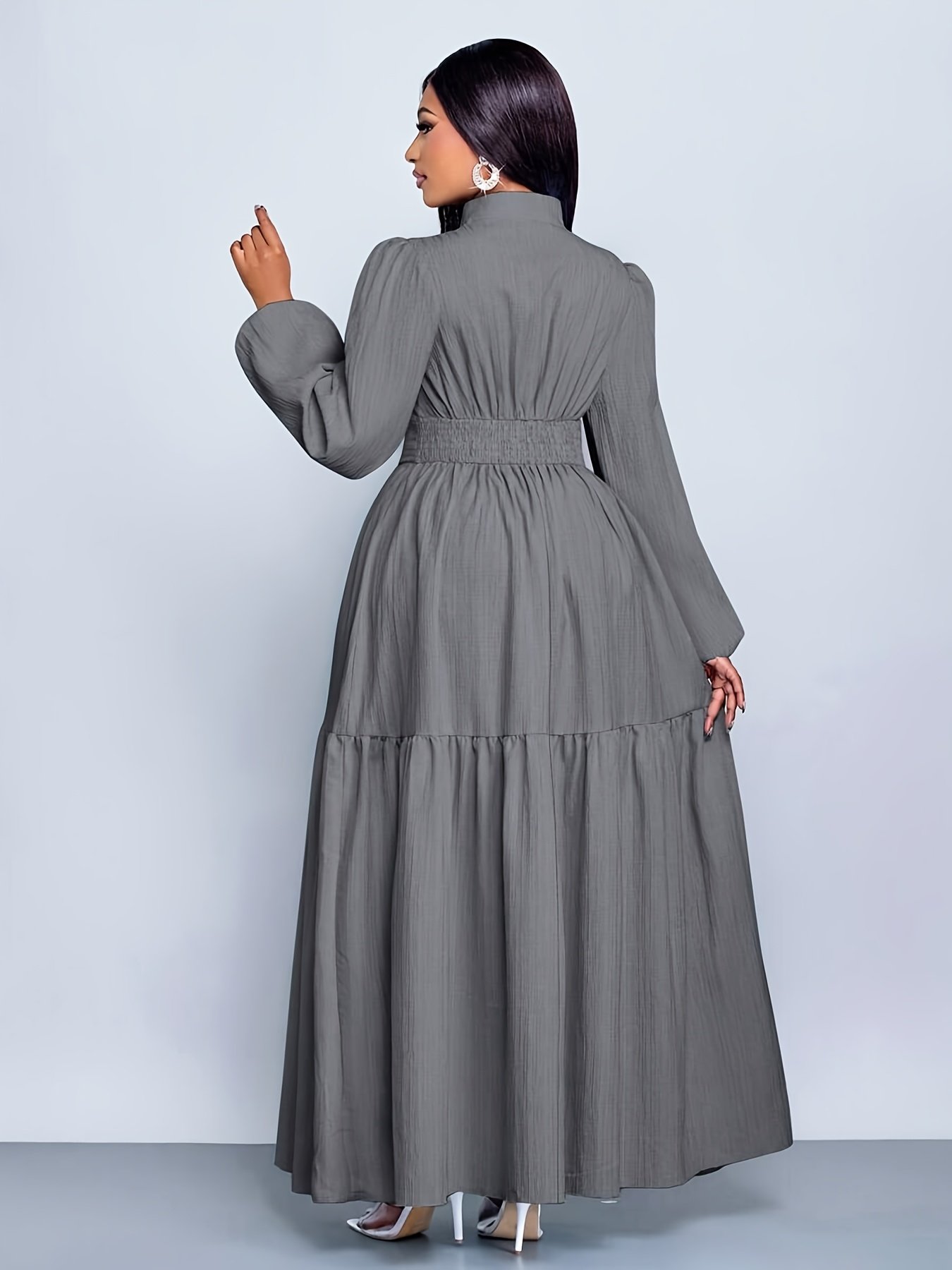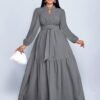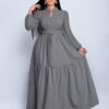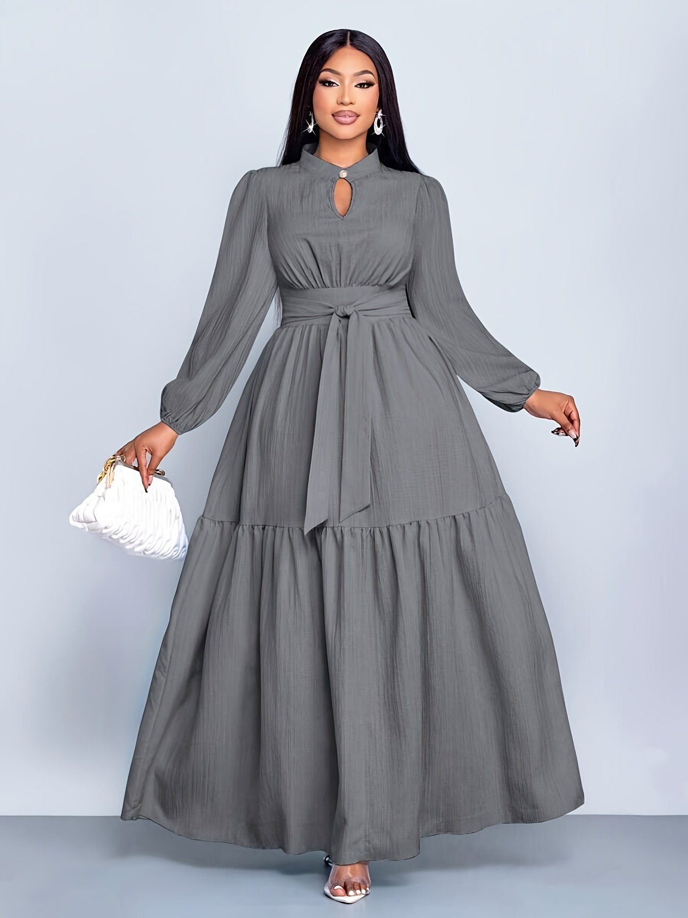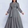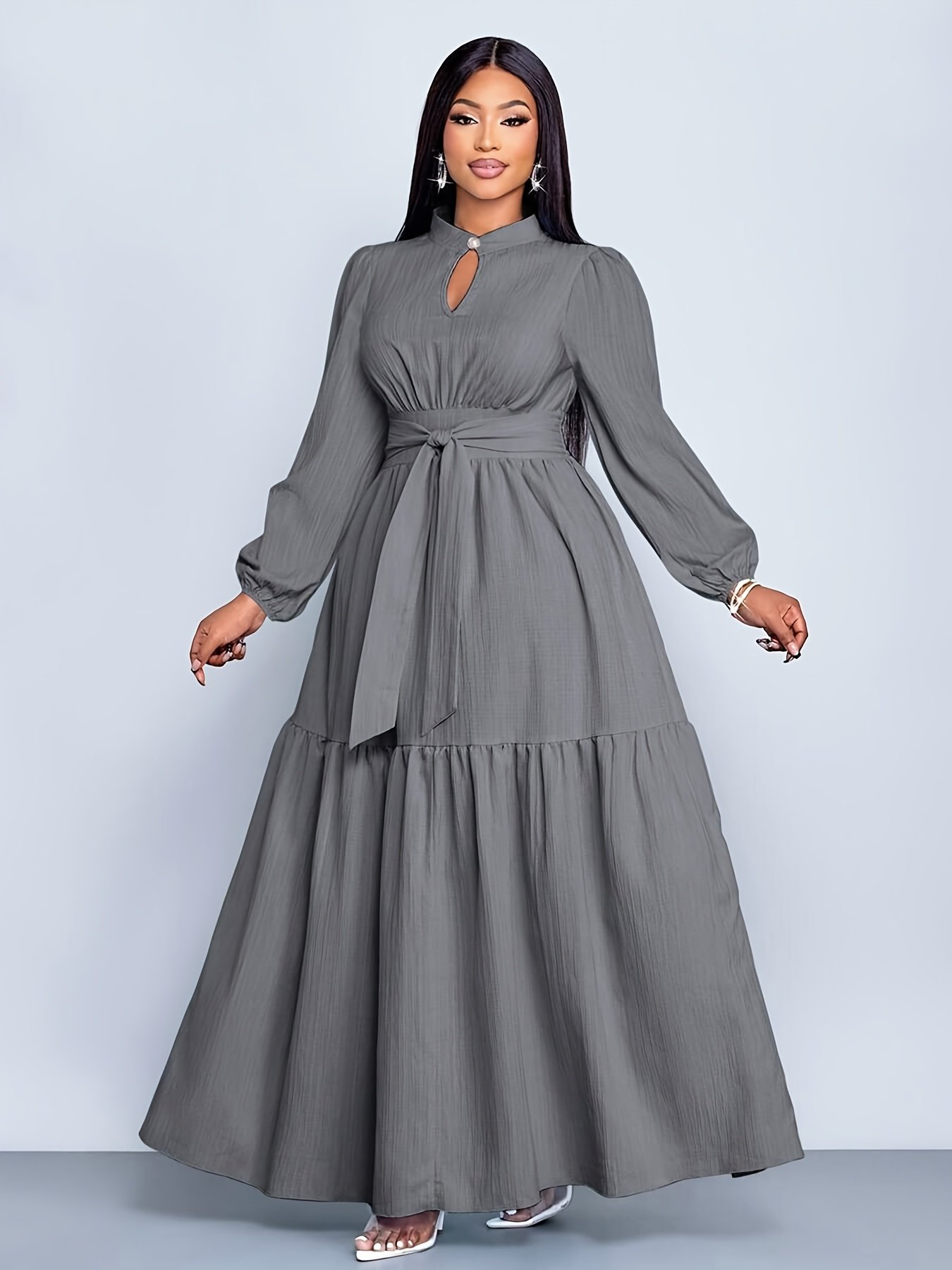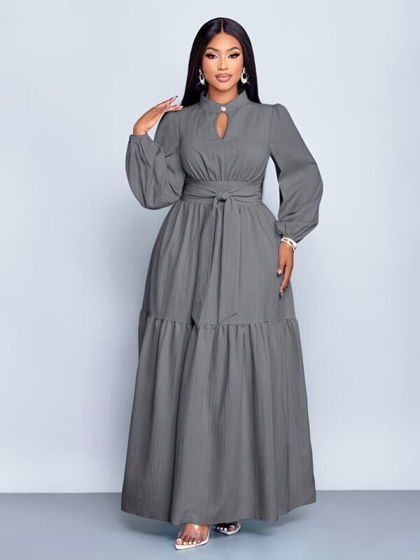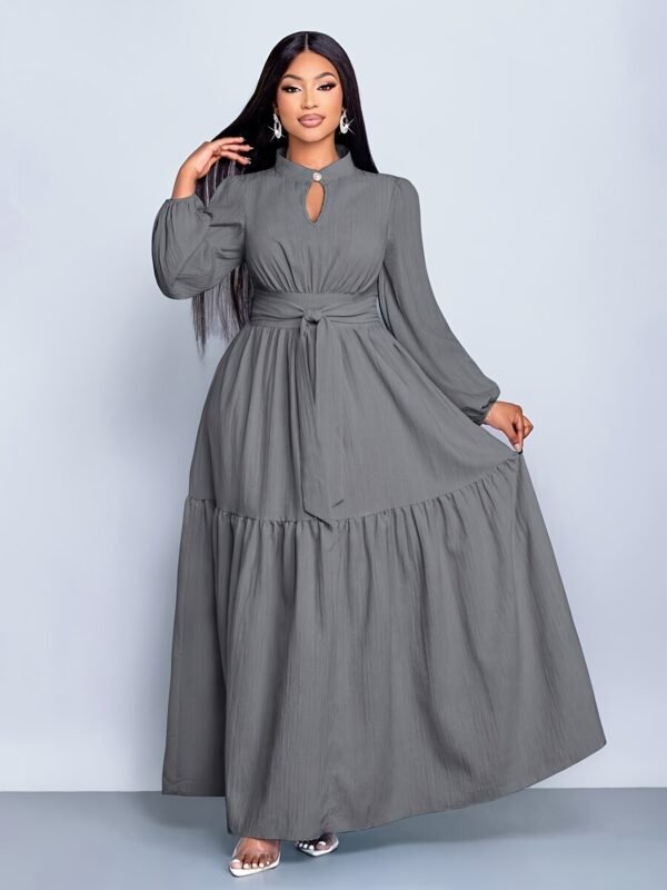 Robe Chemise Longue Décontractée à Col Montant et Nœud, Taille Grande, Mode
