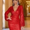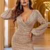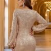 Robe Courte à Paillettes et Col Profond en V, Nouveau Style 2025