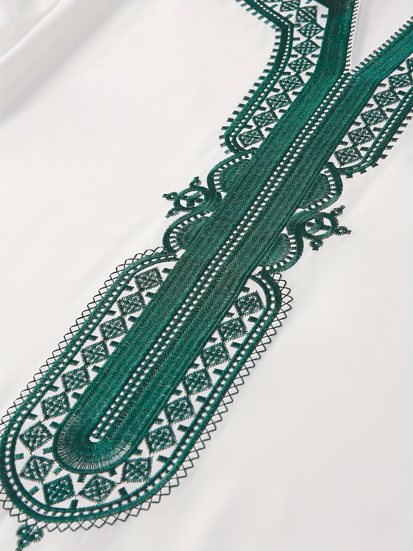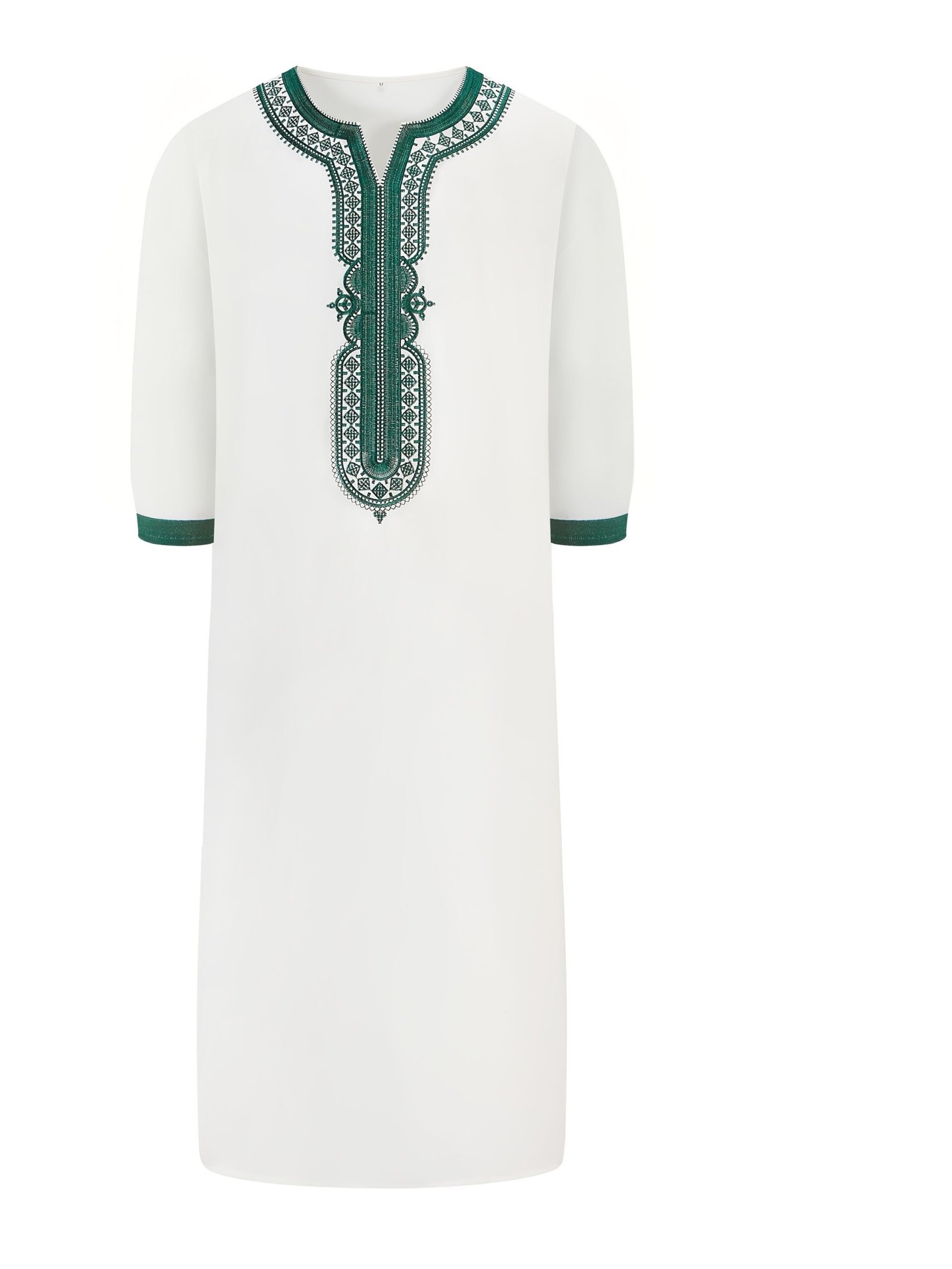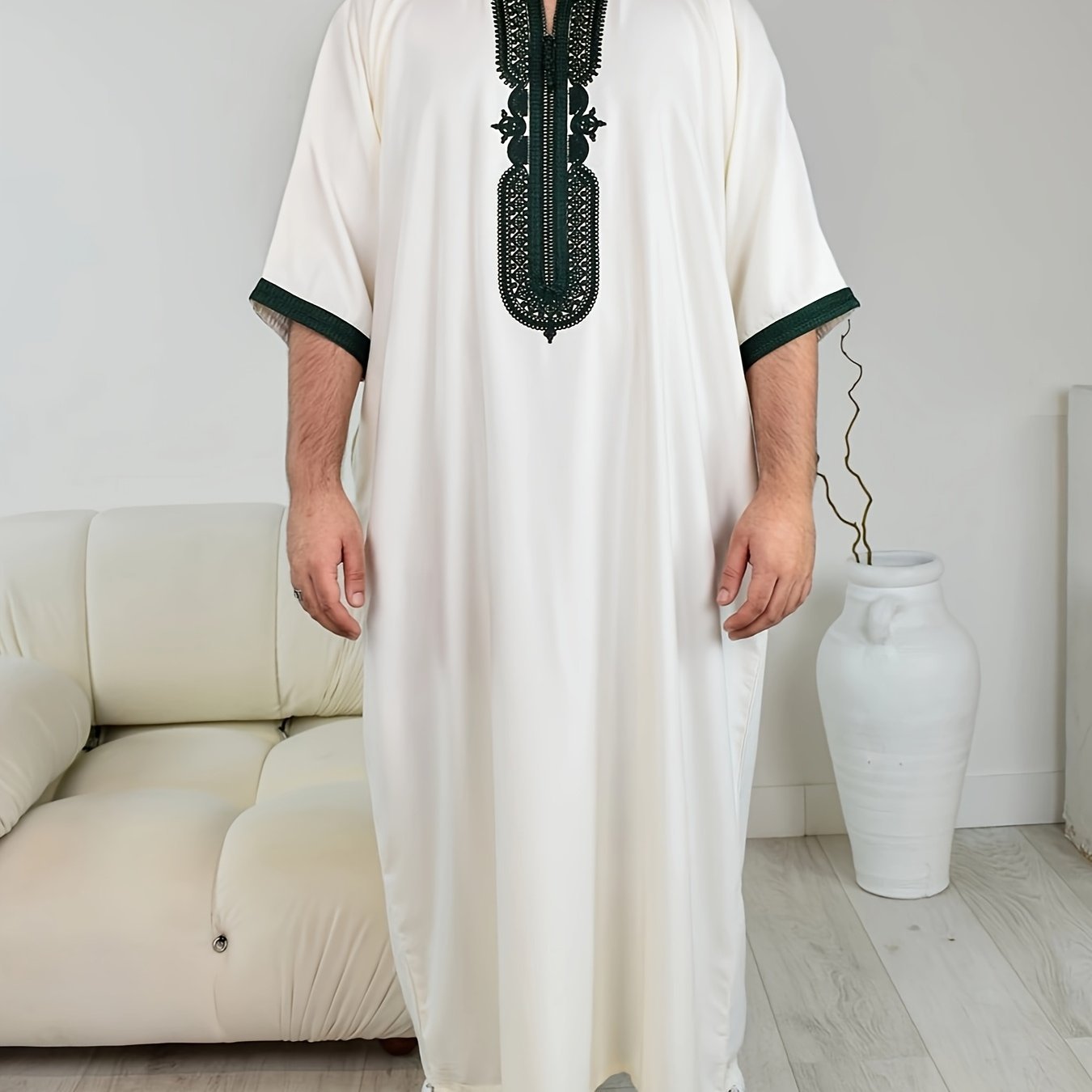 Robe de détente pour hommes, broderie, bordures colorées et manches courtes