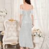 Robe de mariée asymétrique à épaules dénudées, ourlet volanté et paillettes en maille