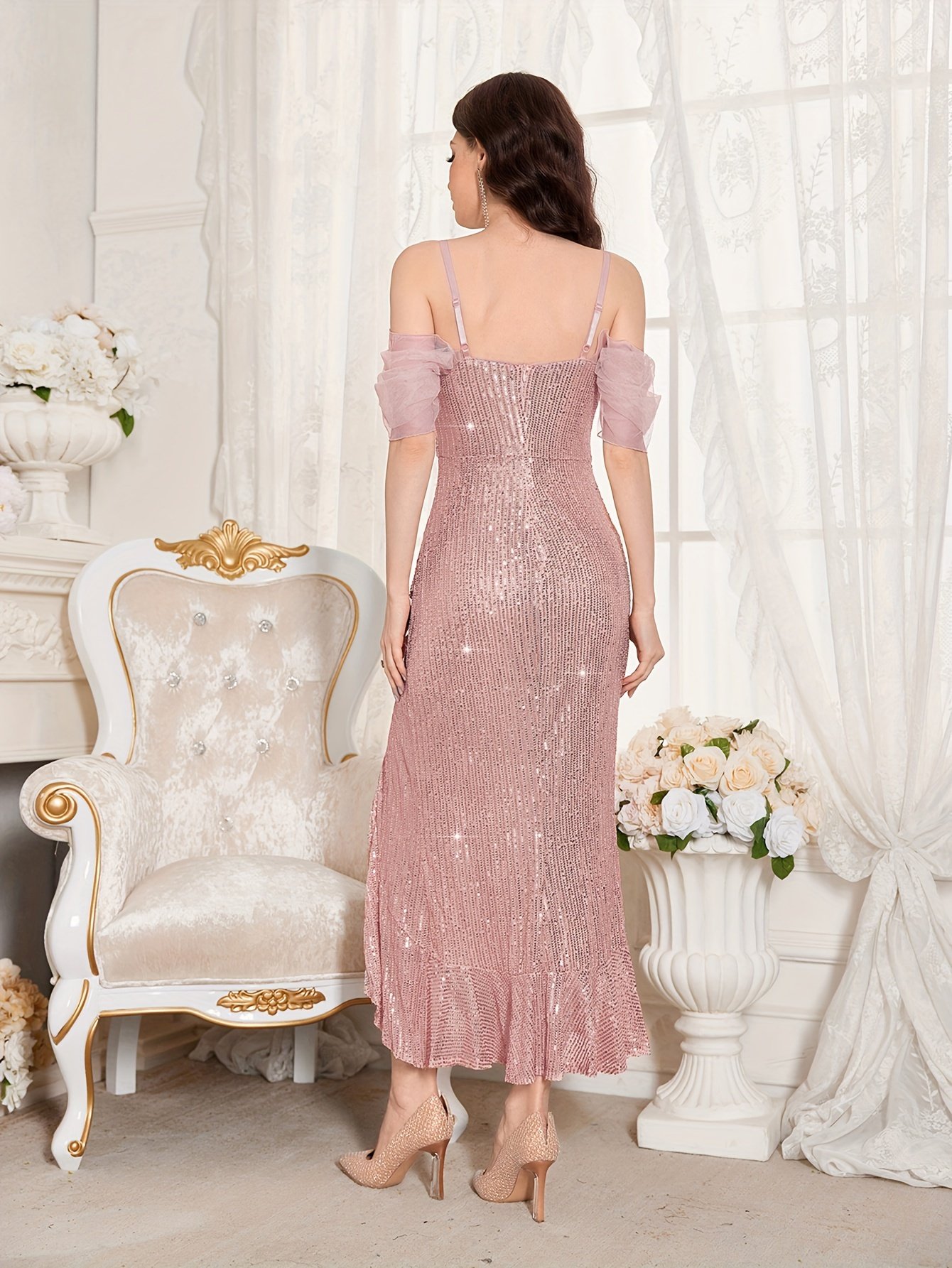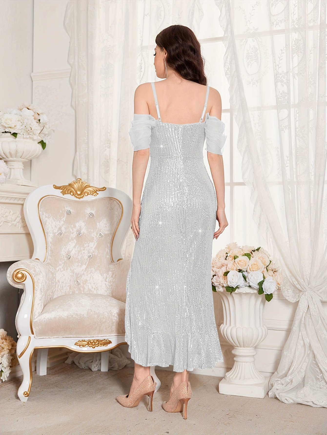 Robe de mariée asymétrique à épaules dénudées, ourlet volanté et paillettes en maille color block pour fiançailles ou demoiselle d’honneur, Robe de Mariée pour la Jeune Fille,Robe de Mariée pour Invités Haute Qualité,Robes de Mariée pour Invité(e)s Femmes Grande Taille,Robes de Soirée pour Femmes Pour Mariage,Robes de Soirée pour Femmes Mariage,Robe de Mariée,Robes de Demoiselle d’Honneur pour Femmes,Robe de Mariée Grande Taille,Robe de Mariage,Robe de Mariée Grande Taille