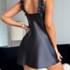 Robe de nuit élégante en dentelle noire pour femmes de grande taille – Col en V, sans manches, en polyester extensible, parfaite pour toutes les saisons, vêtement de nuit tendance pour femmes adultes, robe toutes saisons | Mode sans manches | Texture lisse