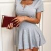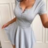 Robe de nuit femme sexy ajustée à boutons avec détails volants – Confortable pour la maison