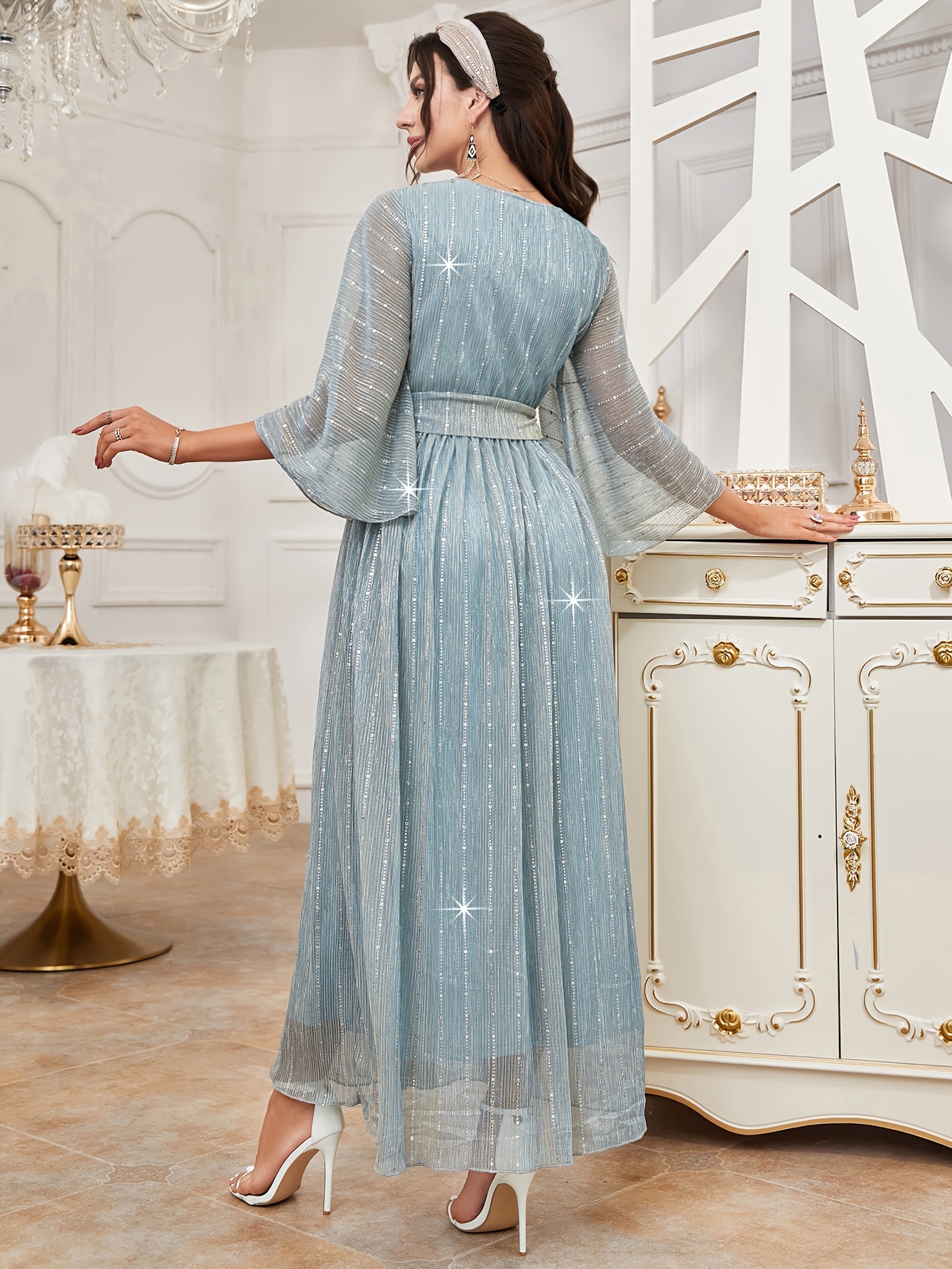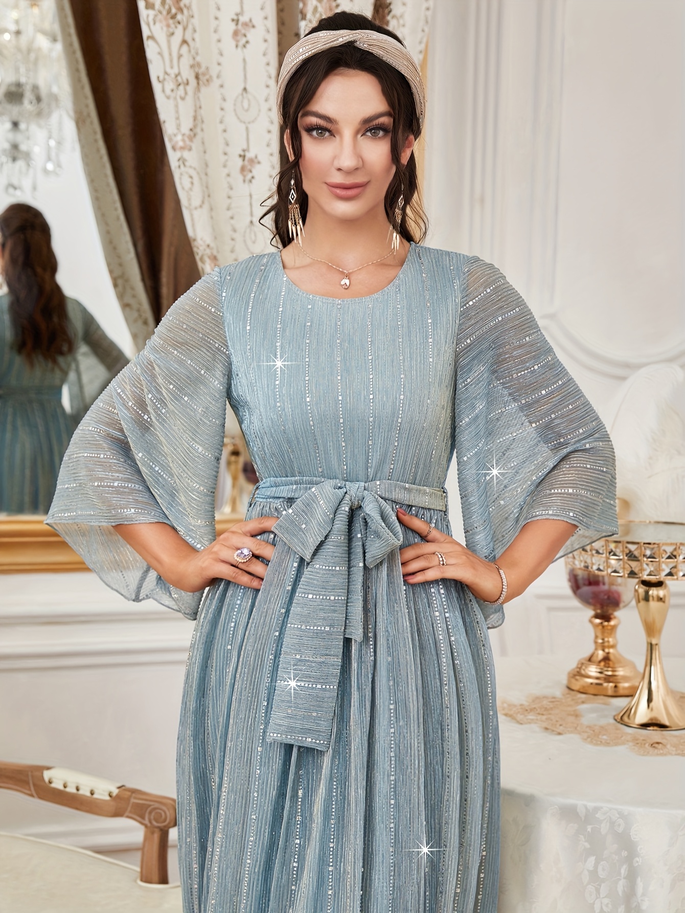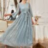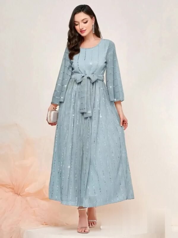 Robe de soirée élégante et scintillante pour femme avec ceinture étoilée étincelante & traîne