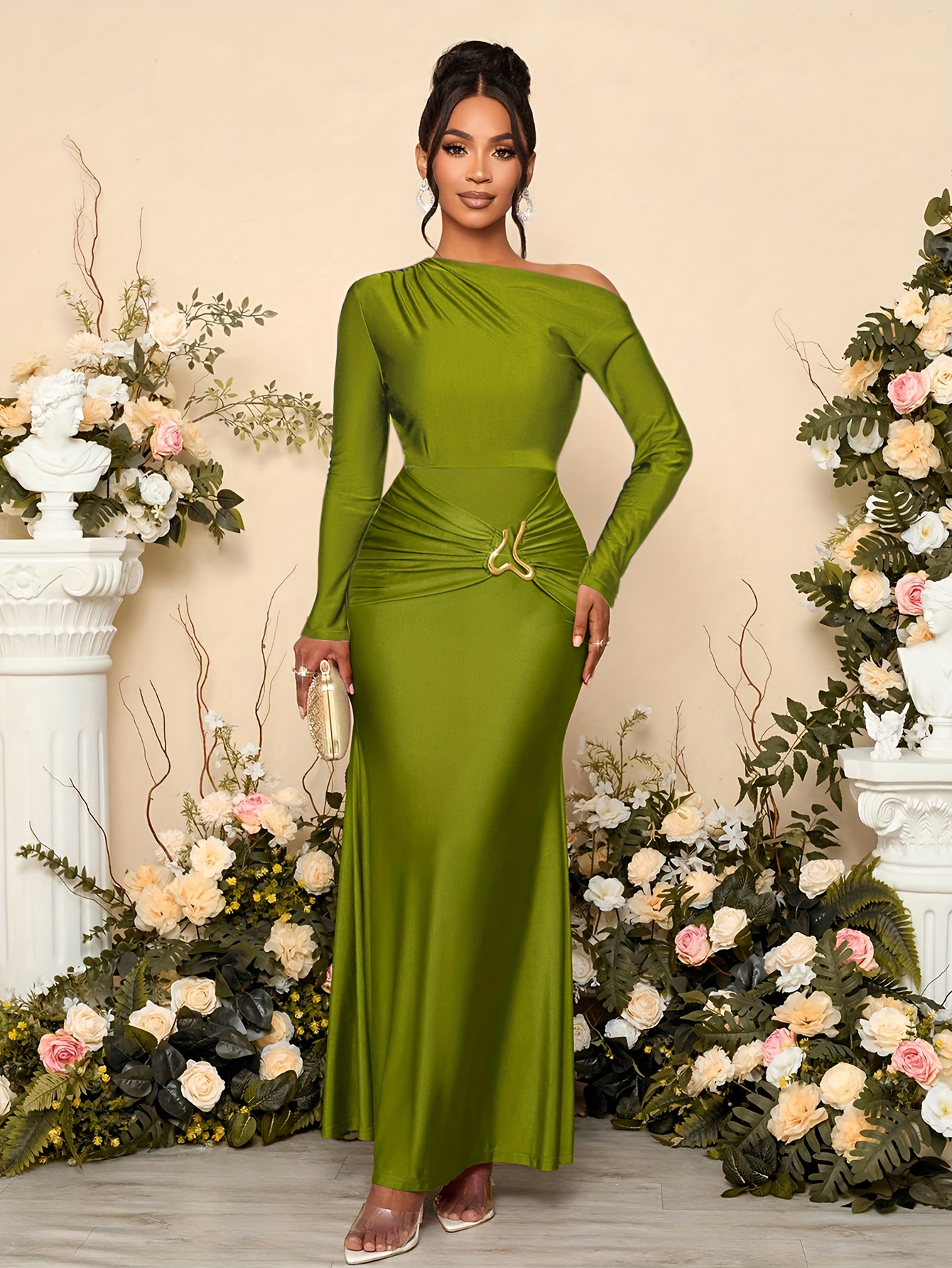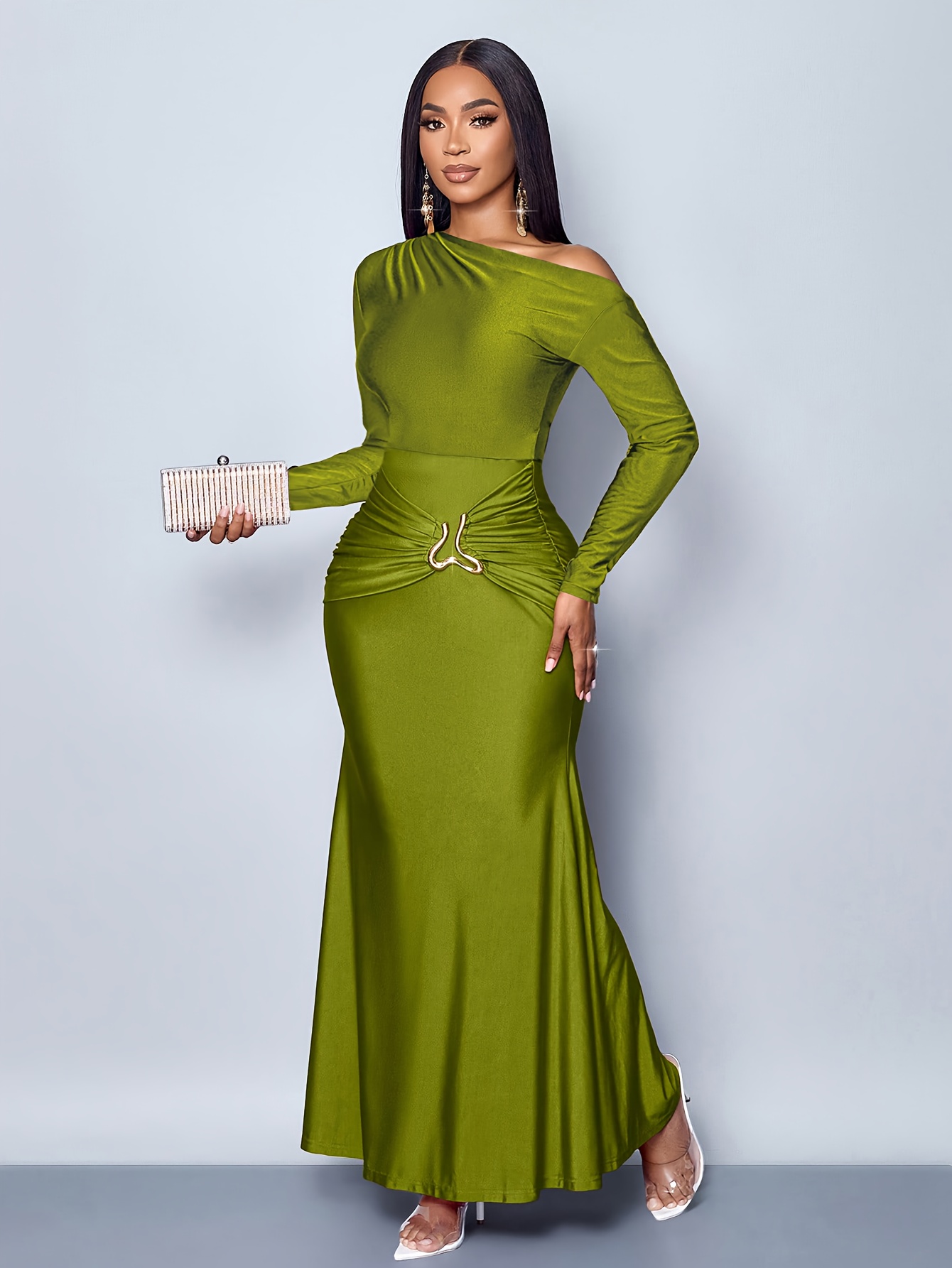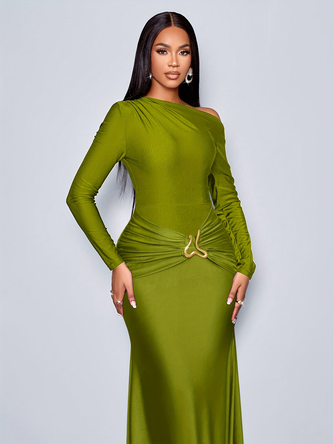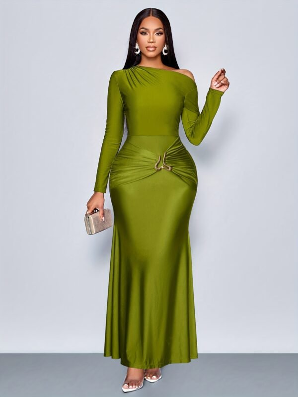1 avis pour Robe de soirée élégante avec taille froncée et embellissements métalliques