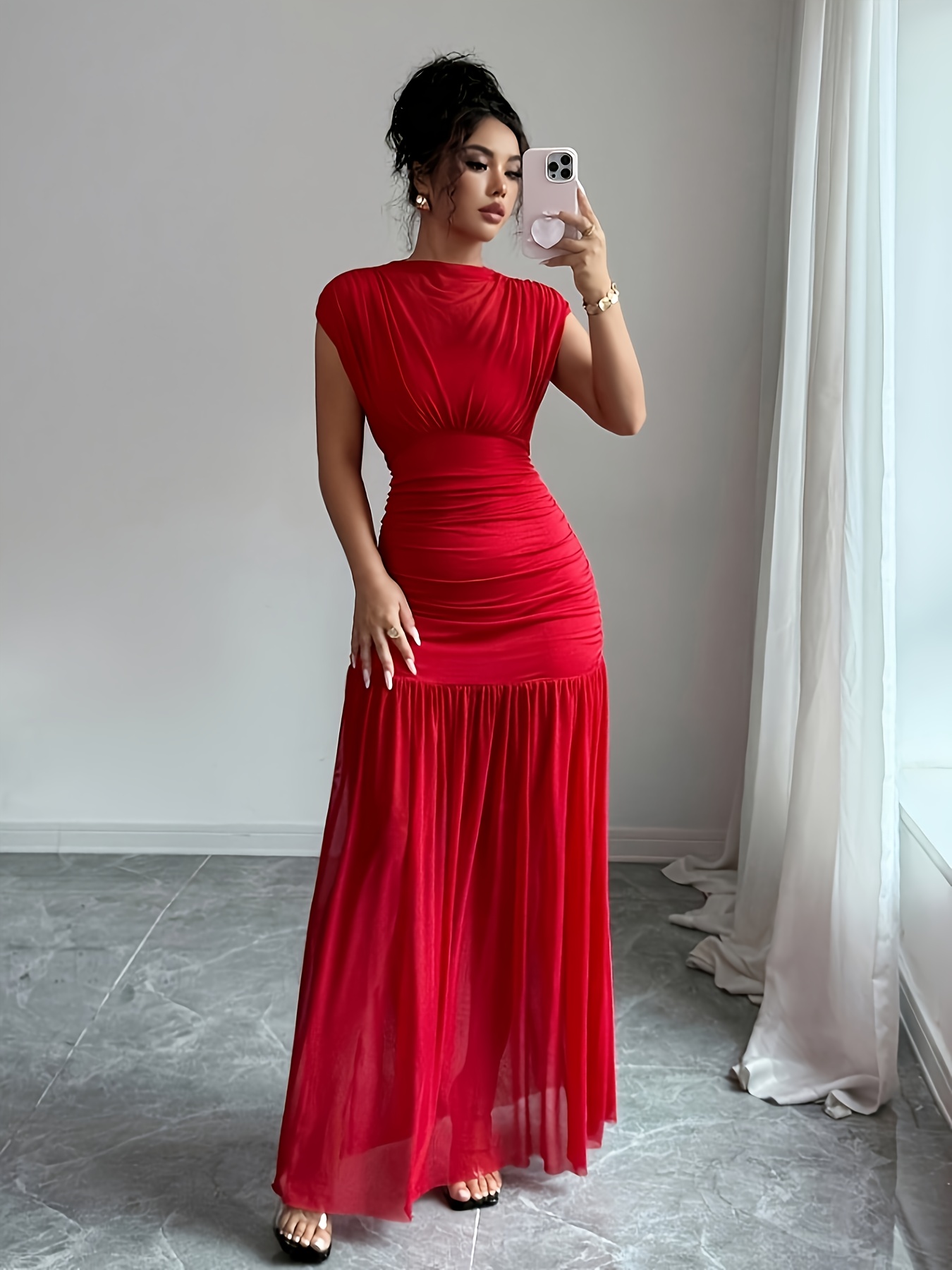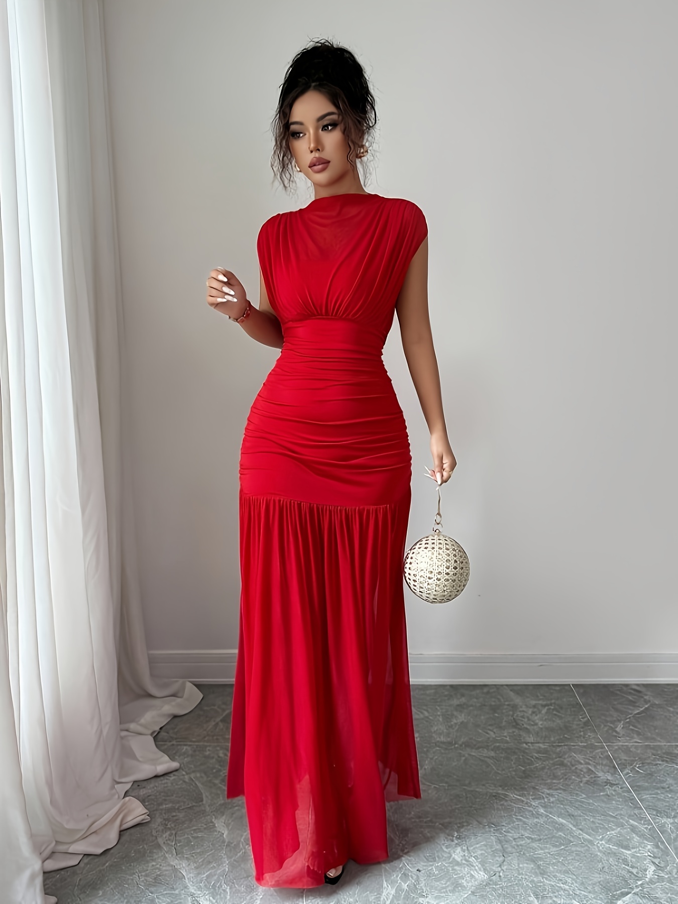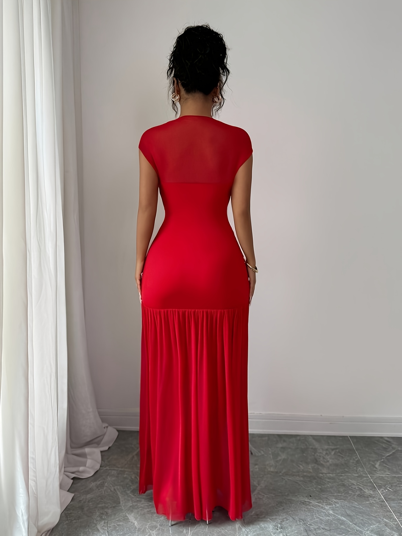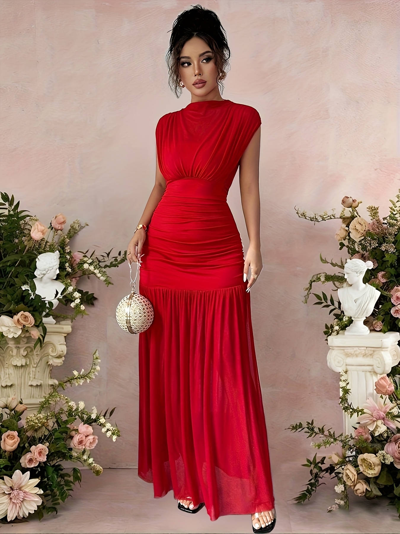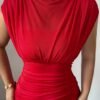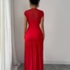 3 avis pour Robe de soirée élégante pour femme, rouge longueur sol en col bateau sirène/trompette