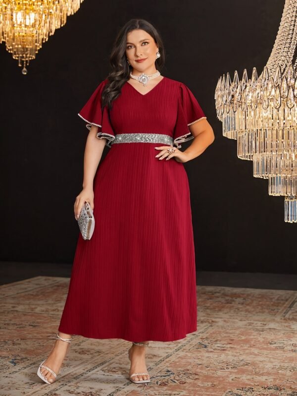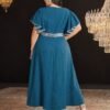 Grande Taille – Grande Taille – Grande Taille – Grande Taille, Robe de Soirée Élégante pour Femmes – Robe de Mariage de Fête Formelle avec Col en V, Tenue Formelle Fluide en Vert Émeraude