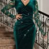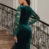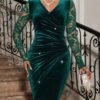 Soyez le premier à laisser votre avis sur “Robe de soirée élégante pour femmes, couleur marine, en velours avec bordure en dentelle”