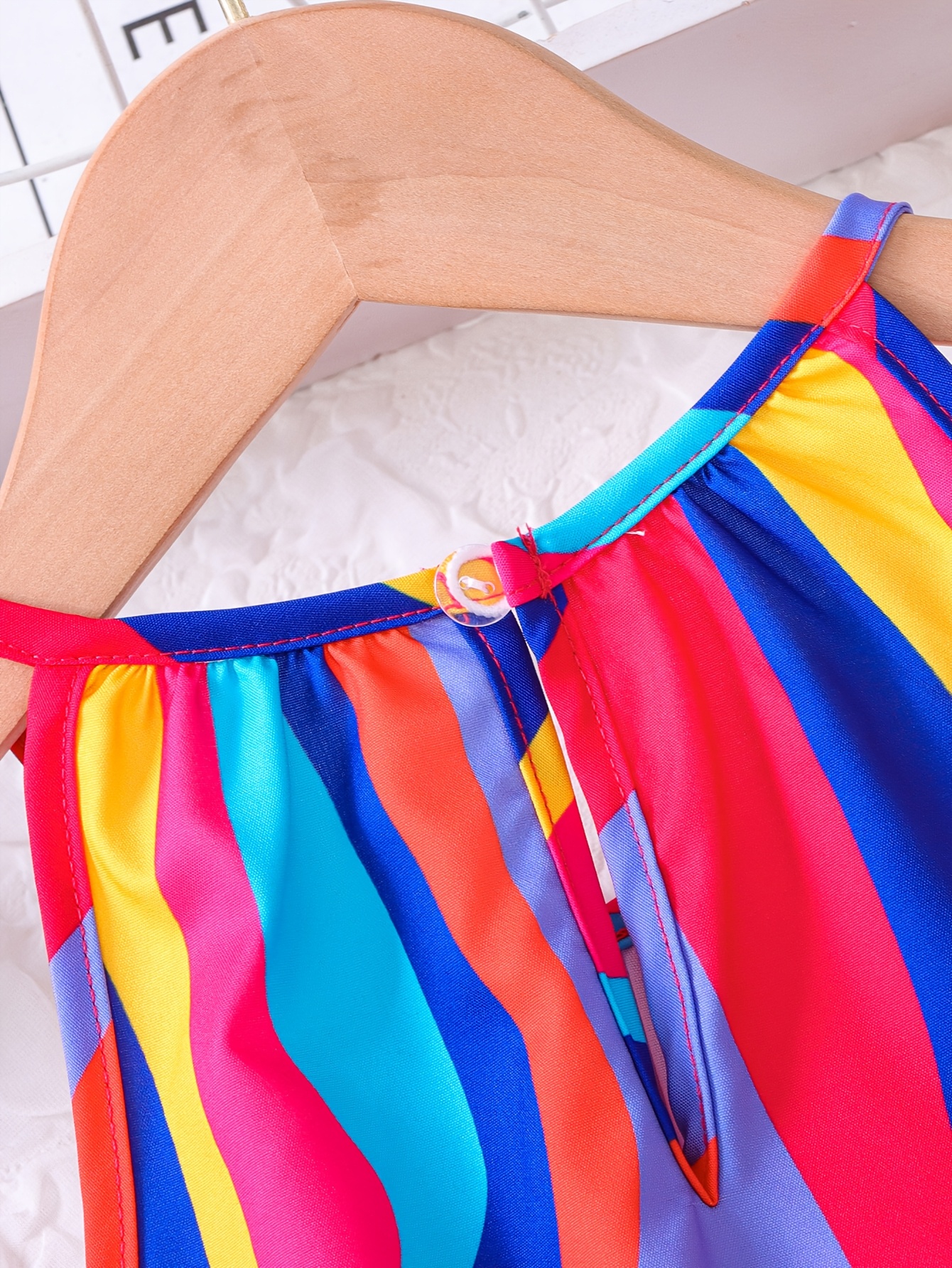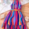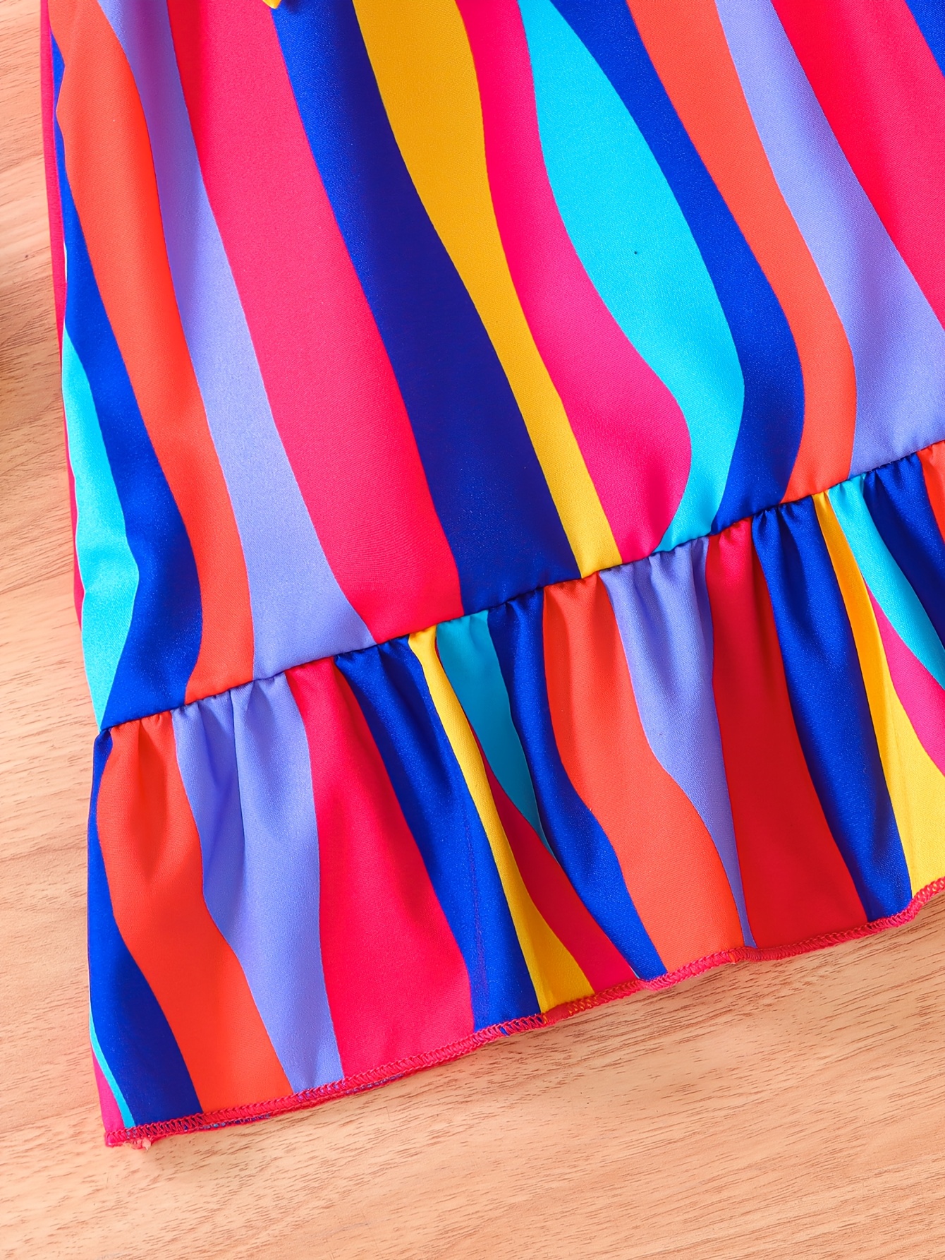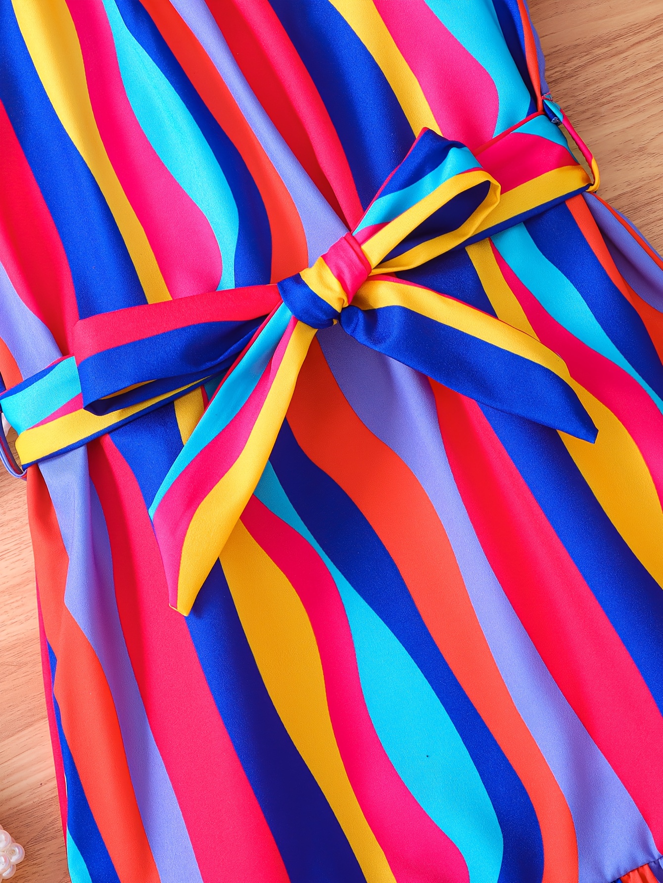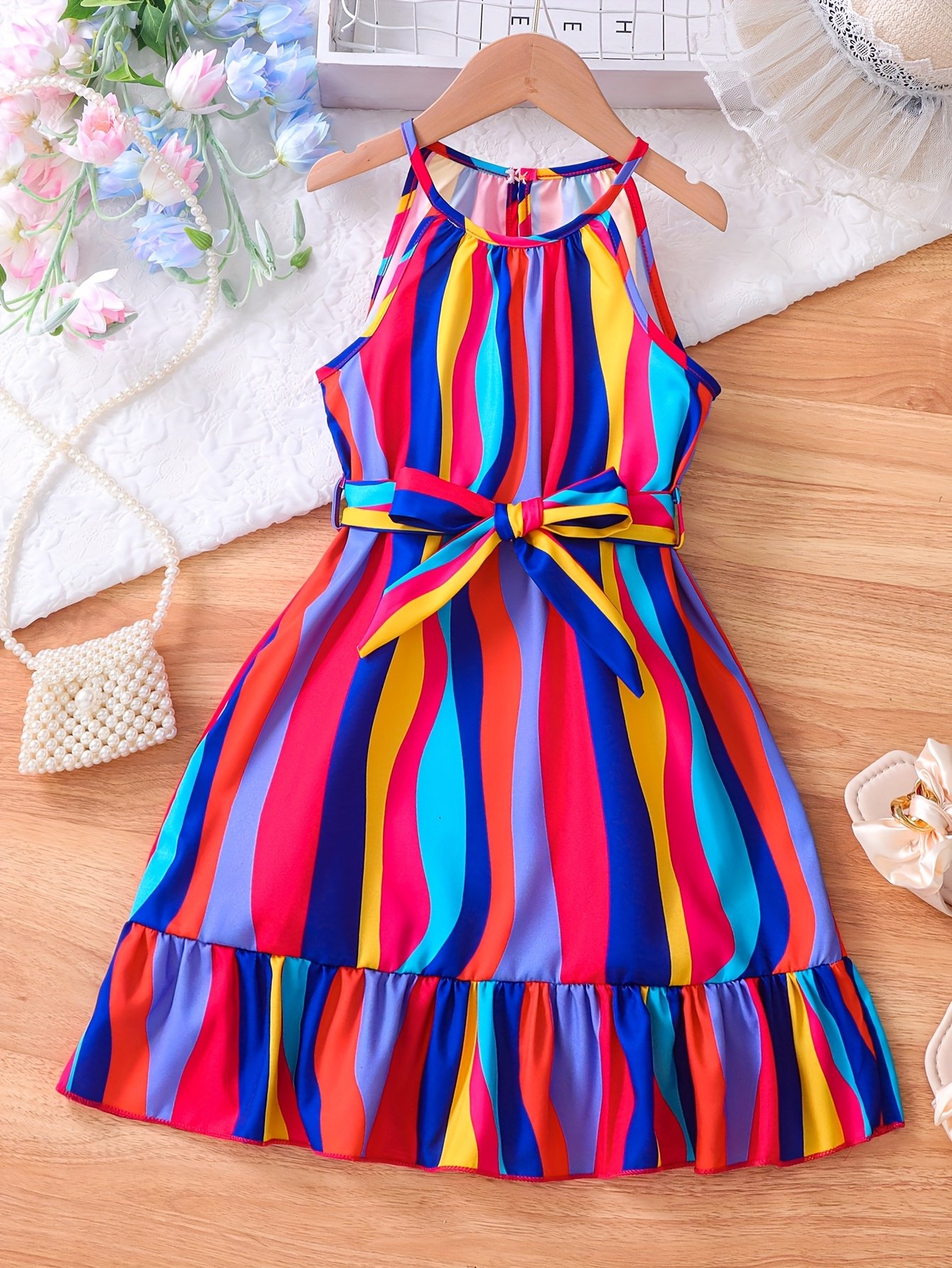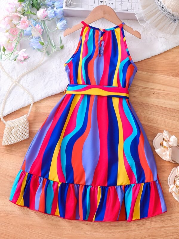 Robe d’été pour filles avec ceinture – Manches courtes, coupe A, ourlet à volants,