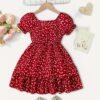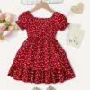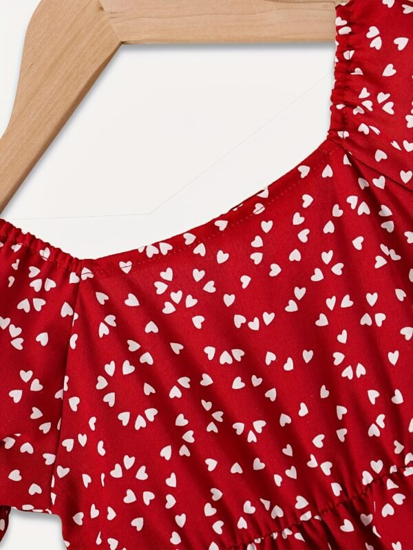 Robe d’été pour filles avec imprimé cœur et manches à volants