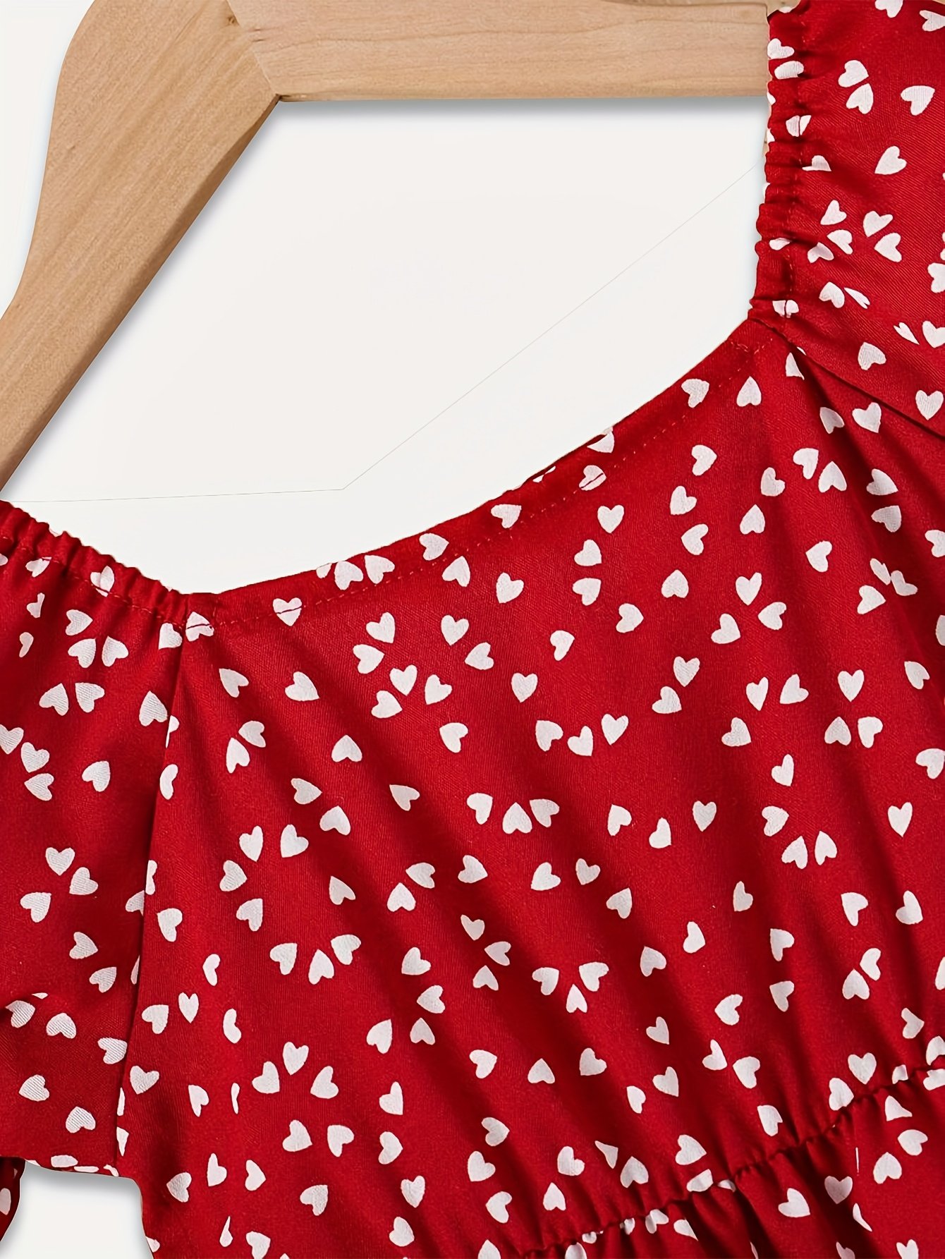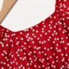+ Livraison de 12 à 17 joursCol en cœur, motif à pois rouge et blanc, tissu léger non extensible pour les sorties familiales