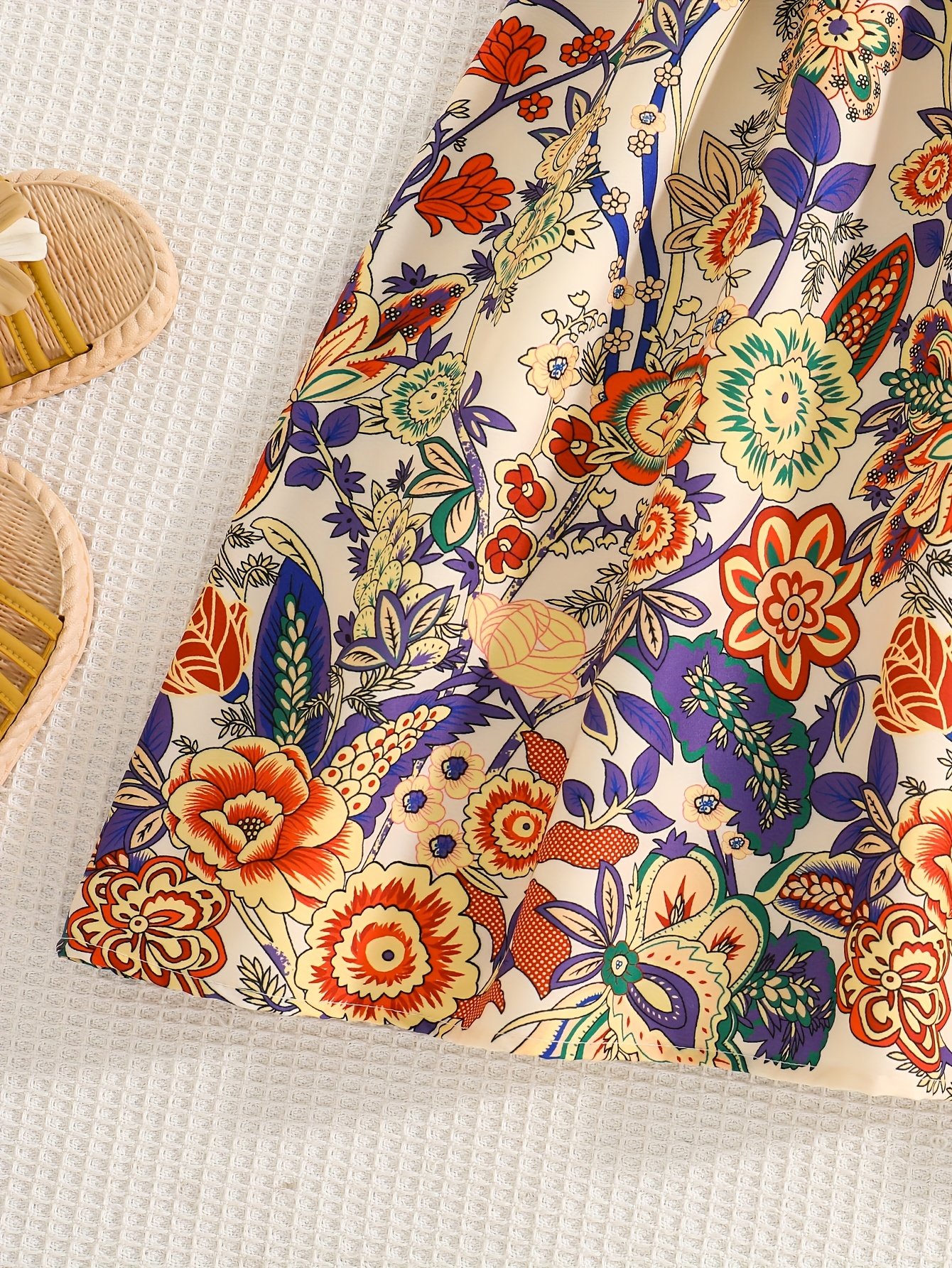 + Livraison de 12 à 17 joursCoupe ample, tissu non extensible, fleurs vives rouges, oranges, bleues et vertes, parfaite pour le printemps/automne, robes mignonnes