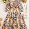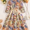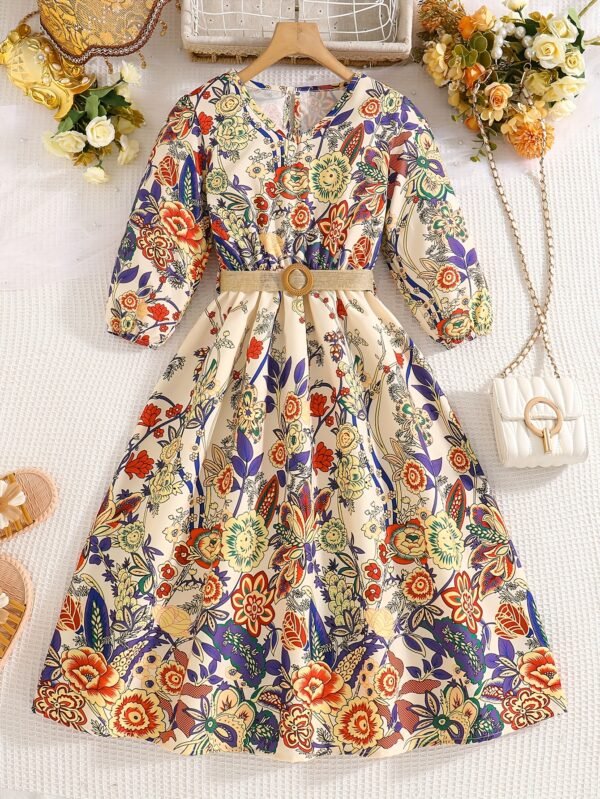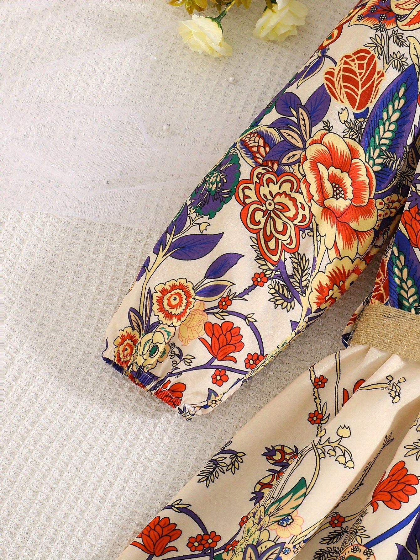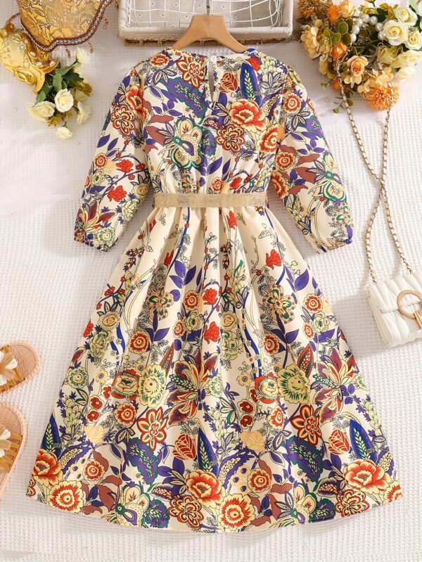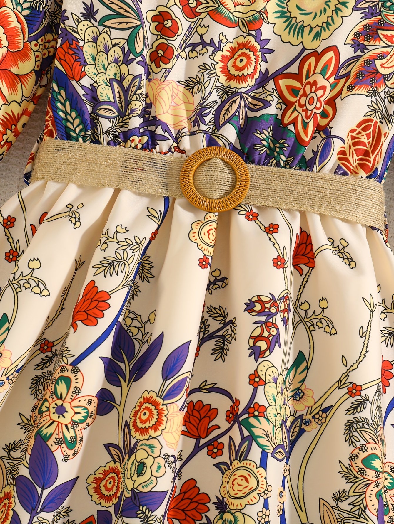 Robe élégante à manches longues avec imprimé floral et ceinture