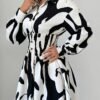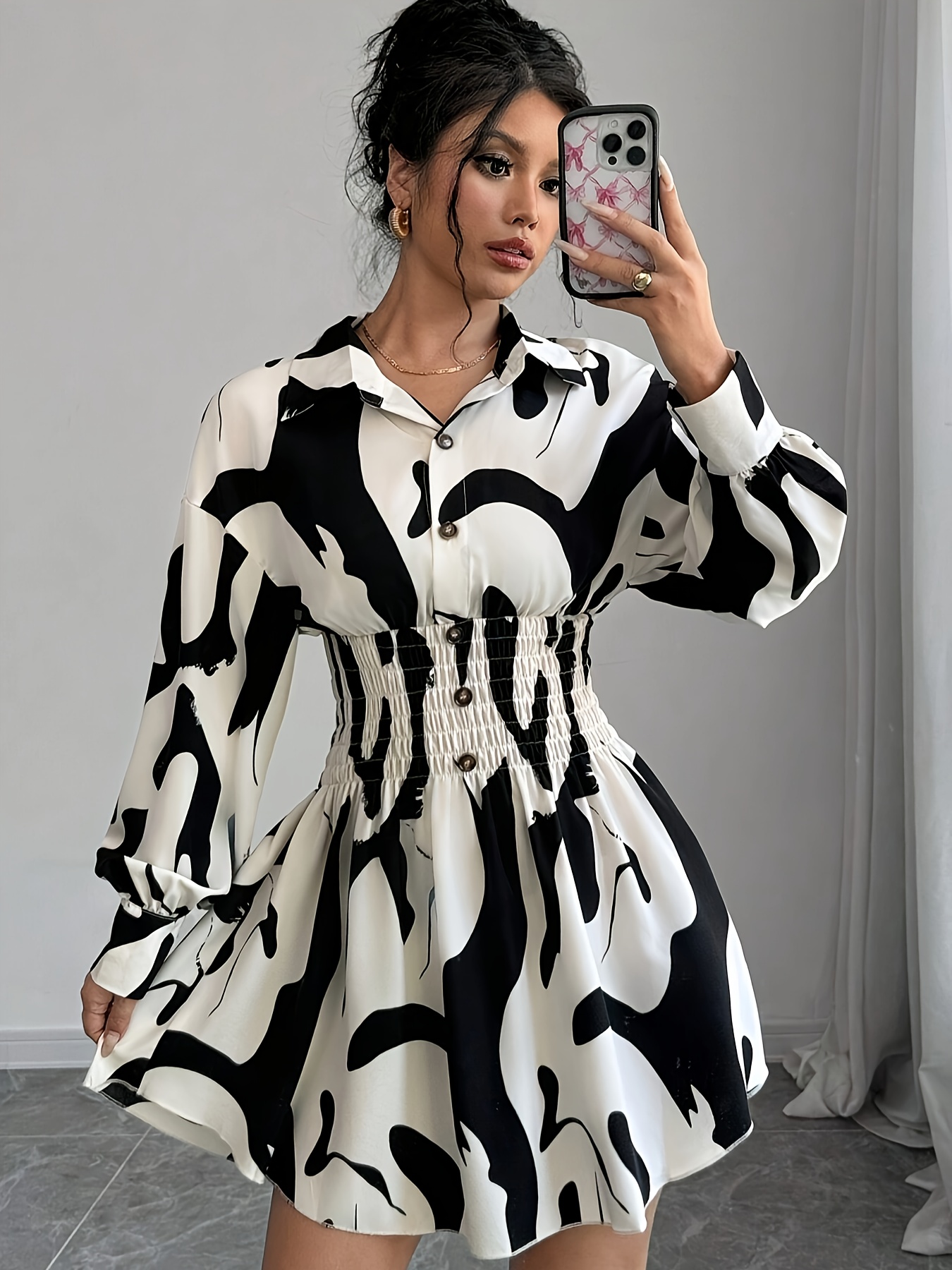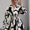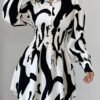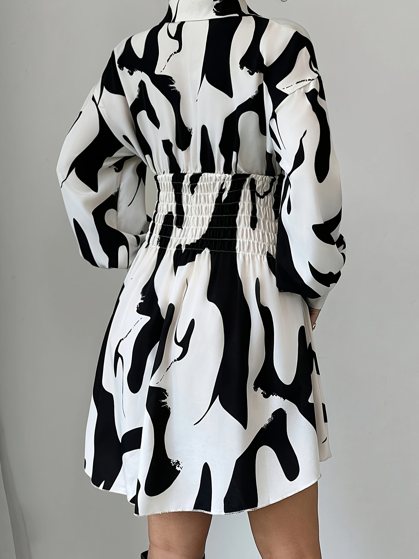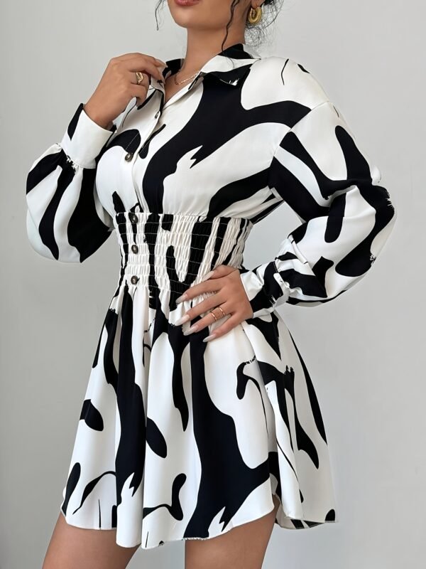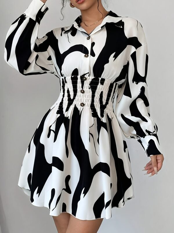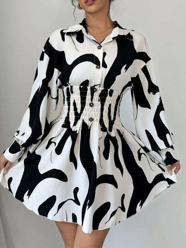 Robe élégante à smock avec boutonnage noir et blanc sur tout le corps