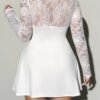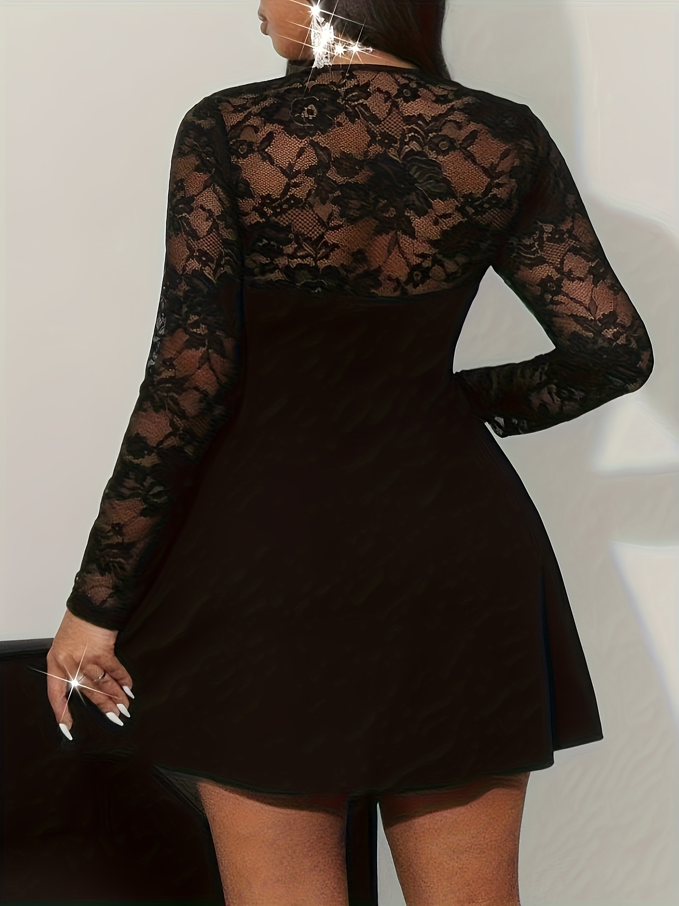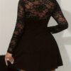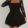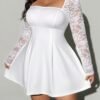Robe élégante pour femme grande taille en uni avec dentelle contrastée et col carré – Robe de cocktail ajustée pour invité de mariage, tenue de soirée semi-transparente, lavable en machine pour printemps/automne