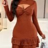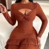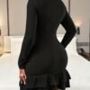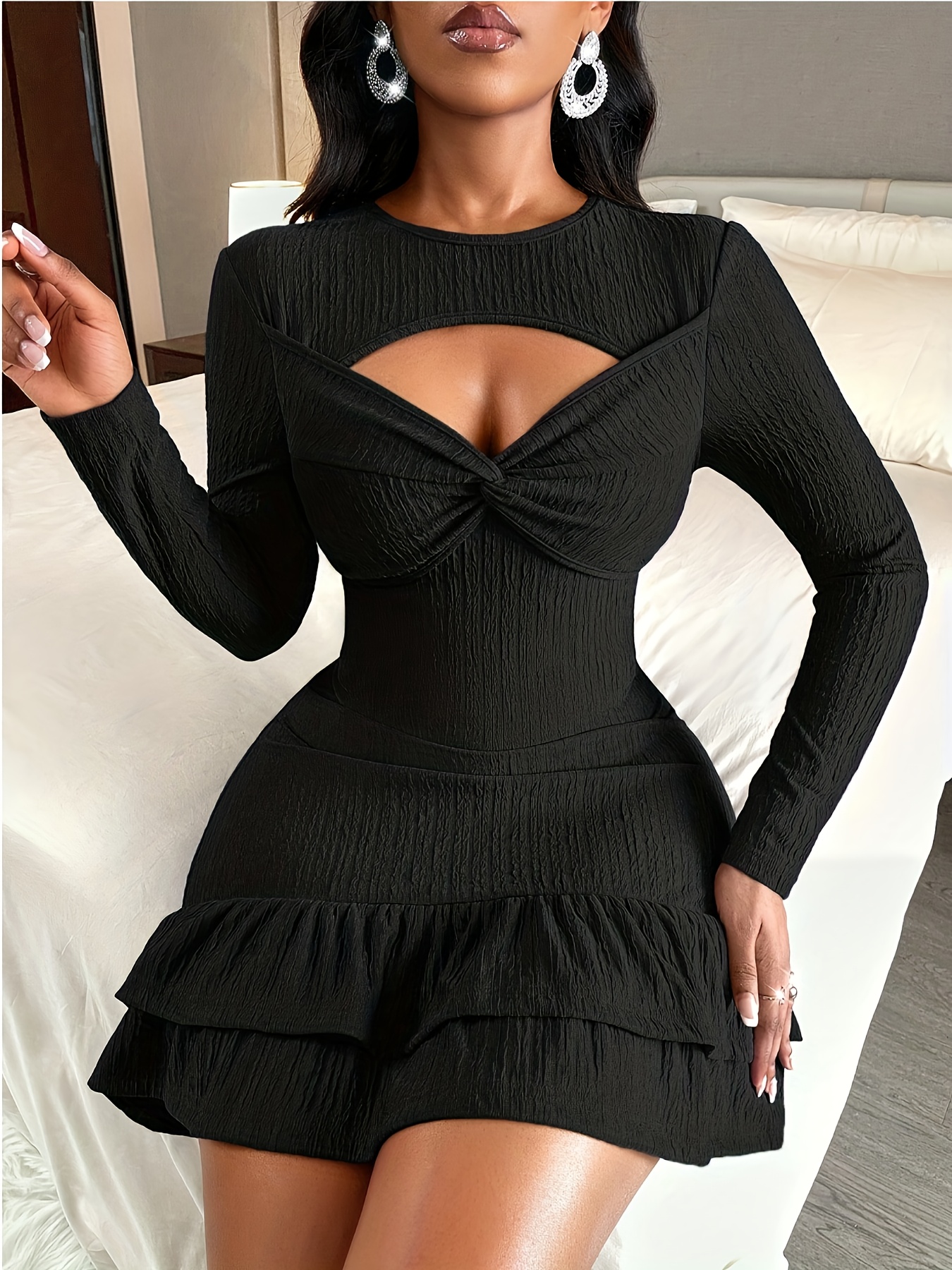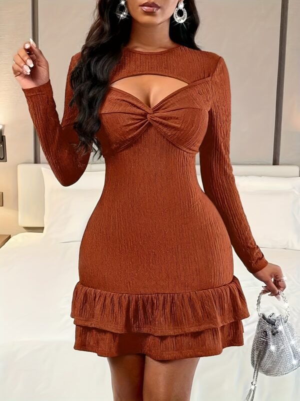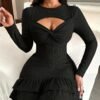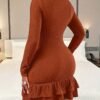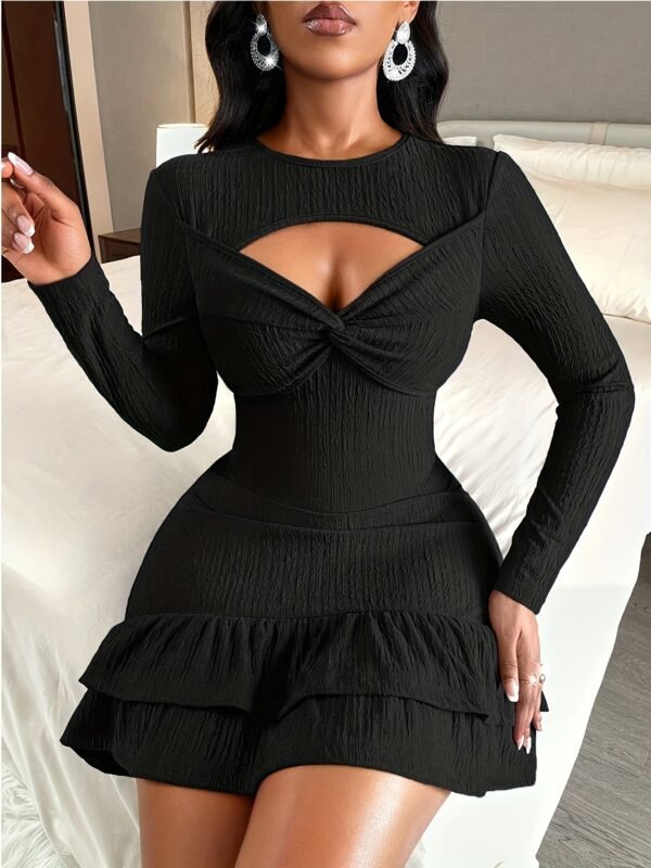 Robe Femme Manches Longues Couleur Unie avec Découpe