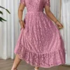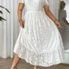 Robe Grande Taille Simple à Détails en Dentelle Élégante pour Femme, Idéale pour Vacances ou Soirée, Jupe Longue sans Ceinture