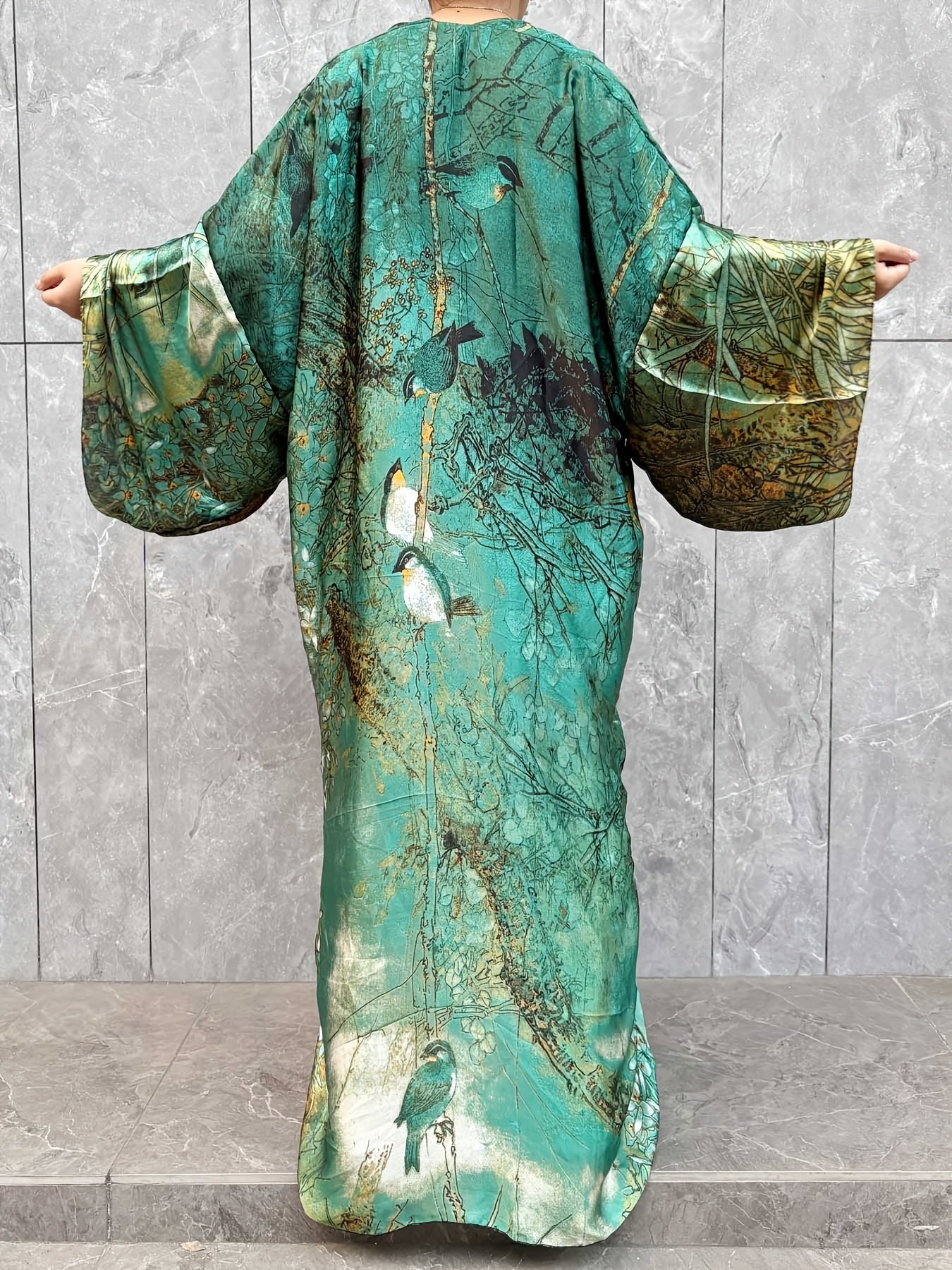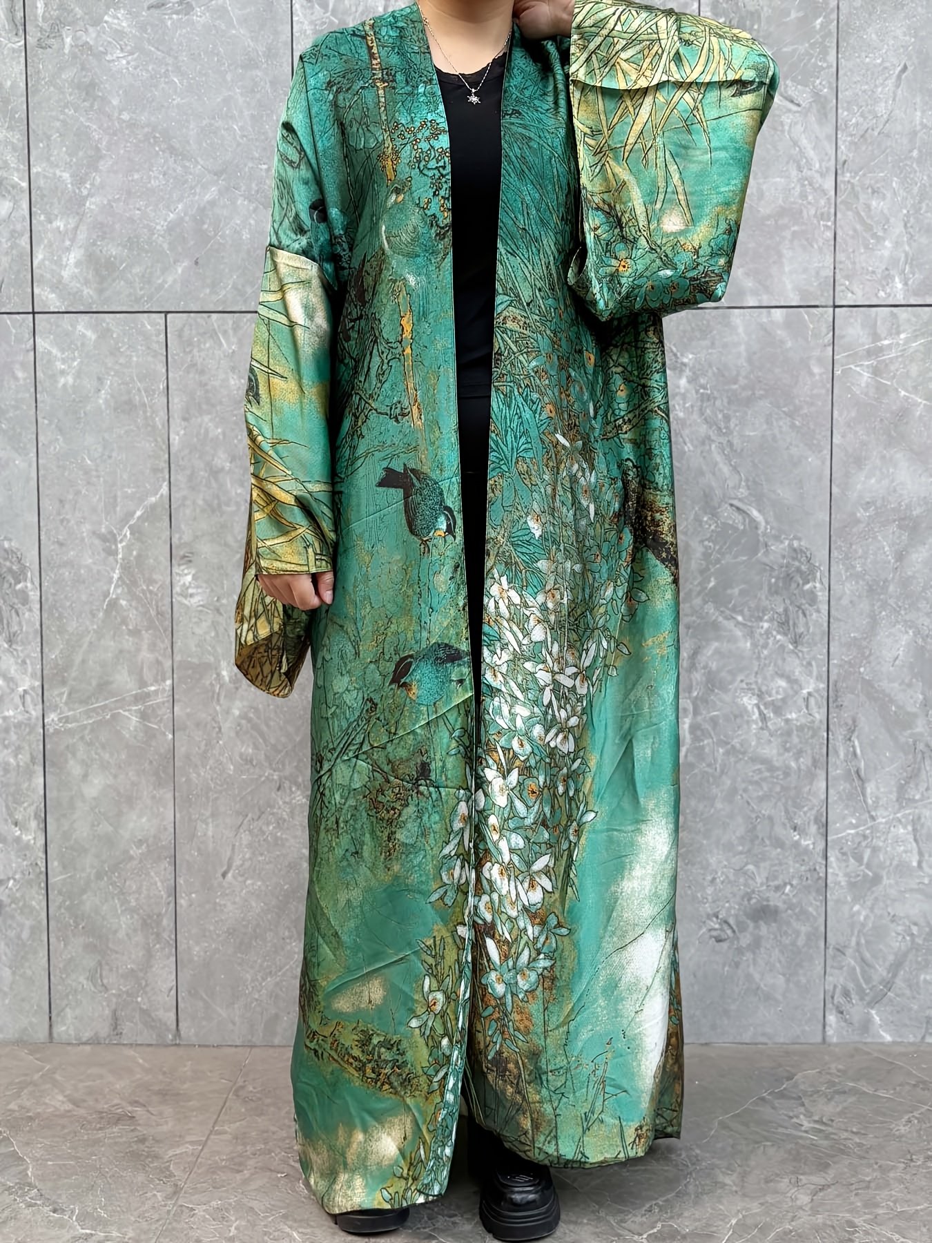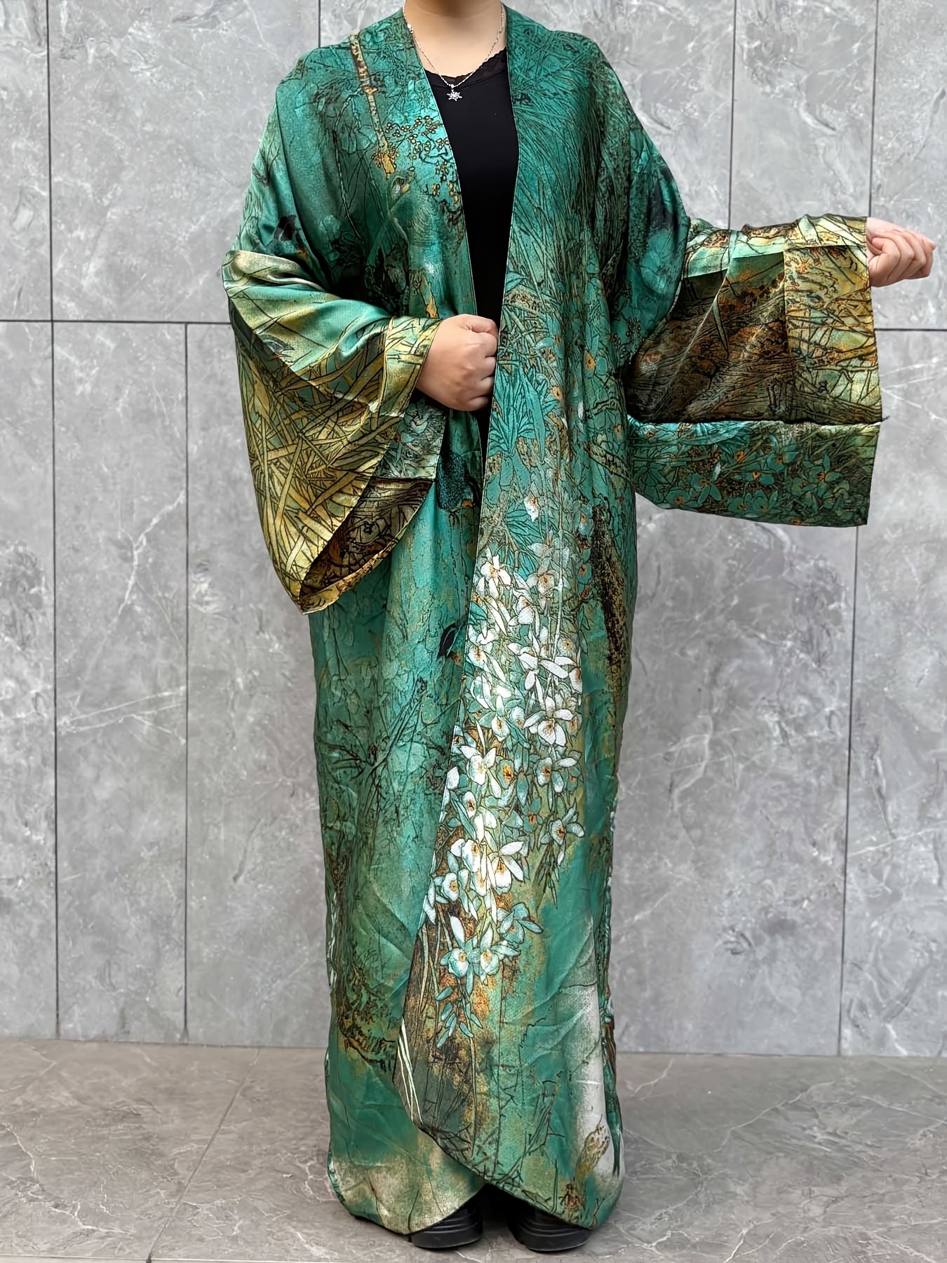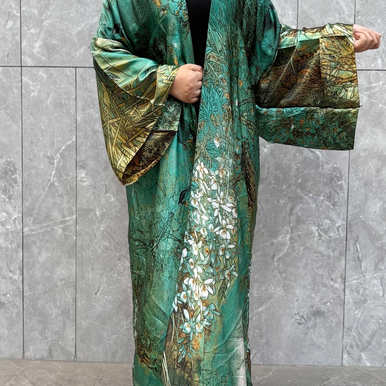 Robe Kimono Bohème à Manches Longues, Taille Grande, Nouvelle Collection 2026, Jupe Cardigan Plage en Fibre de Polyester, Printemps, Été, Automne, Robe Ample pour Moyen-Orient, Imprimé Positionné