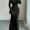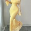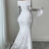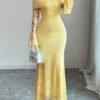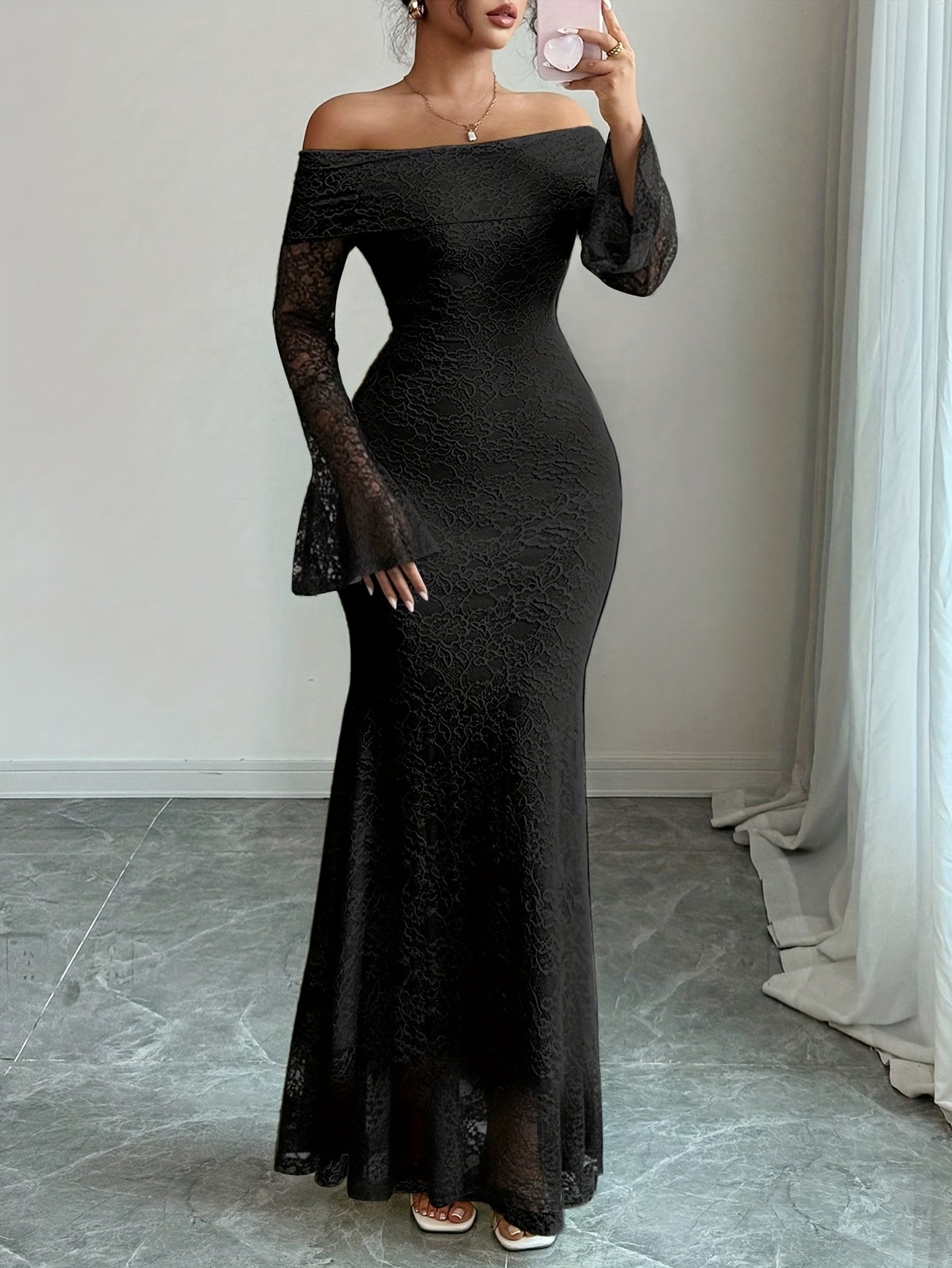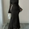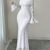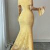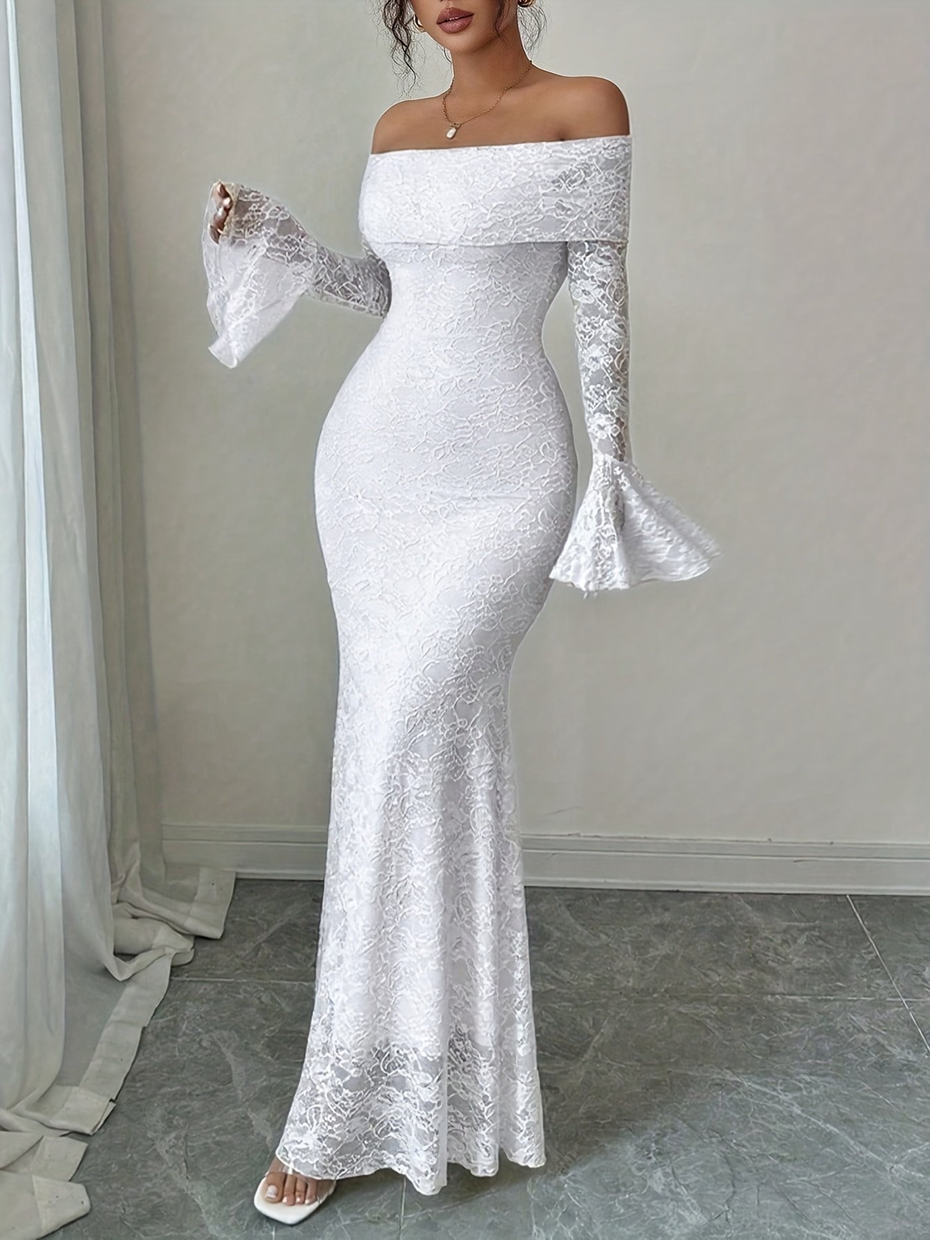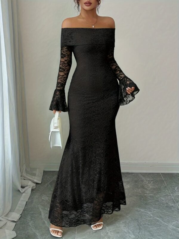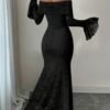 Robe longue à épaules dénudées en dentelle Manches cloche sexy