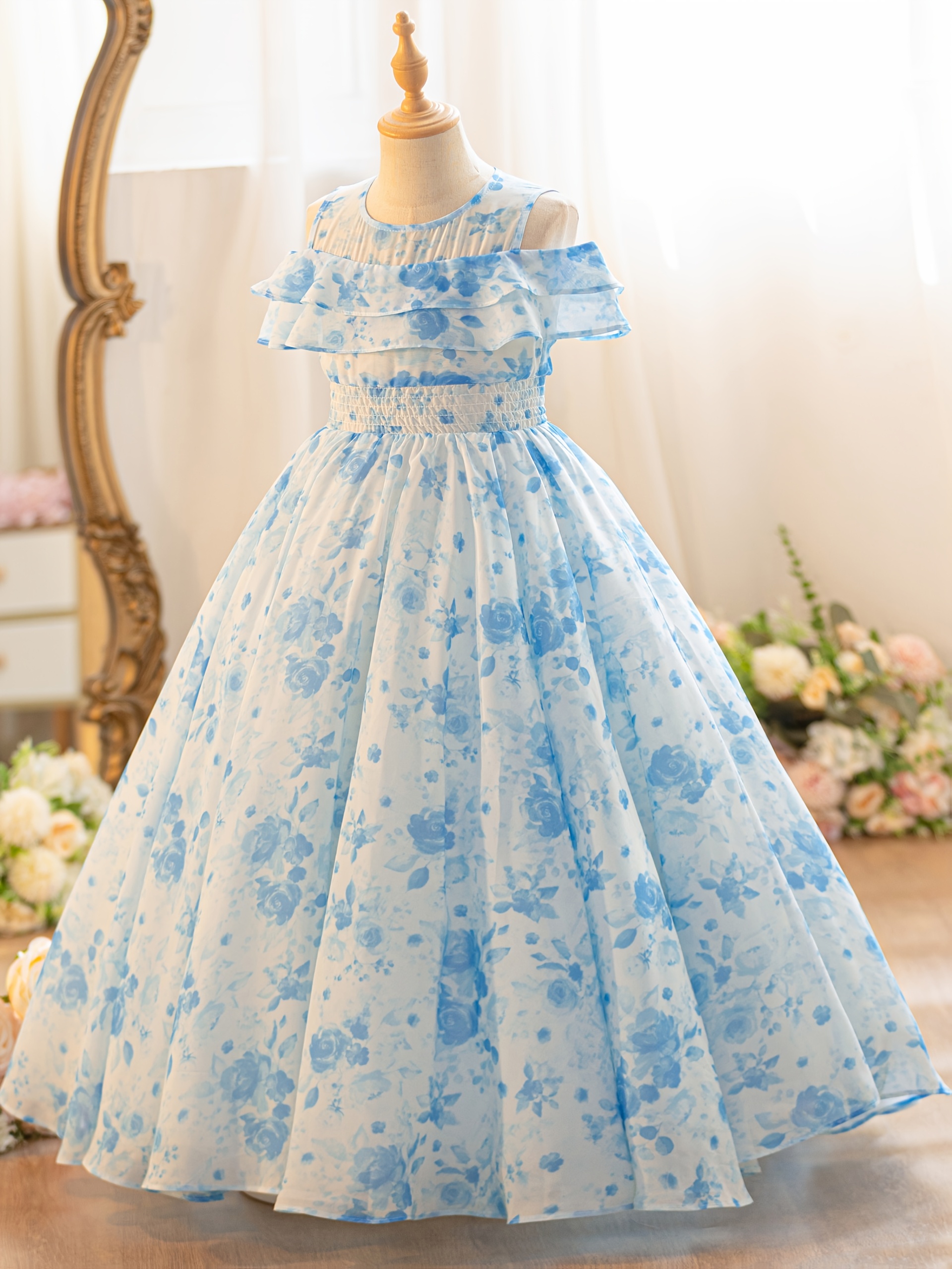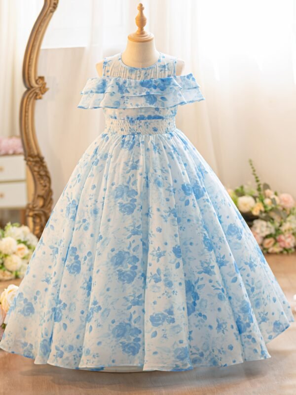 Robe Longue Chiffon Imprimé Rose pour Filles