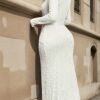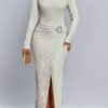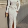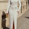 2 avis pour Robe longue d’automne-hiver à plis, fentes latérales, col rond et boutons métalliques.
