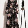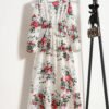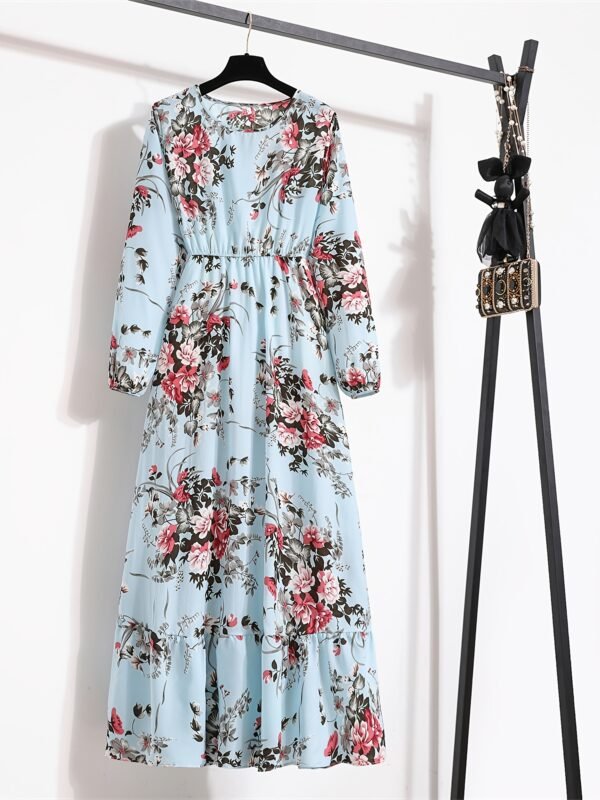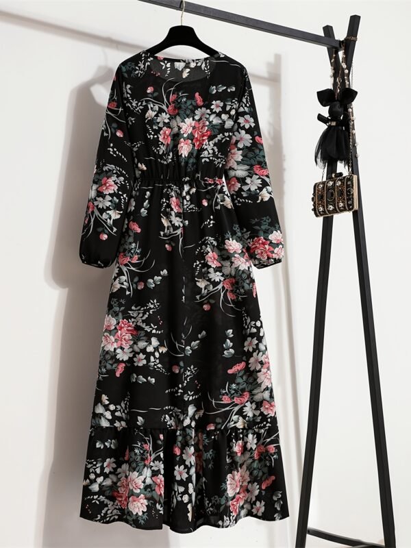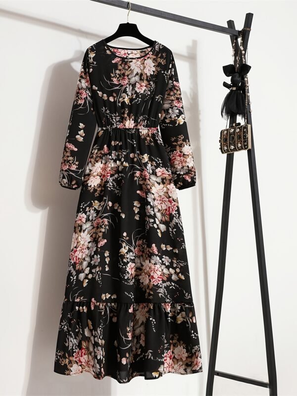 Robe Longue Décontractée à Imprimé Bohème avec Ourlet à Volants, Col Rond, Taille Élastique et Coupe A