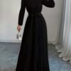 Robe minimaliste à manches longues pour femmes avec une ceinture et une longueur ample