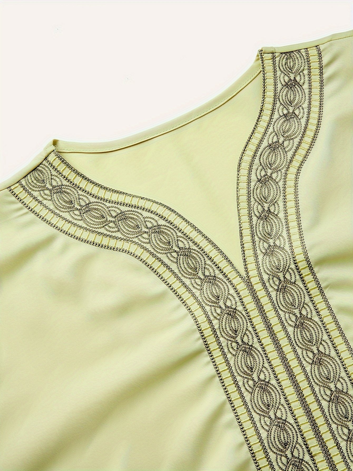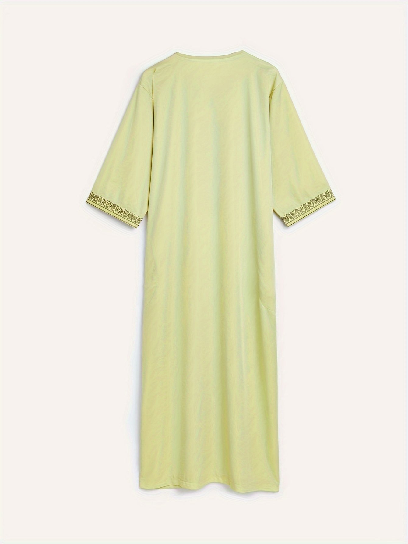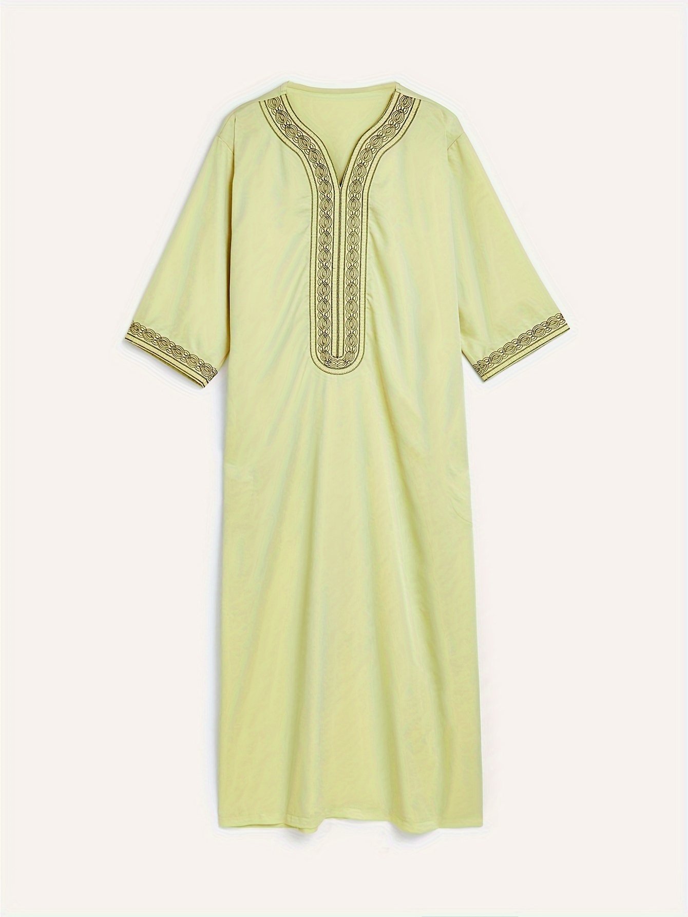 Robe pour homme marocaine style gandula à motifs brodés – Manches courtes – Vêtement pour l'Aïd al-Fitr – Pour activités culturelles traditionnelles