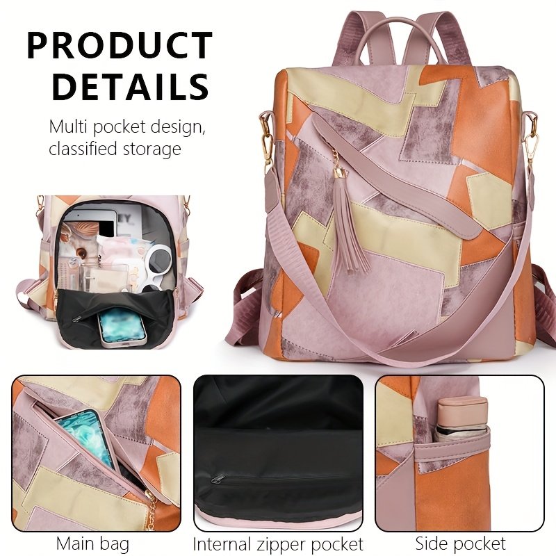 Sac à Dos Élégant et Léger en Patchwork Antivol pour Femmes & Hommes – Grand Sac à Dos de Voyage avec Bretelles Amovibles Ajustables, Multiples Compartiments, Fermeture Éclair & Doublure en Polyester Résistant, Sacoche Décontractée pour l’École, le Travail, les Sorties, Sac à Dos d’Écolier | Sac à Dos Chic | Sac à Dos pour Voyages