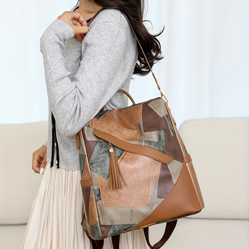 Sac à Dos Élégant et Léger en Patchwork Antivol