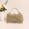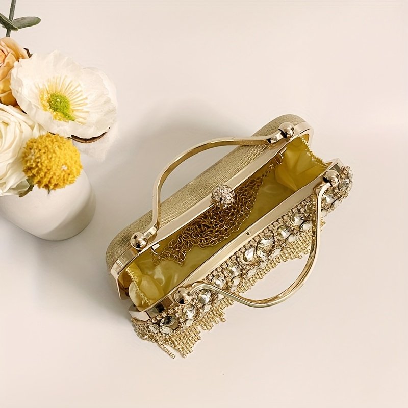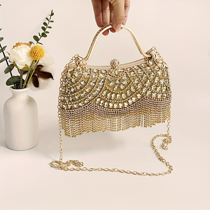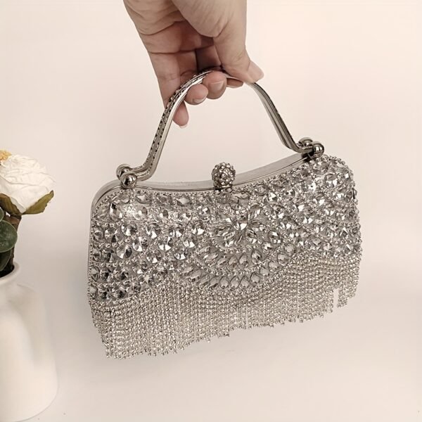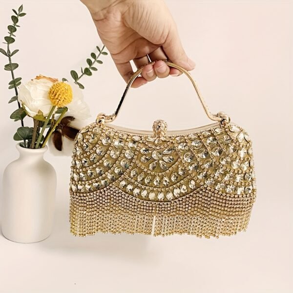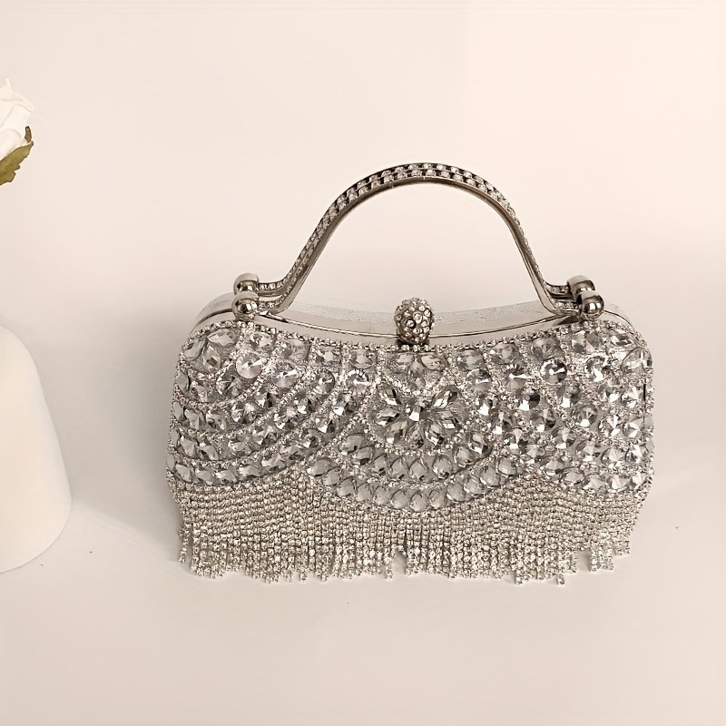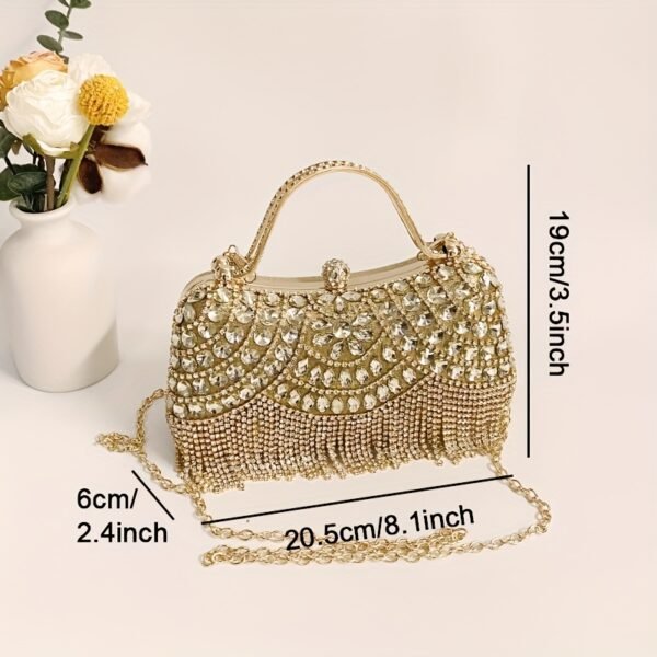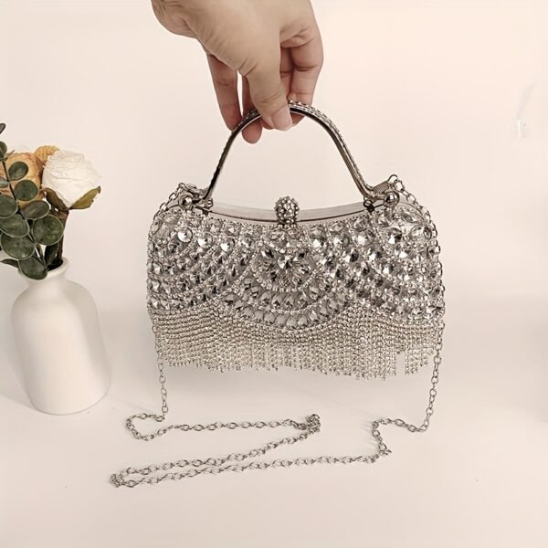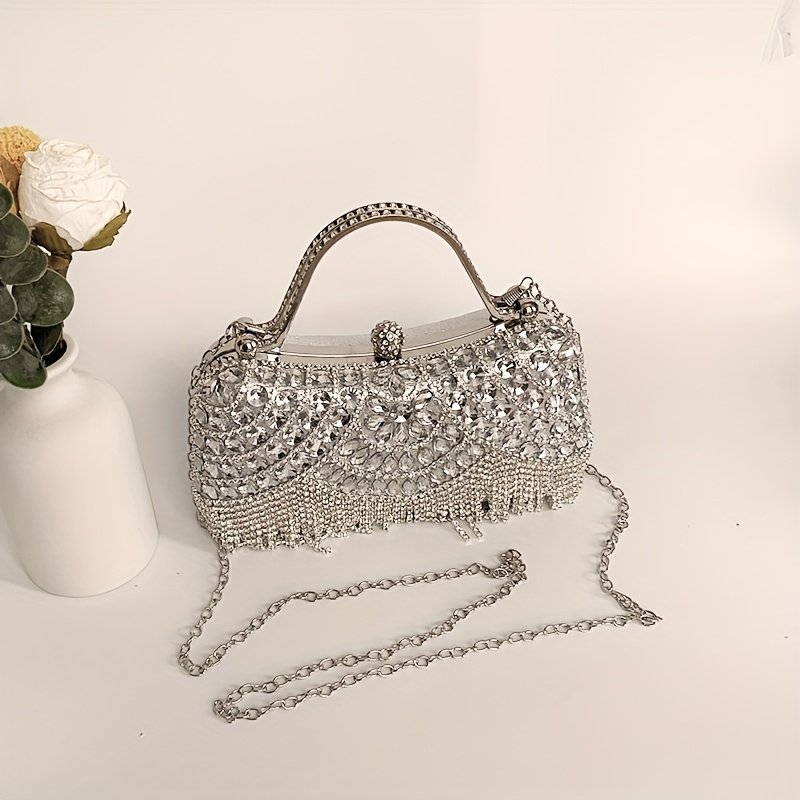 Sac à Main Élégant pour Femme avec Pompon, Sac Bandoulière en Verre Brillant et Strass pour Soirée