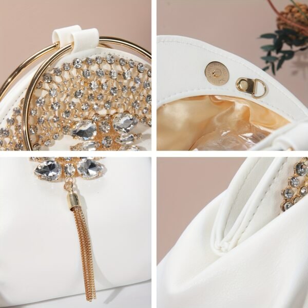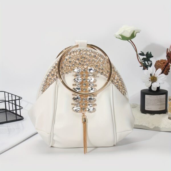 + Livraison de 12 à 17 joursSac d’Épaule Luxueux pour Mariage, Soirée ou Bal des Promos – Quincaillerie Dorée, Détails Frangés, Textile Durable & Facile à Nettoyer comme une Véritable Tissus