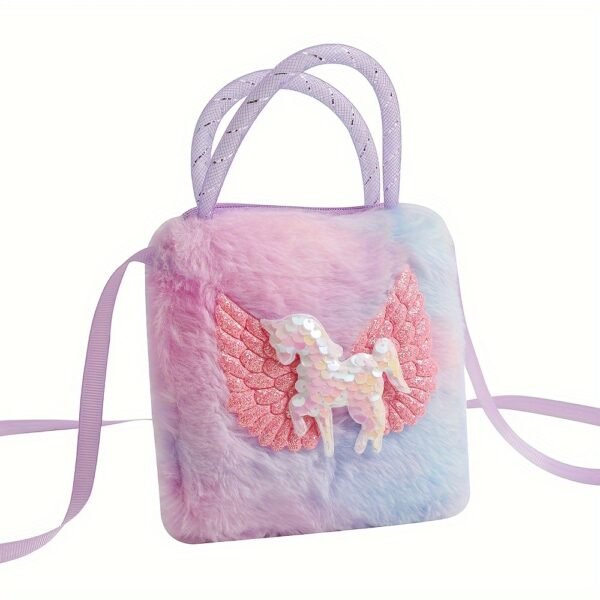 Sac à main peluche licorne à paillettes – Porte-monnaie en fausse fourrure cartoon – Sac à main doux arc-en-ciel pour femmes