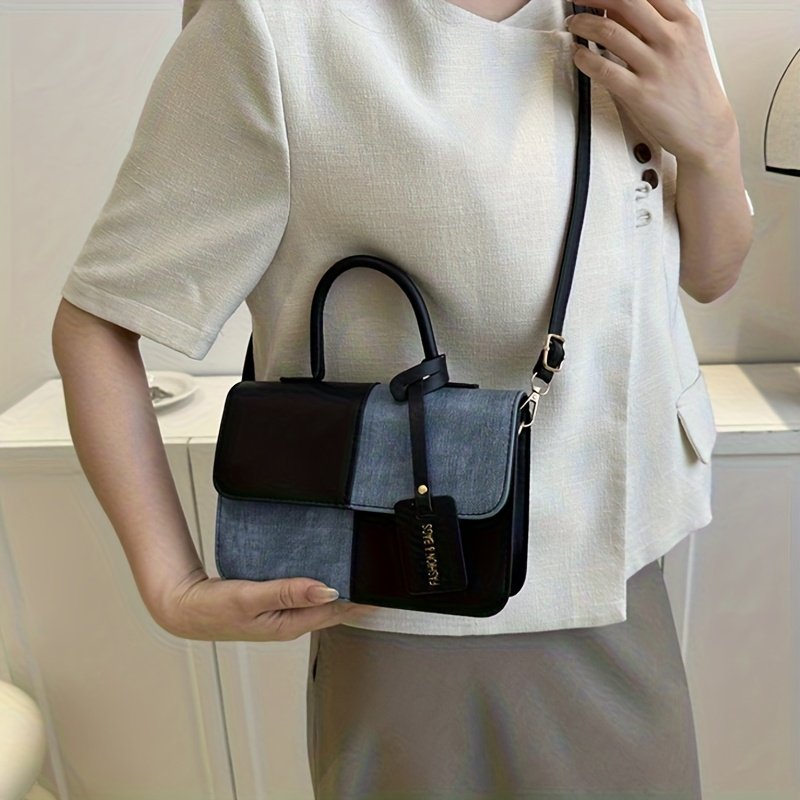 Sac à main pour femme texturé patchwork tendance | Petit sac carré bandoulière pour les trajets quotidiens