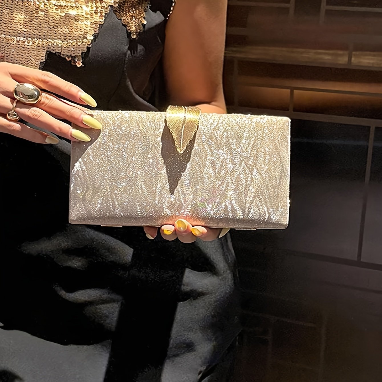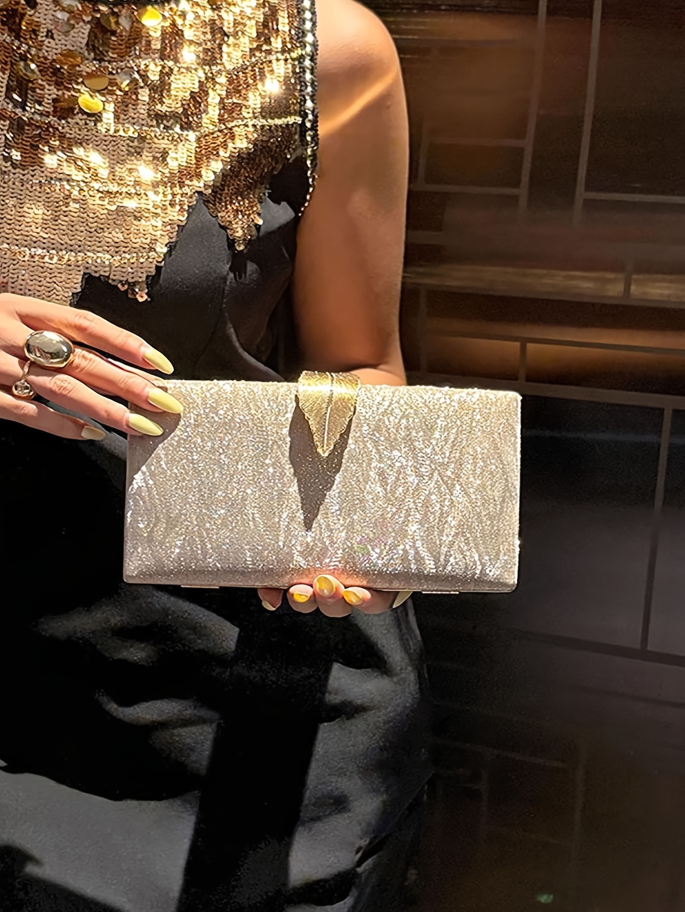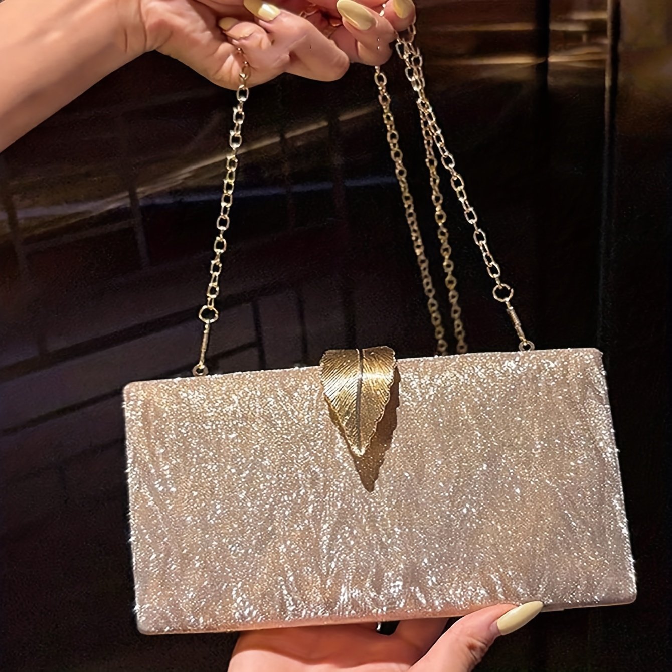 Sac de soirée de luxe bandoulière avec ferrures dorées, construction en tissu
