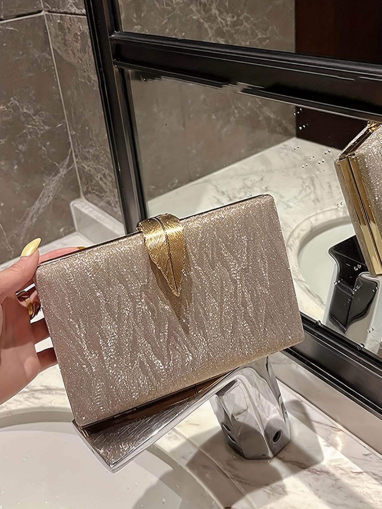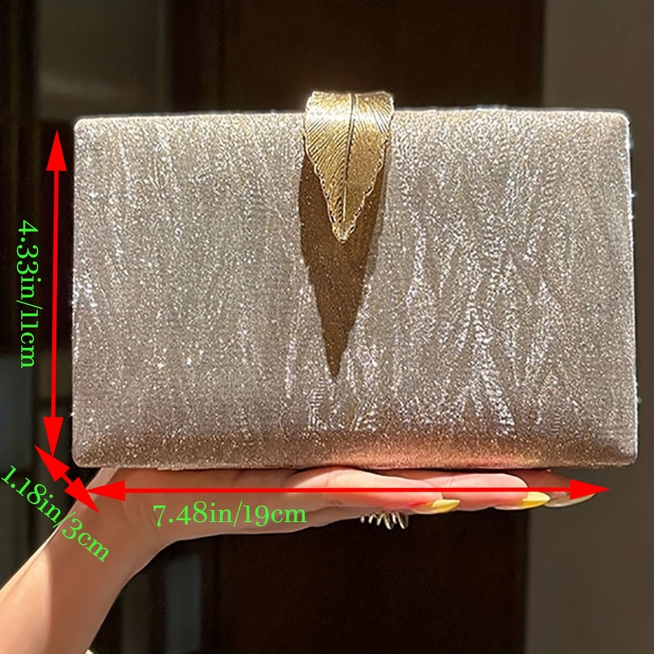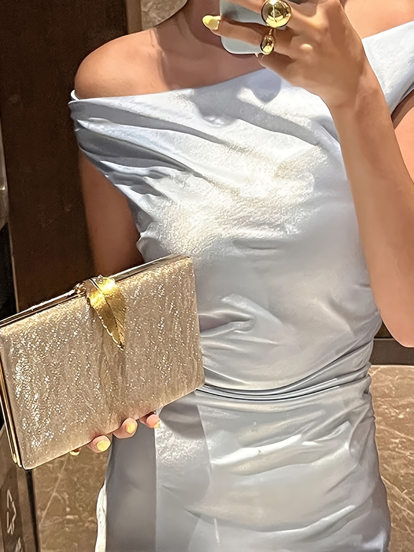 Sac de soirée de luxe bandoulière avec ferrures dorées, construction en tissu