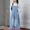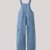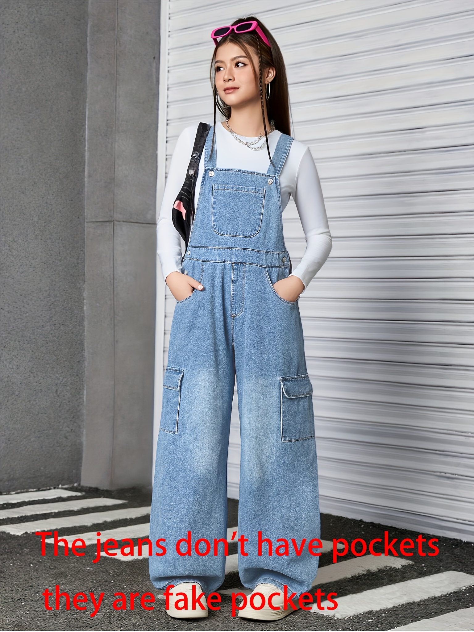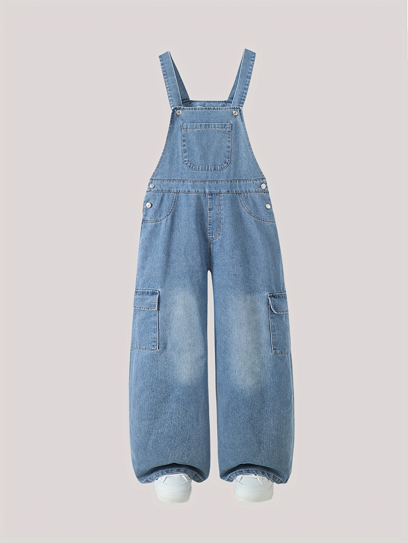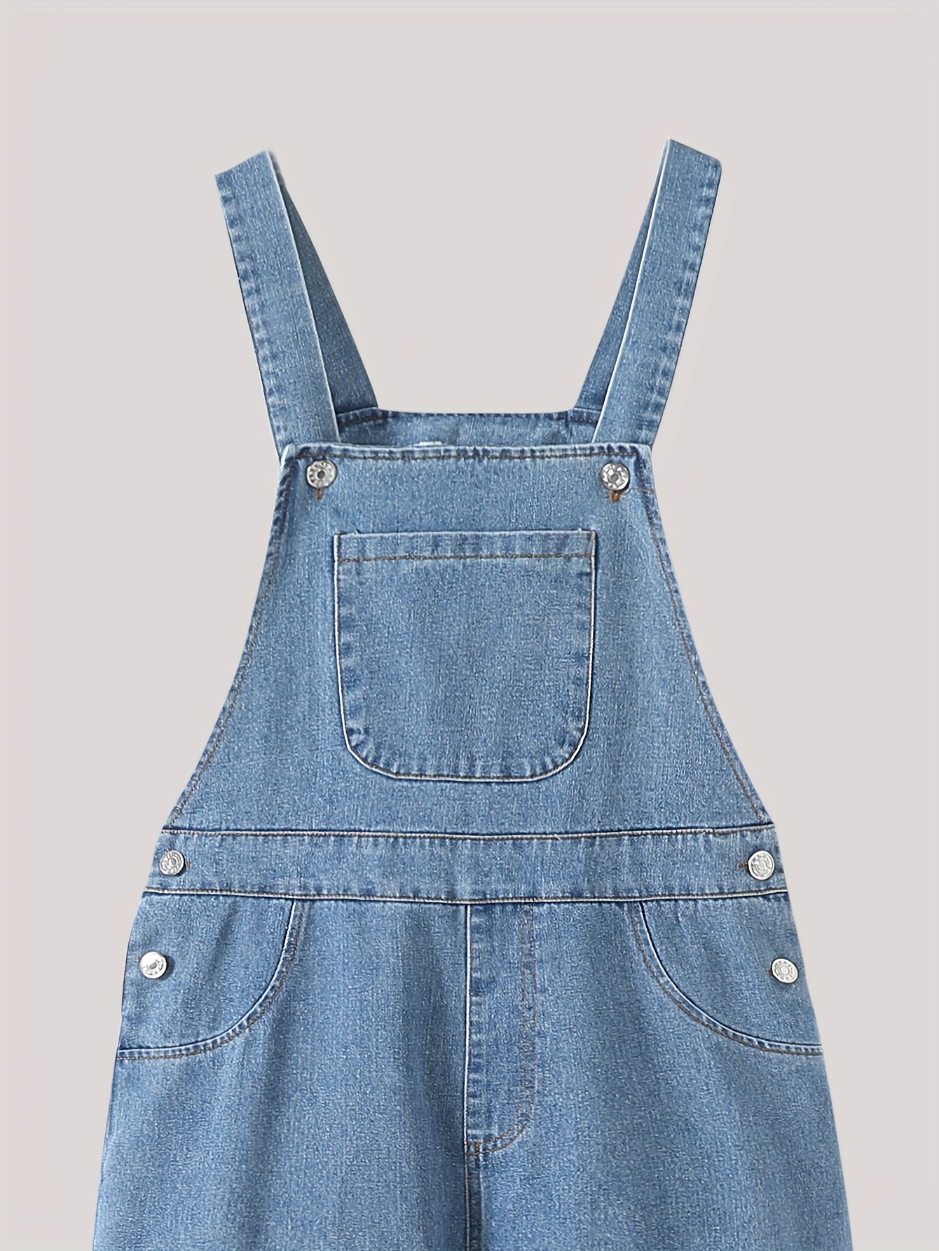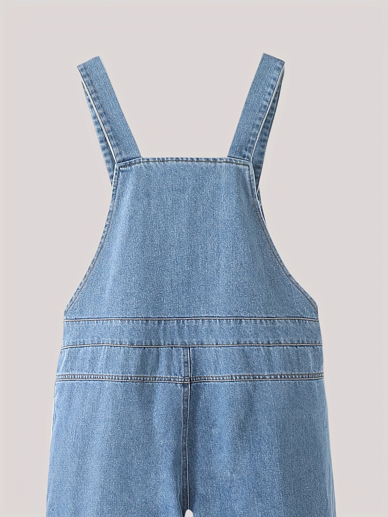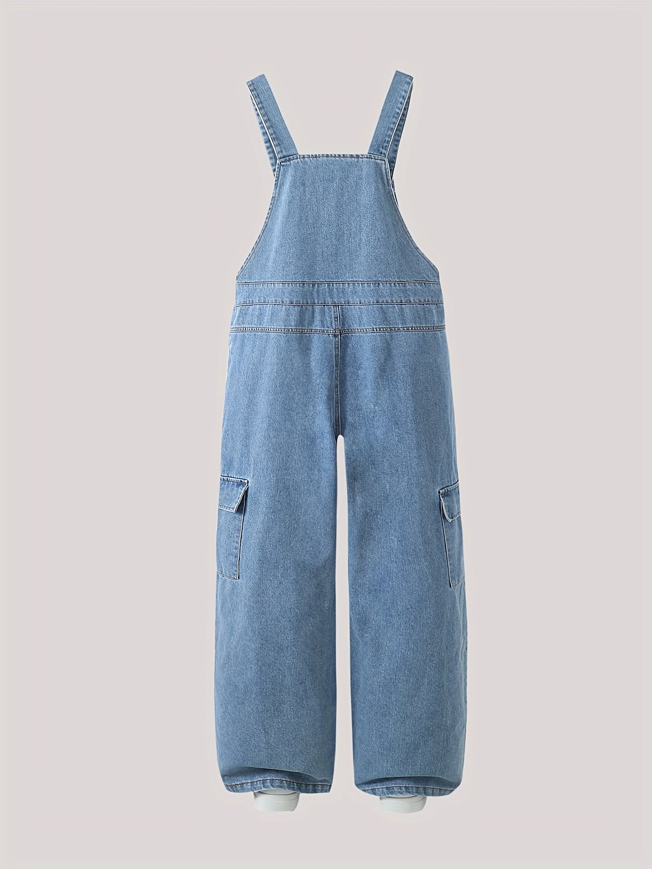 Salopette décontractée pour filles, couleur unie, boutonnée, avec poche unique