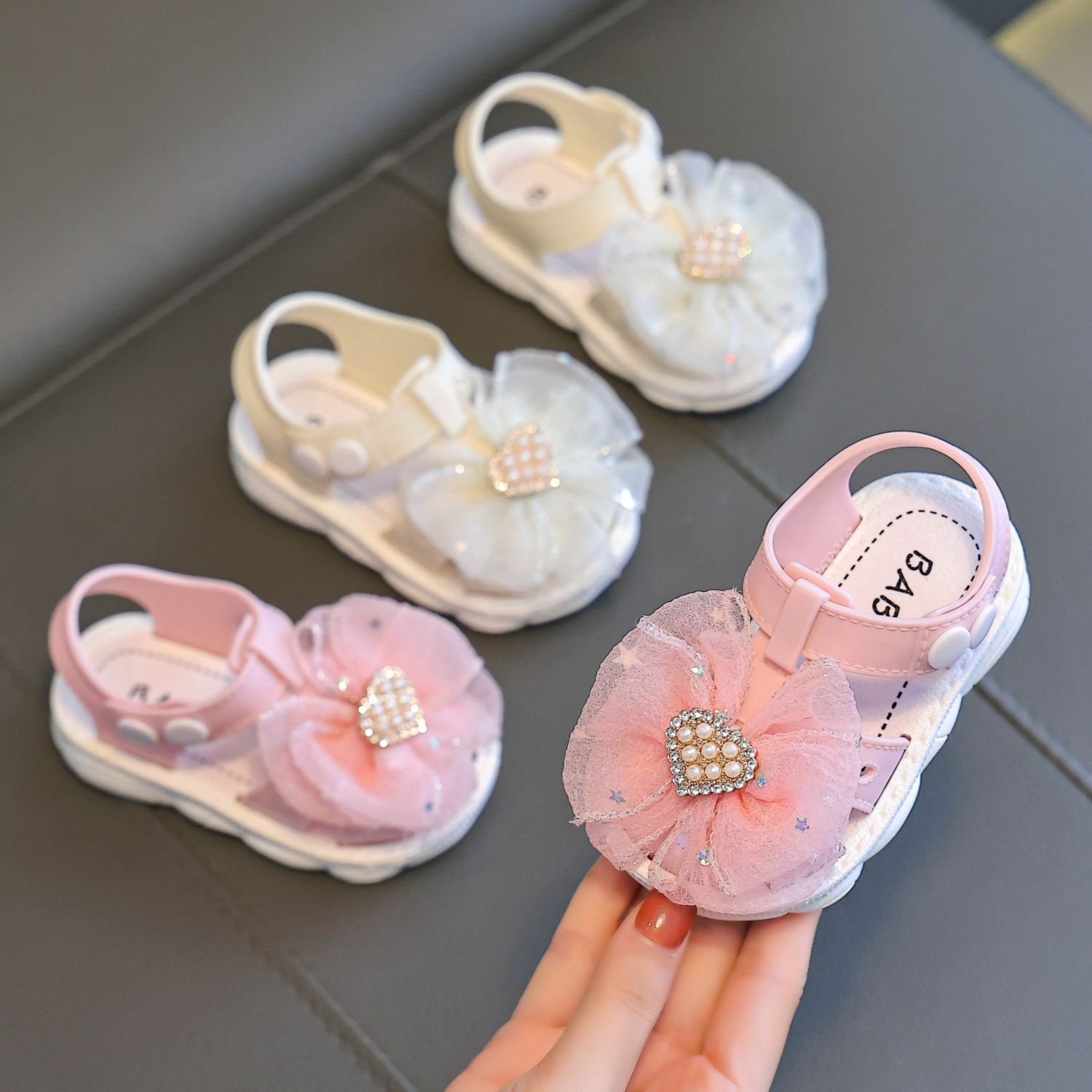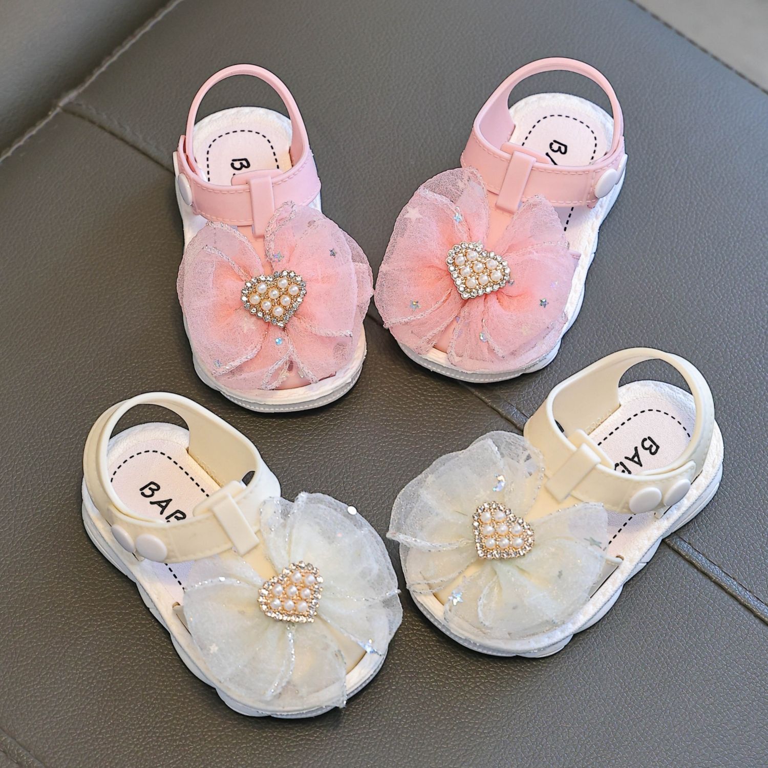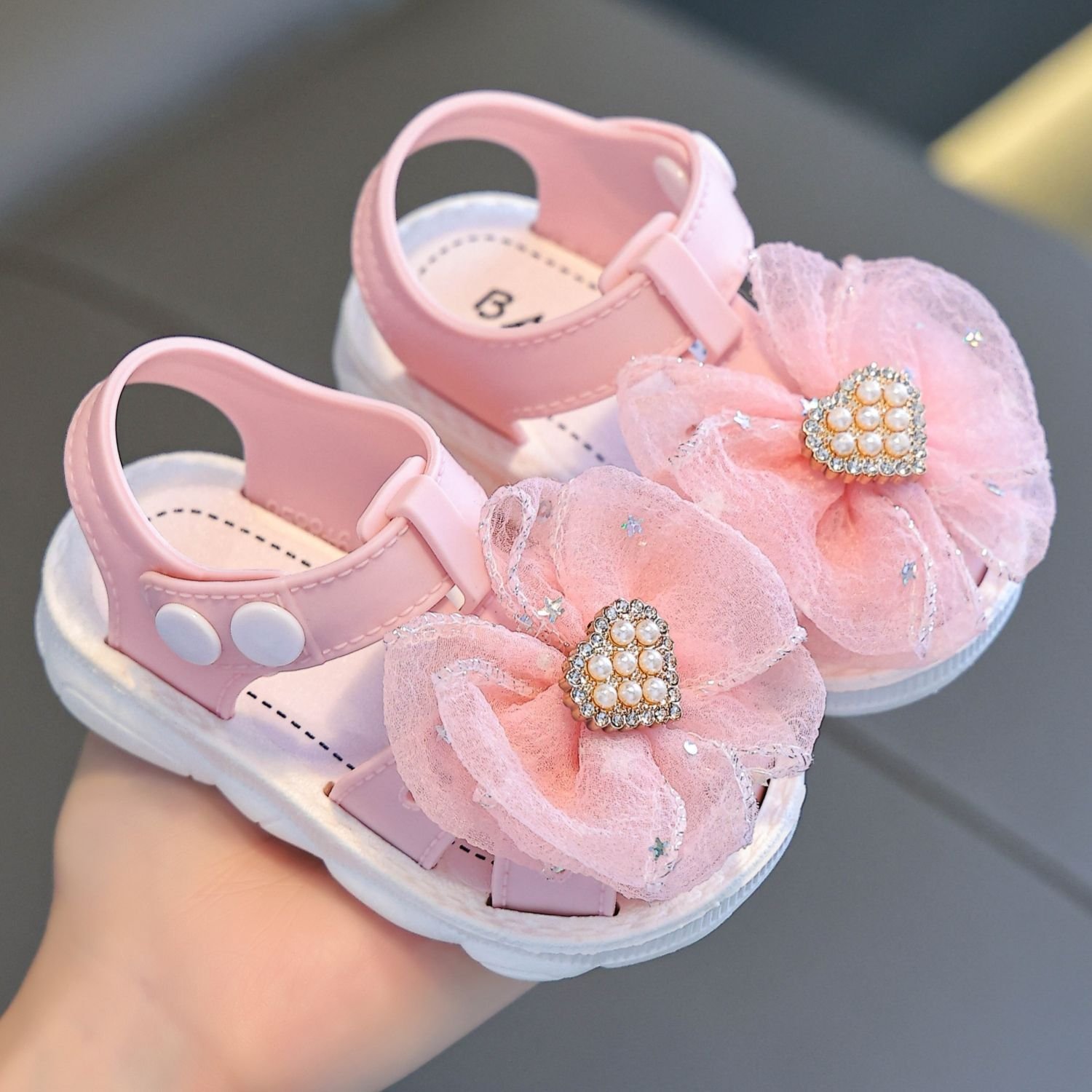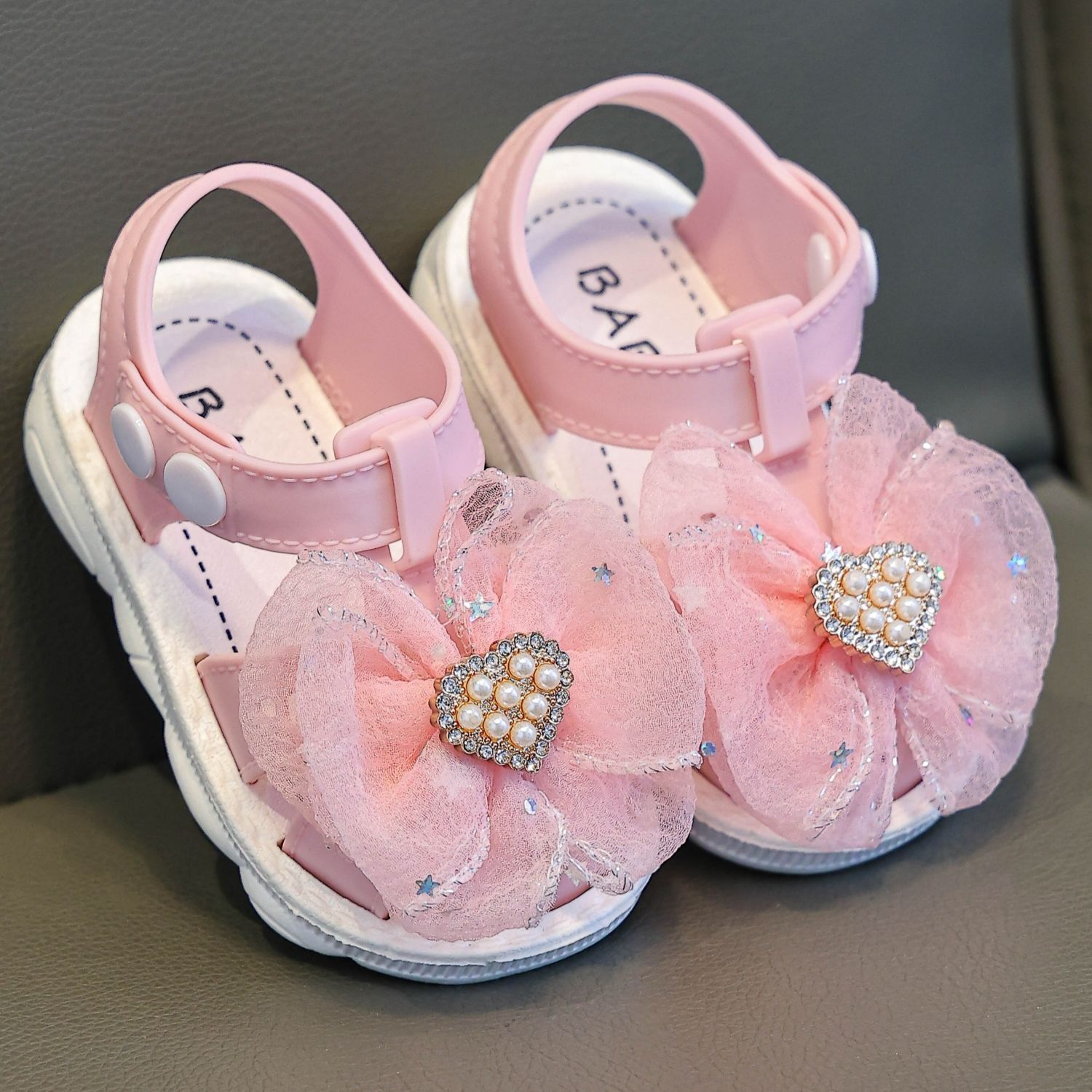 Sandales d’été pour filles, semelle souple antidérapante, chaussures enveloppantes, sandales de marche pour bébé princesse en extérieur
