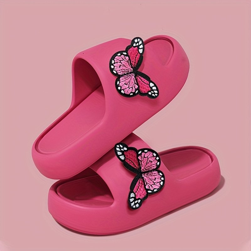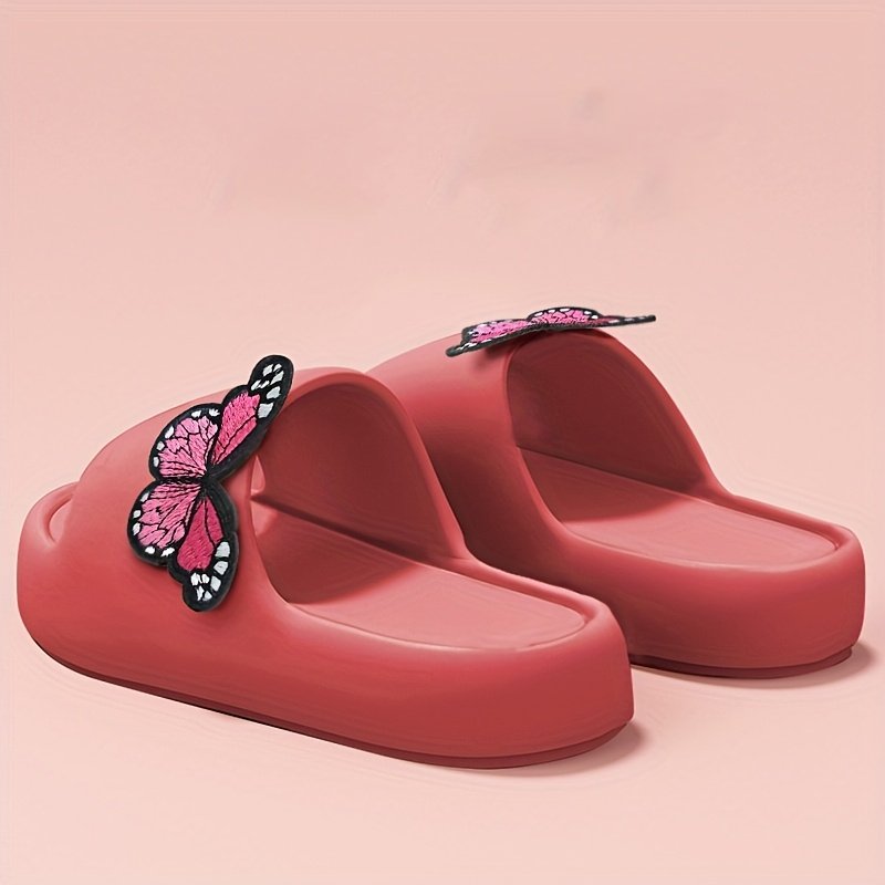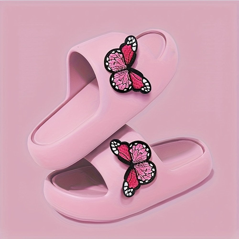 Sandales élégantes pour femmes avec un motif de papillon de dessin animé, pantoufles d'intérieur confortables en EVA léger avec une semelle antidérapante, adaptées à la maison, à la salle de bain et à la plage