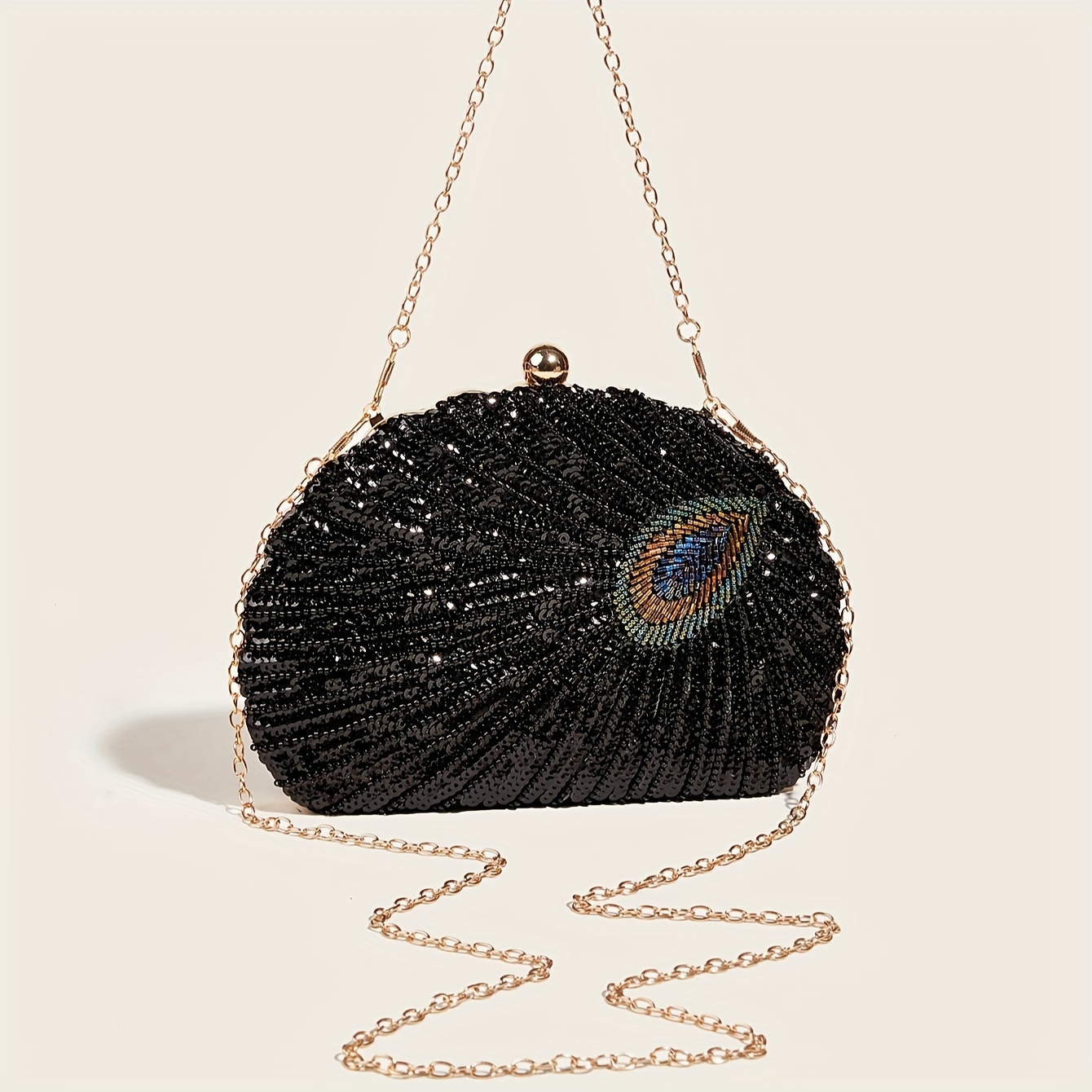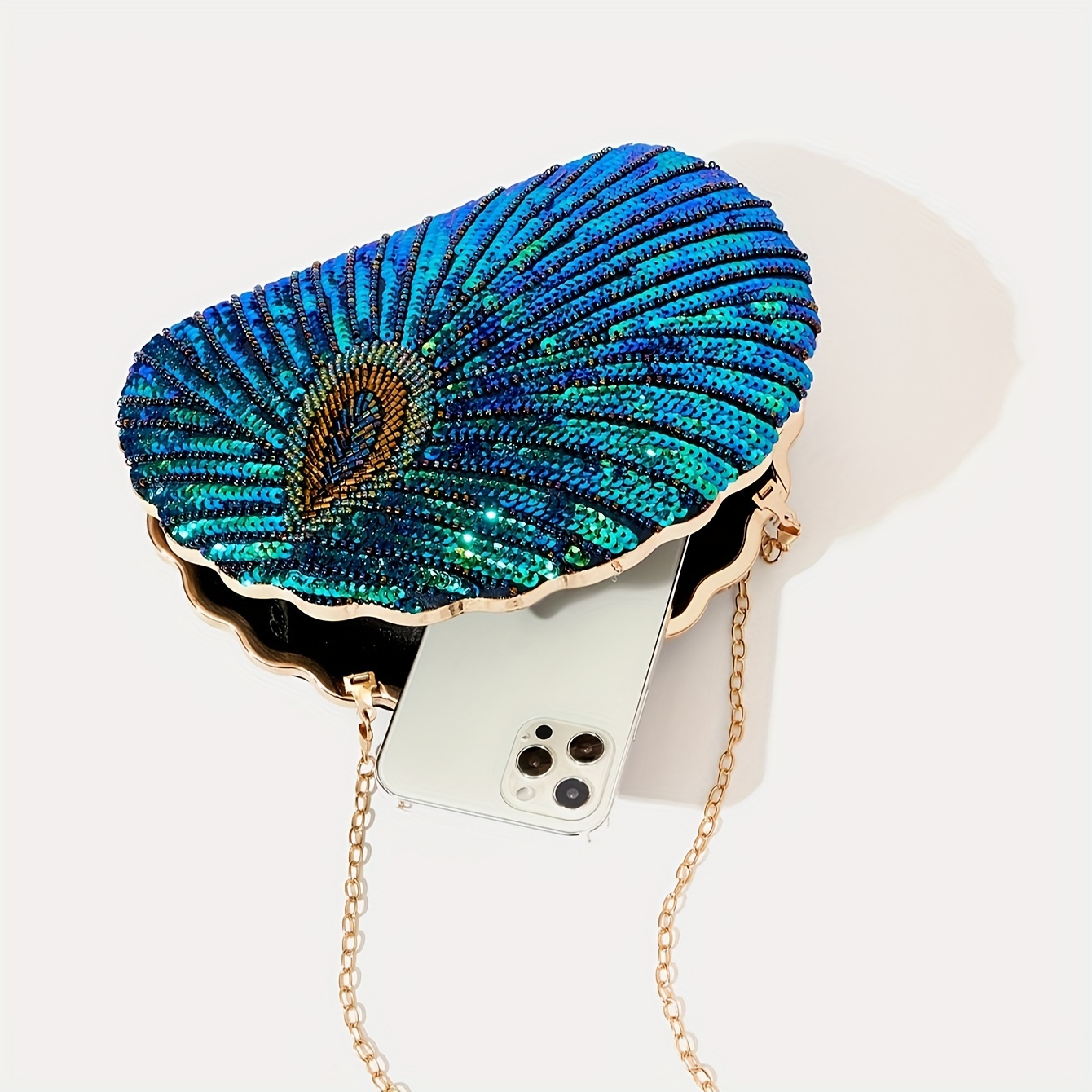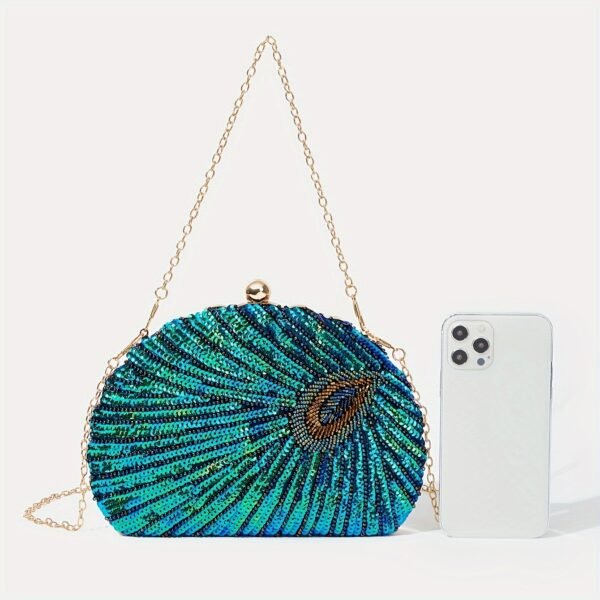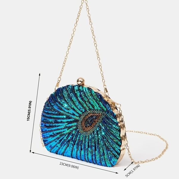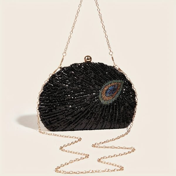 Sac de soirée élégante en plumes de paon et sequins, mariée, mariage