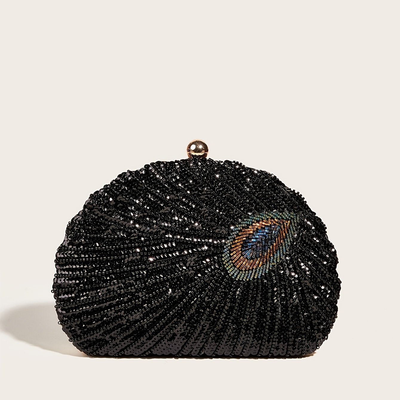 Sac de soirée élégante en plumes de paon et sequins, mariée, mariage