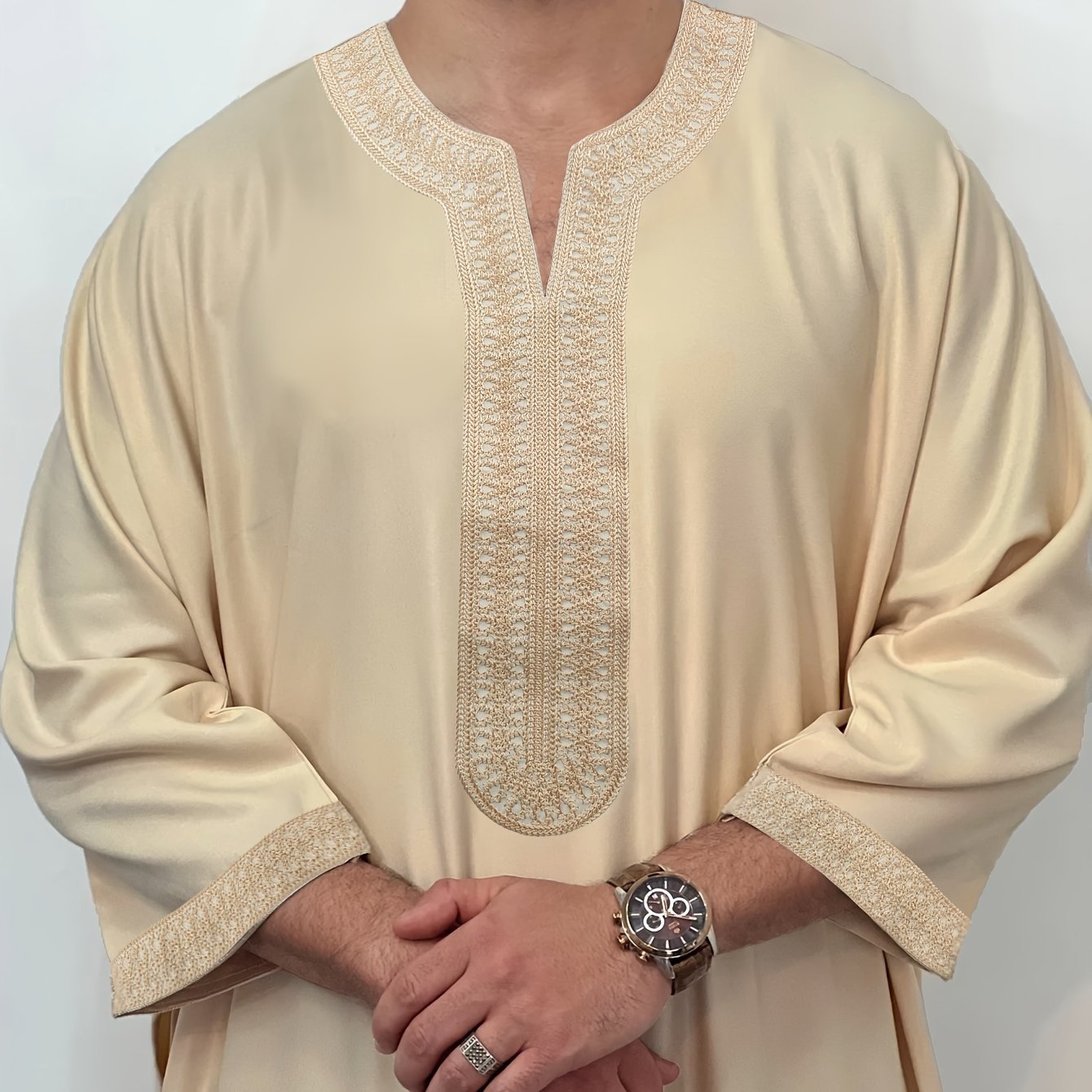 Sélection Zhiyu Robe traditionnelle brodée marocaine pour homme, Robe de mode musulmane, Vêtement traditionnel pour la fête de l'Aïd al-Fitr, Cadeau pour aîné, Cadeau pour