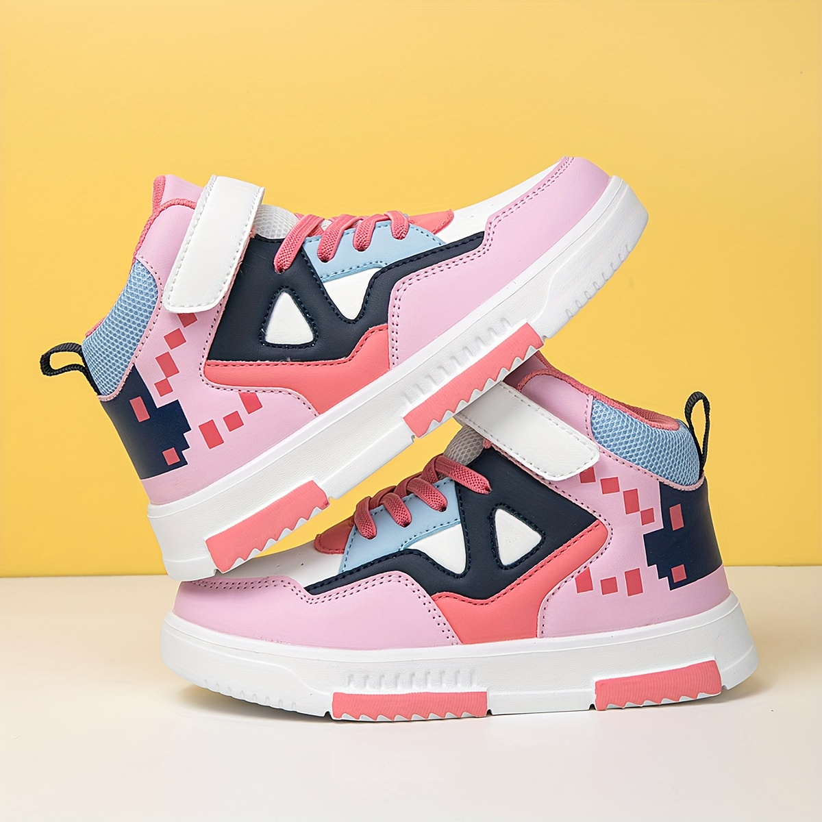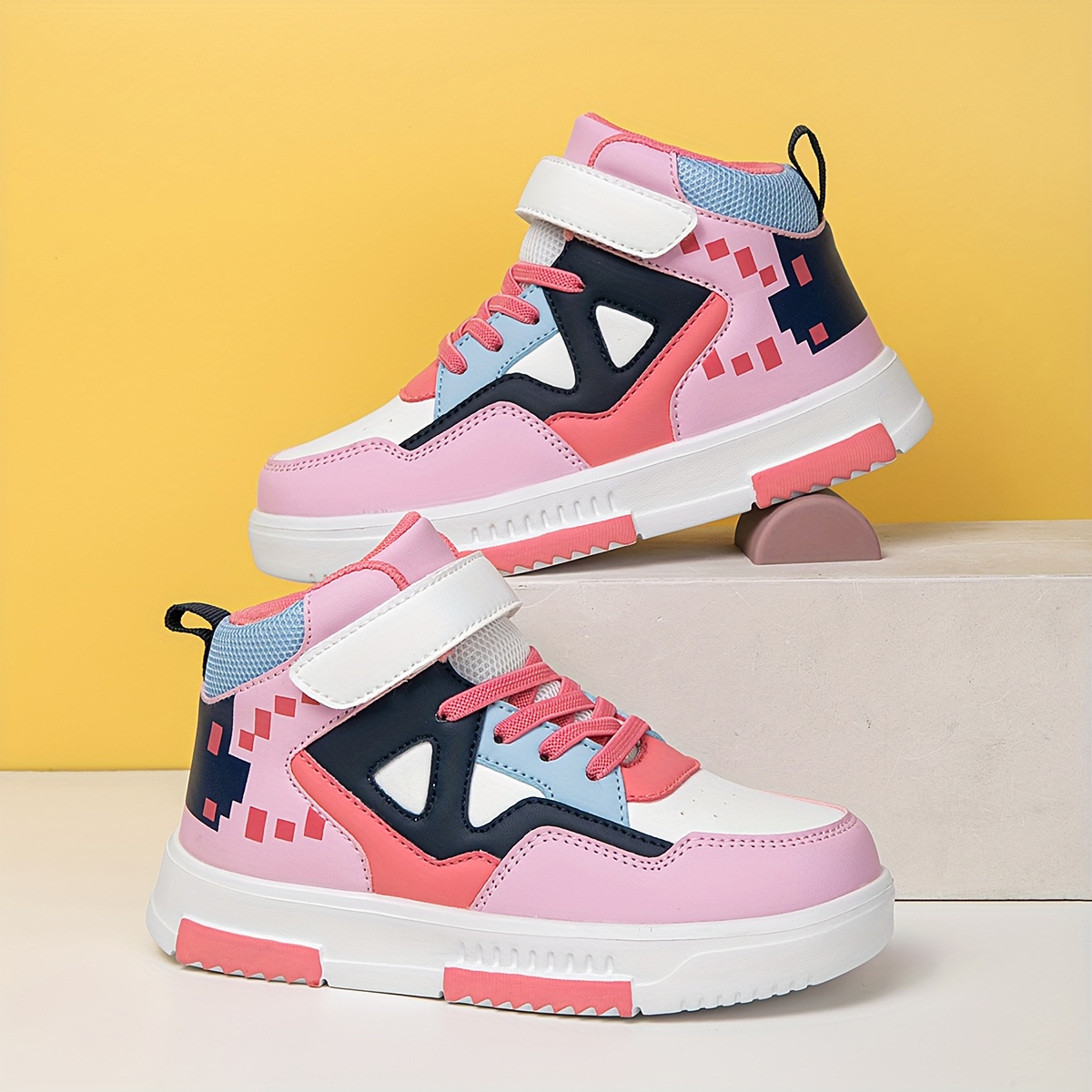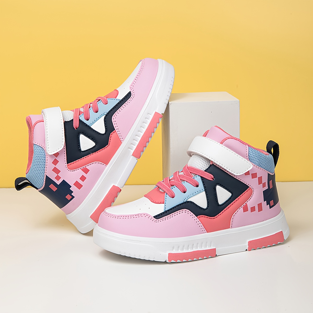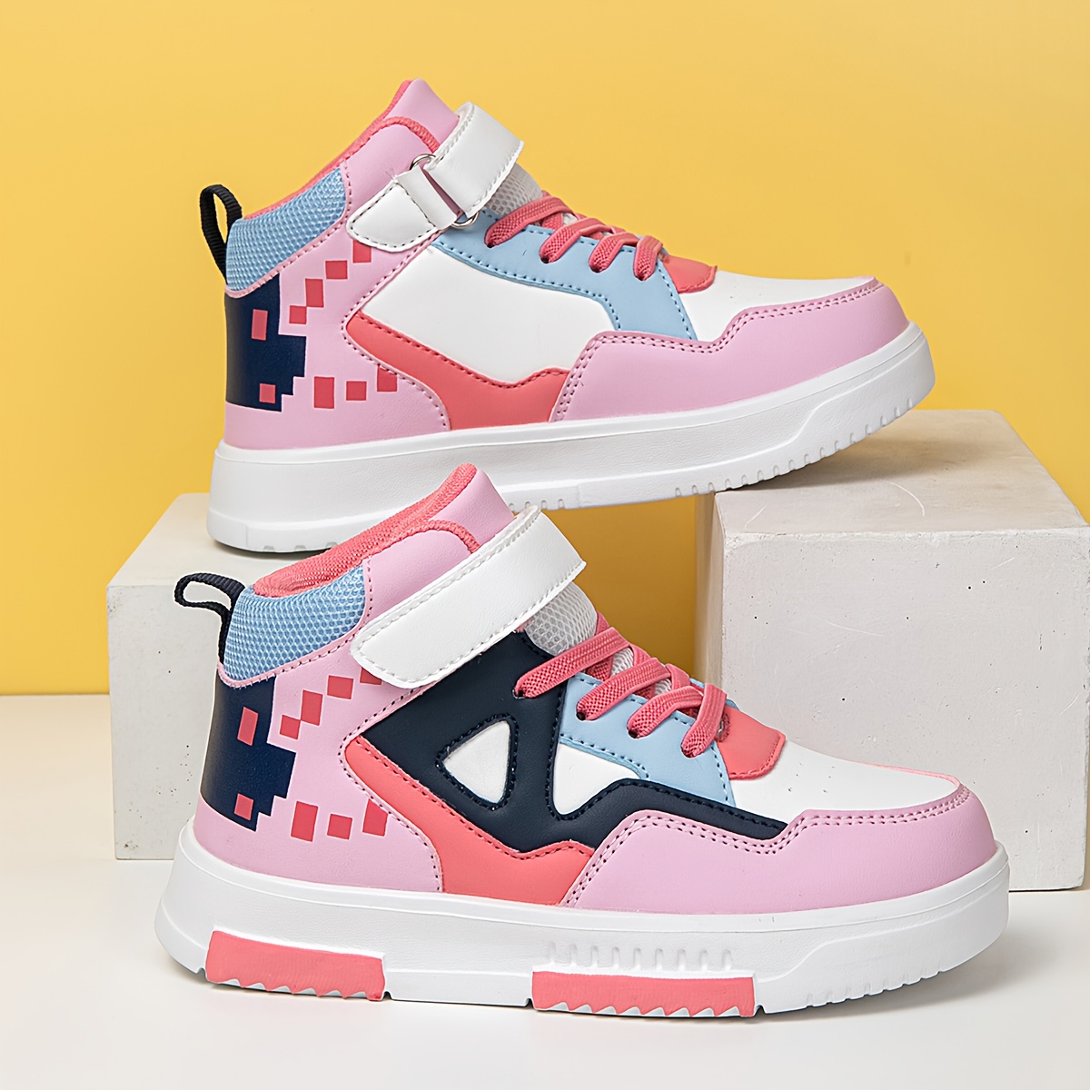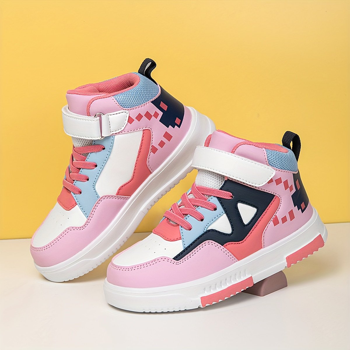 [Skate pour Filles] Chaussures de Skate pour Filles – Semelle Souple Antidérapante, Fermeture Facile à Velcro, Baskets Légères Toutes Saisons – Blanc/Rose, Semelle EVA Respirante & Tissu, Design Haut pour Jeux en Extérieur, Randonnée