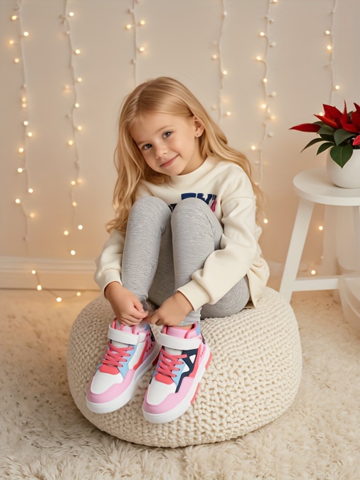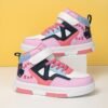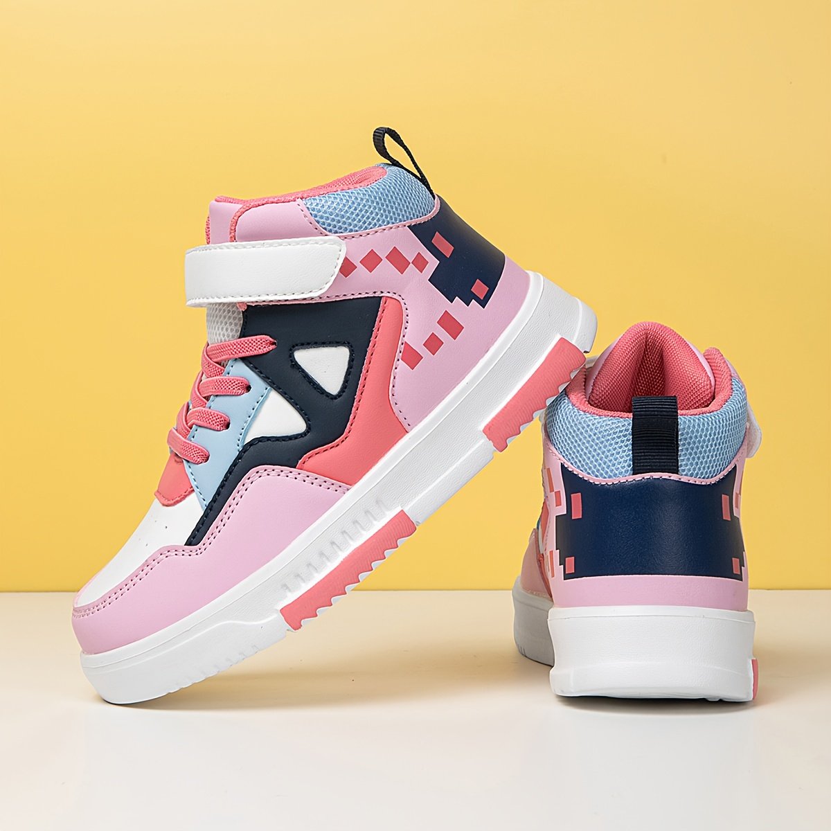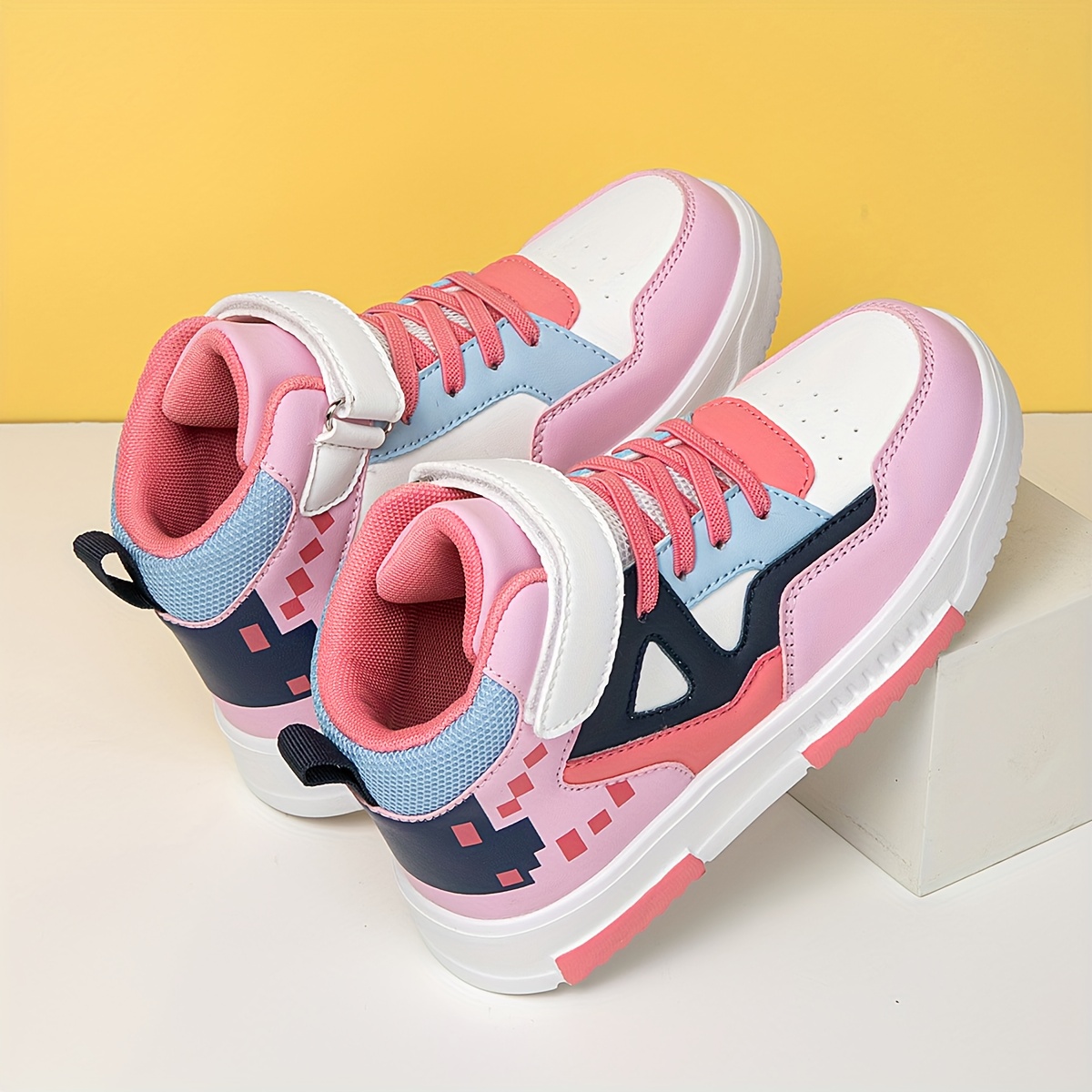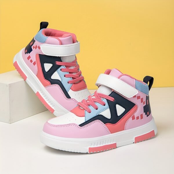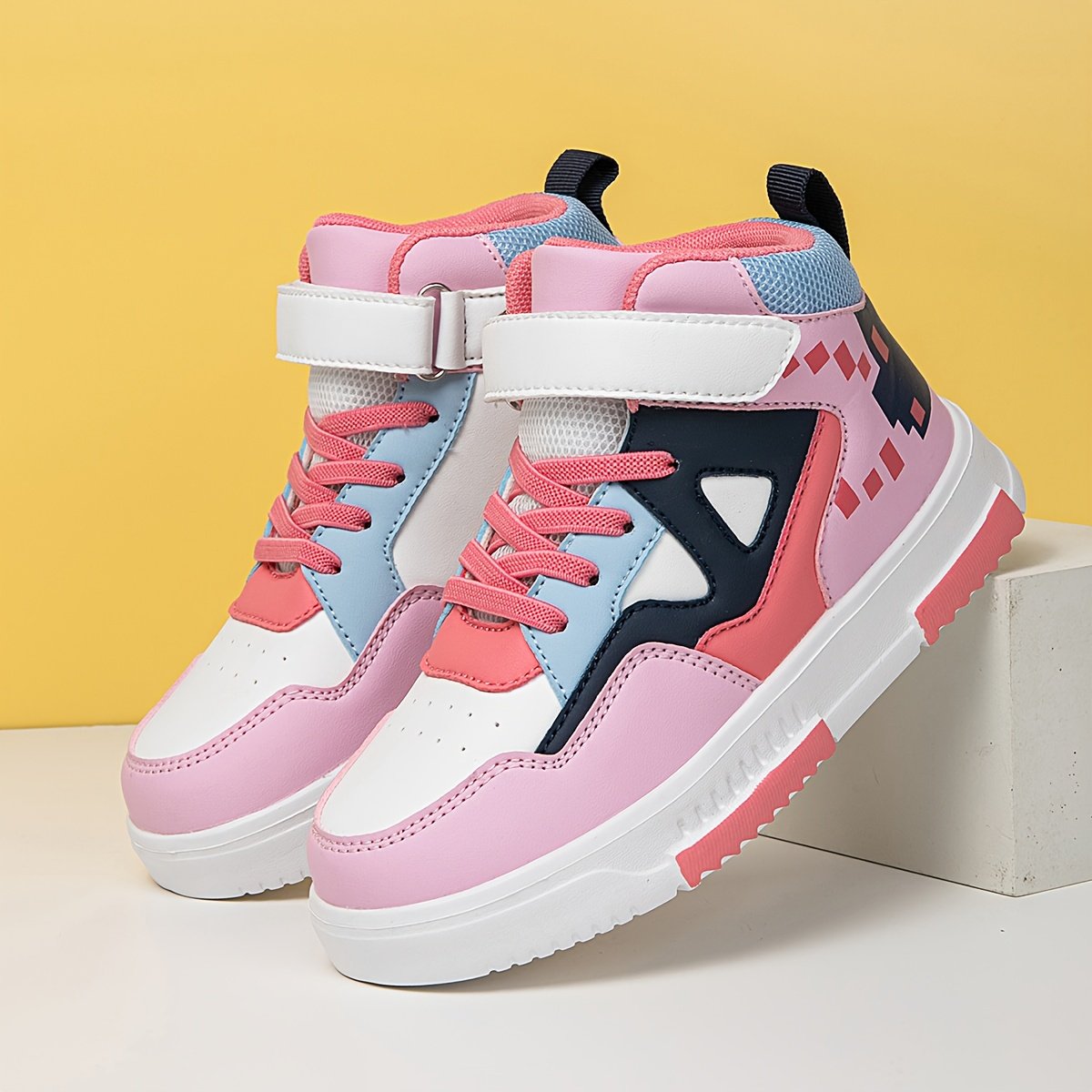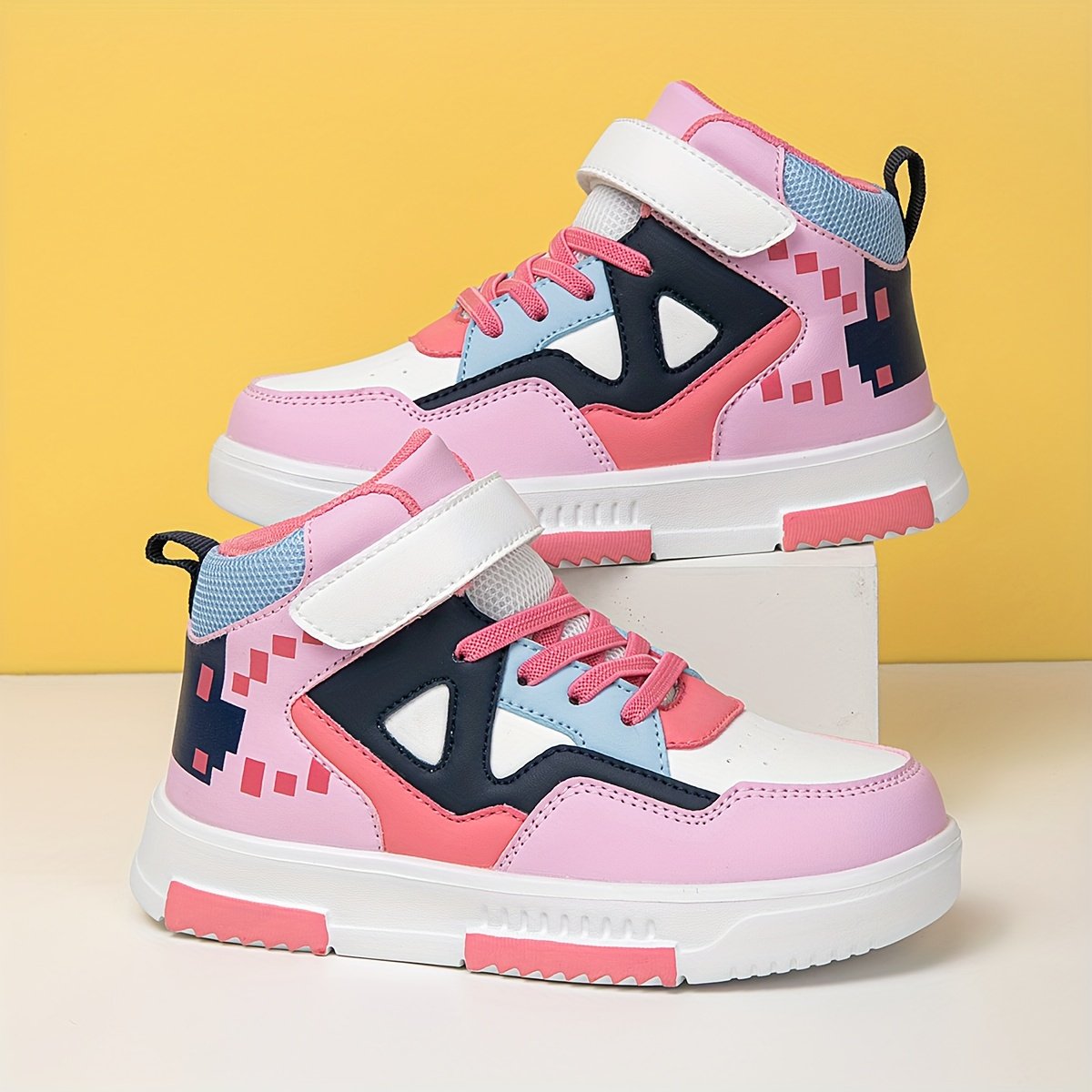 [Skate pour Filles] Chaussures de Skate pour Filles – Semelle Souple Antidérapante, Fermeture Facile à Velcro, Baskets Légères Toutes Saisons – Blanc/Rose, Semelle EVA Respirante & Tissu, Design Haut pour Jeux en Extérieur, Randonnée